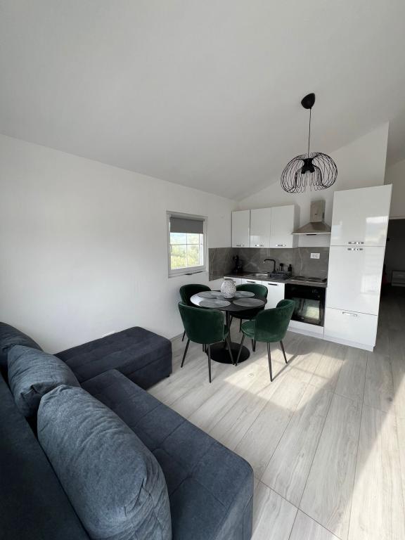 Dwa apartamenty do wynajęcia w małej, spokojnej miejscowości Turanj niedaleko Biogradu na Moru. Apartamenty są w 99 procentach identyczne, różnią się jedynie tym, czy apartament jest po lewej, czy po prawej stronie, oraz producentem pralki. Plaża oddalona jest o 5,6 minuty spacerem, a samo centrum o 7-10 minut. Apartamenty są nowoczesne, urządzone we współczesnym stylu i składają się z sypialni, łazienki, kuchni, salonu oraz tarasu z widokiem na morze, zadaszonego pergolą. Klimatyzacja, Wi-Fi, telewizor Smart TV, ekspres do kawy Dolce Gusto, wyposażona kuchnia, łazienka z pralką, prysznic na zewnątrz, grill, bezpłatny zadaszony parking. Basen naziemny i plac zabaw dla dzieci przed apartamentem do wykorzystania w cenie. Apartament jest przeznaczony dla 4 osób + 1. Wejście do apartamentu o godzinie 14:00, wyjście o 10:00. Trwają prace nad nową kategorią – do tej pory mieliśmy 2 gwiazdki, teraz będą 4. Palenie jest dozwolone na tarasie, ale nie w apartamencie.