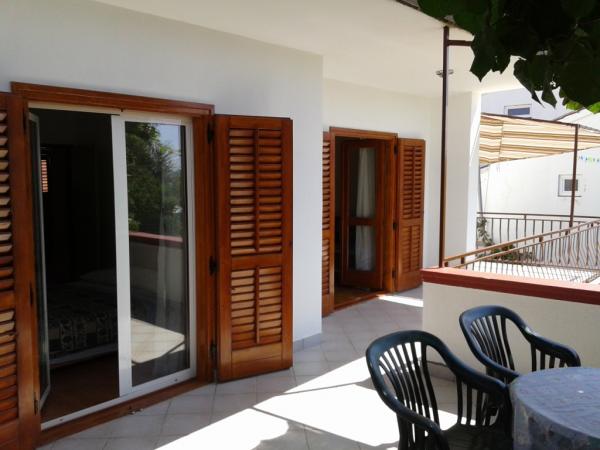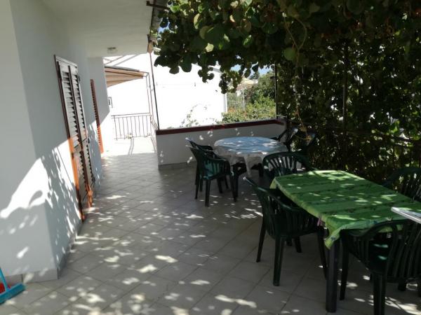 Apartamenty znajdują się w drugim rzędzie od morza na końcu ulicy, z dala od zgiełku i tłumów. Plaża jest kamienista i znajduje się 70 m od domu. W przedniej części plaży jest boje do cumowania łodzi. Na dziedzińcu przed budynkiem miejsca parkingowe. W ogrodzie znajduje się również grill, huśtawki i zjeżdżalnia dla djecu.Apartmani znajdują się na pierwszym piętrze, a przed nimi znajduje się duży taras, który jest pokryty naturalnym odcieniu (kiwi). Oba apartamenty składają się z: sypialni (2 1), wc, przedpokoju, kuchni, pokoju, w którym znajduje się rozkładana sofa dla 2 osób żyjących. Apartamenty wyposażone są w klimatyzację i telewizję satelitarną.