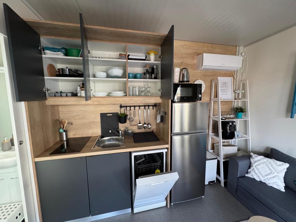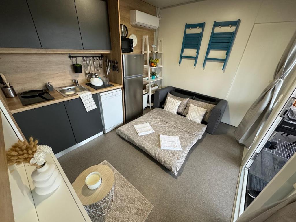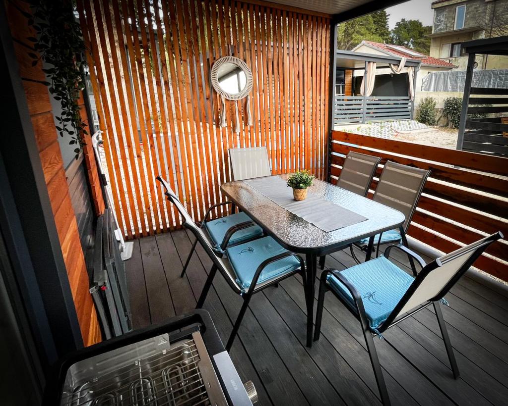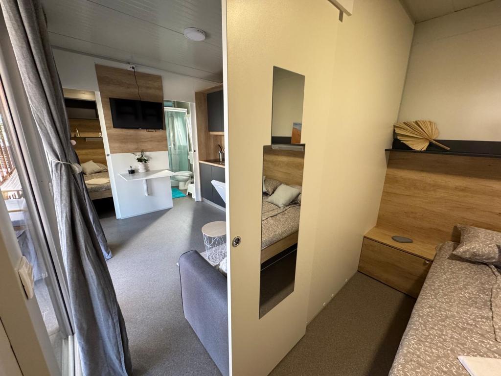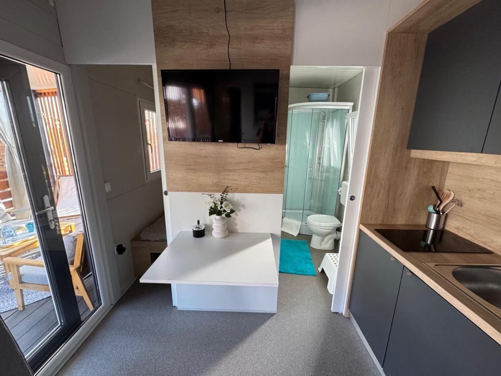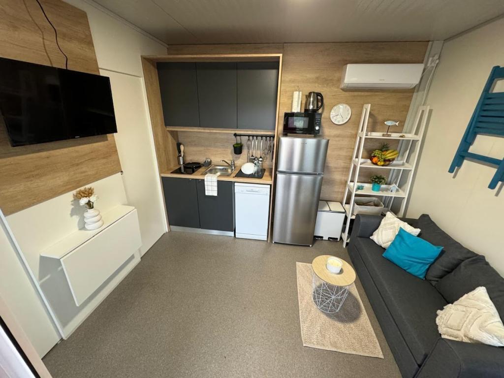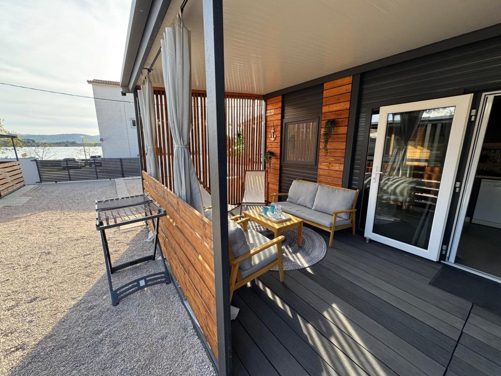 Nasze mobilne domy Marea zostały zaprojektowane tak, aby zapewnić Państwu beztroski, komfortowy i wypełniony chwilami relaksu urlop. Każdy dom jest starannie urządzony i w pełni wyposażony, aby zapewnić przyjemny pobyt rodzinom lub parom szukającym prywatności, spokoju i wszystkich udogodnień nowoczesnego domu nad morzem. Znajdują się one na małym, ogrodzonym kempingu rodzinnym, zaledwie 30 metrów od plaży, w spokojnej miejscowości Turanj, otoczonej zielenią i śródziemnomorską atmosferą. Wyposażenie i udogodnienia obu domów: Dwie sypialnie z podwójnymi łóżkami W pełni wyposażona kuchnia (indukcja, zmywarka, duża lodówka) Salon: rozkładana sofa, smart TV, Wi-Fi (Starlink), klimatyzacja Łazienka: prysznic, ręczniki, suszarka do włosów Przestronny taras z meblami i leżakami Bezpieczny parking (Marea 1 - Miejsce numer 3 | Marea 2 - Miejsce numer 5) Prezent powitalny Domy są klimatyzowane i dostępne przez cały rok, co czyni je idealnym wyborem na letnie wakacje, ale także na spokojny zimowy wypad nad morze.