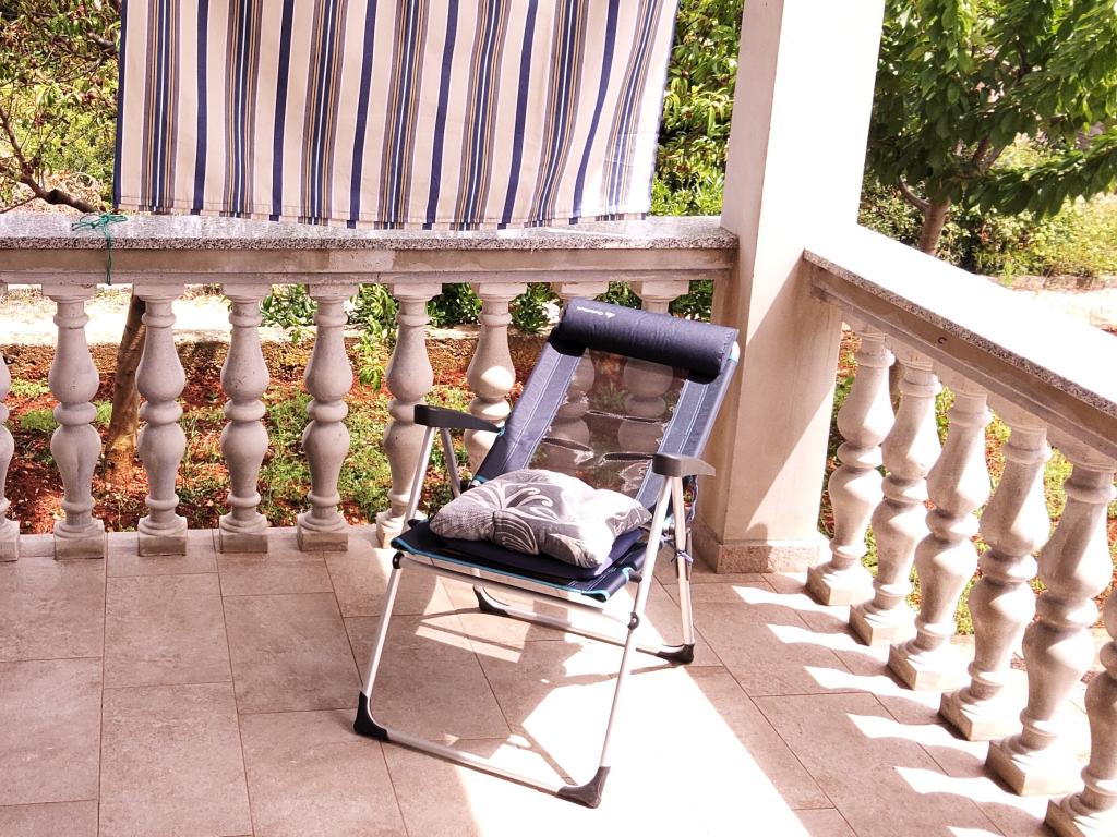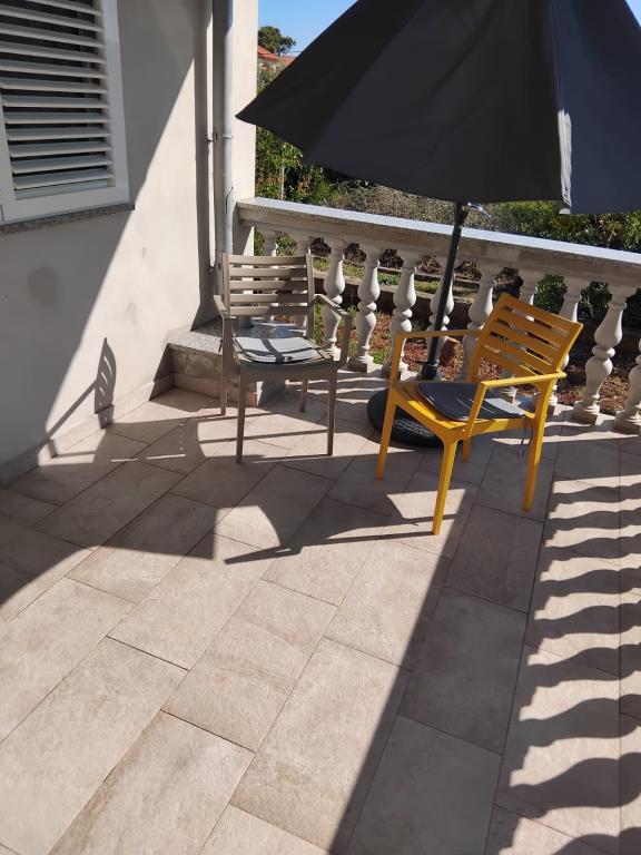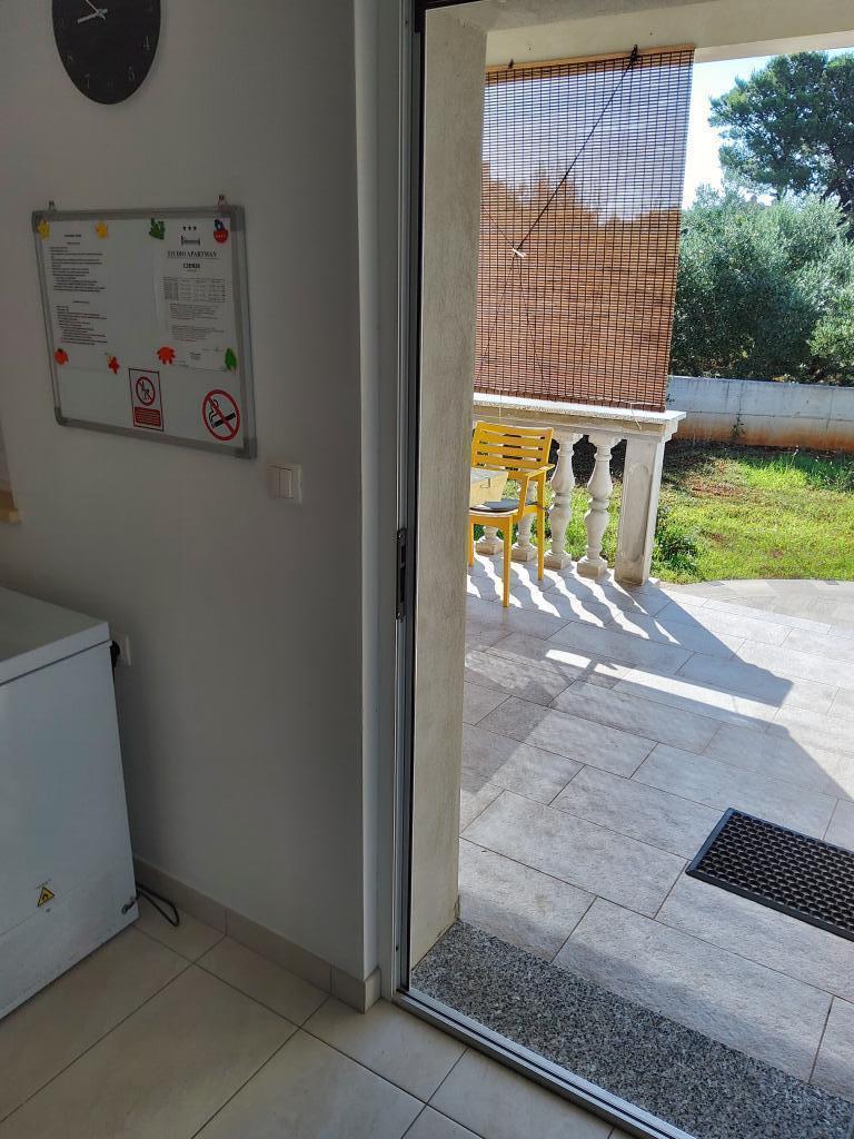 Idealny nocleg dla dwóch osób dorosłych. Apartament Laguna znajduje się na parterze domu rodzinnego z dużym ogrodem. Powierzchnia apartamentu wynosi 35 m², a taras 15 m². Apartament skierowany jest na północny wschód, dzięki czemu przez większość dnia jest zacieniony. Obiekt składa się z jednego apartamentu i jednego apartamentu dla gospodarza. Apartament znajduje się na parterze, ma dostęp do tarasu i ogrodu oraz widok na morze. Apartament jest nowy, zapewnia komfortowe i wygodne zakwaterowanie w upalne letnie dni. Wyposażony we wszystko, czego potrzeba do przyjemnego pobytu. Obiekt zapewnia również utwardzony parking. Na plaży znajduje się kawiarnia i boisko do siatkówki plażowej. Plaża znajduje się blisko apartamentu. Sklepy, targ i wiele innych atrakcji znajdują się w centrum. Do centrum można dojechać samochodem (2 minuty), ale jeszcze lepiej rowerem.