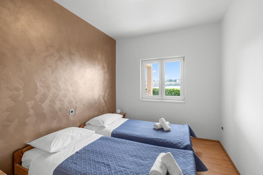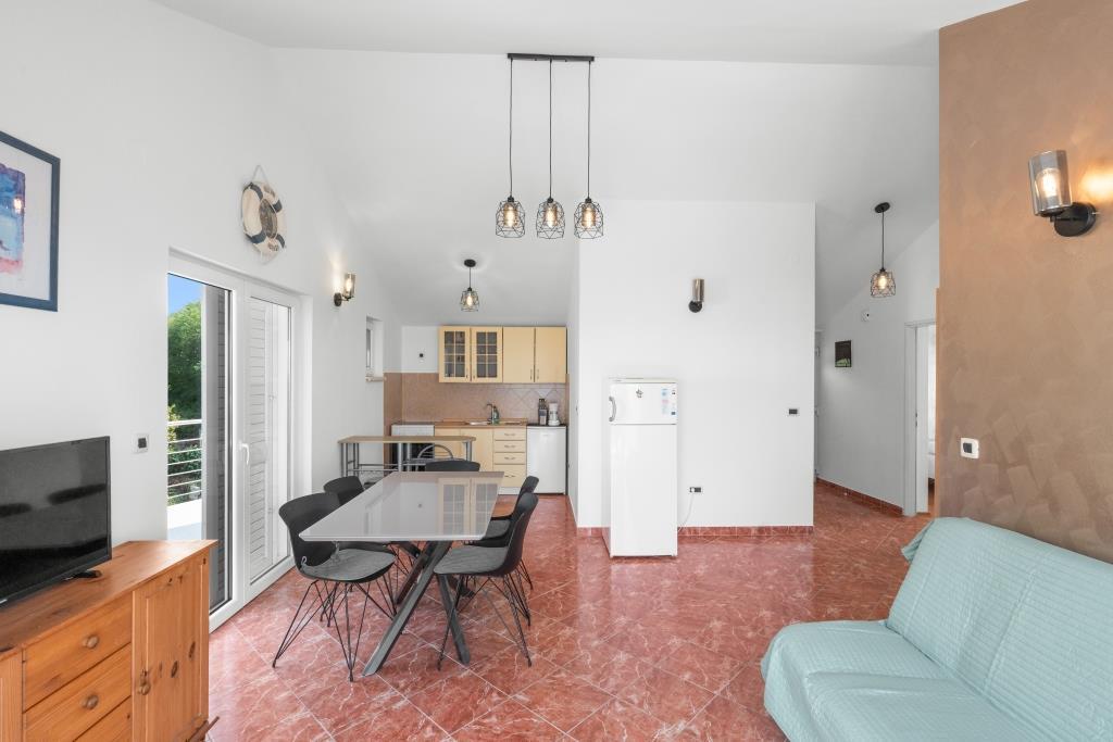 Apartamenty położone są tuż nad morzem, w spokojnej i przyjaznej wiejskiej okolicy. Każdy apartament posiada duży taras z widokiem na morze. Otacza je zagospodarowany śródziemnomorski ogród, idealny do zabaw dla dzieci. W ogrodzie dostępne są leżaki i wspólny grill. W każdym apartamencie znajdują się 2 łazienki. Niedaleko, 5 minut spacerem, znajduje się centrum, gdzie znajduje się targ z produktami z lokalnych gospodarstw, a także sklepy i restauracje. Pomoc medyczna w nagłych wypadkach jest dostępna 24 godziny na dobę, 7 dni w tygodniu. Plaża bezpośrednio przed apartamentem jest kamienista, a w niedużej odległości znajduje się kilka plaż, na których jest również plaża piaszczysta. Dojazd samochodem: autostrada prowadzi bezpośrednio do portu promowego Gaženica. Następnie wsiądziesz na prom do Preko. Latem kolejki są częste, kursują co najmniej co godzinę. Z portu promowego Preko należy skorzystać z głównej drogi wyspy, aby dotrzeć do oddalonego o 10 km miasta Ugljan. Przylot samolotem: Z lotniska w Zadarze autobusem lub taksówką w 15 minut. Docierasz bezpośrednio do portu promowego Gaženica, gdzie wsiadasz na prom do Preko.
