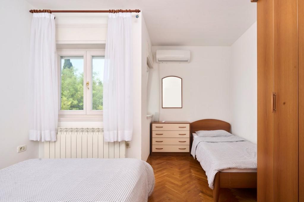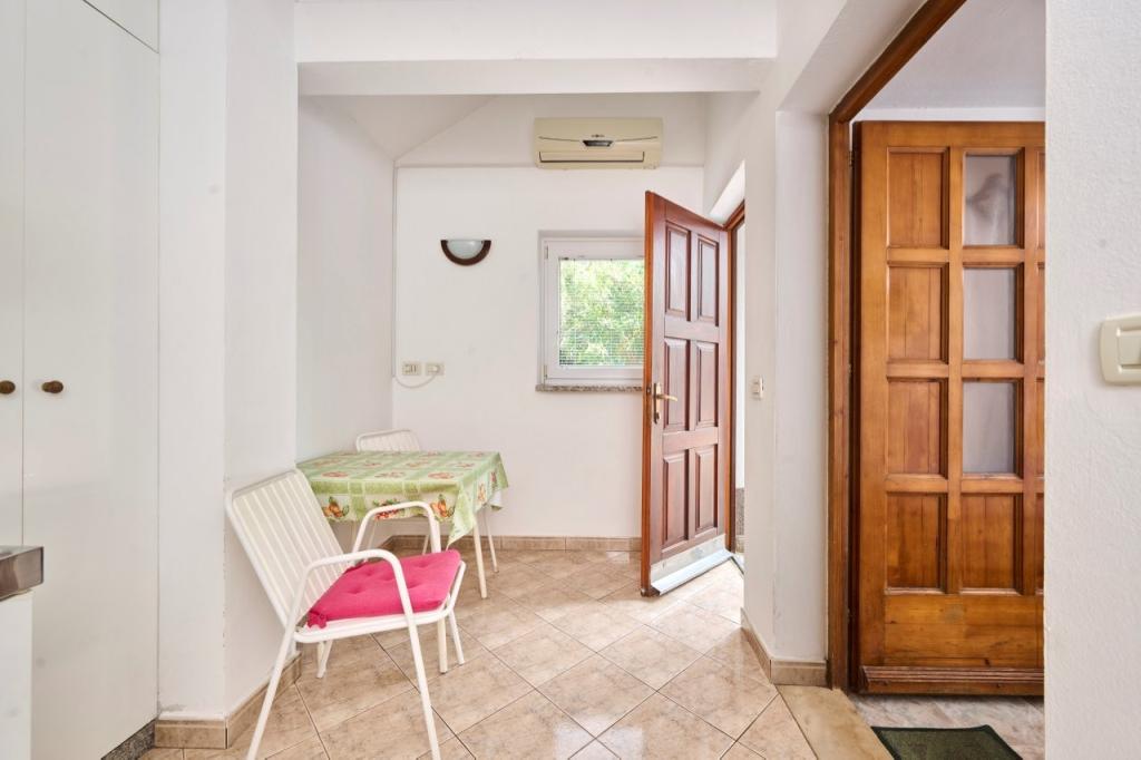 W ramach domu rodzinnego oferujemy 2 w pełni i nowocześnie wyposażone apartamenty dla zakwaterowania od 2 do maksymalnie 6 osób. Odległość obiektu od morza wynosi około 60 metrów. Plaża w pobliżu apartamentu jest kamienista. Odległość od centrum Umagu wynosi około 2 km, co stanowi doskonałą okazję na dzienny lub wieczorny spacer. Apartamenty posiadają w pełni wyposażoną kuchnię (kuchenka gazowa, piekarnik, lodówka z zamrażarką, naczynia) z salonem, łazienkę z prysznicem, sypialnię z łóżkiem małżeńskim oraz taras z balkonem, telewizję satelitarną, klimatyzację i bezprzewodowy Internet. Apartament dla 4+2 osób posiada dwie sypialnie z podwójnymi łóżkami i dwiema łazienkami, w pełni wyposażoną kuchnię (kuchenka gazowo-elektryczna, piekarnik, lodówka z zamrażarką, naczynia), łazienkę z prysznicem i pralką, pokój dzienny z dostawką dla 2 osoby oraz telewizję satelitarną i taras z widokiem na morze i meblami balkonowymi, bezprzewodowy internet.