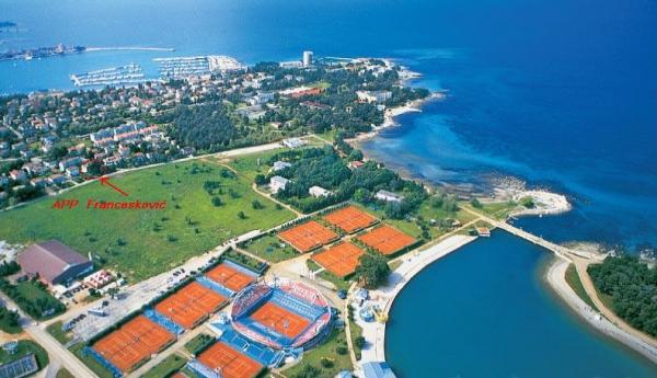Umag, ładnie urządzone apartamenty z 2-6 osób 200 m od plaży w Punta górnego położenia. Położony tylko 220 m tenis centrum Stella Maris ATP Croata otwarty, bezpłatny parking (jak dom blisko plaży, to jest strefa parkowania). Dwa prywatny park z lasem sosnowym i zielenią w wysokości około 1000 m2 z wykorzystaniem grilla. W pobliżu znajdują się doskonałe restauracje, centrum odnowy biologicznej, kasyno i wiele innych usług turystycznych.