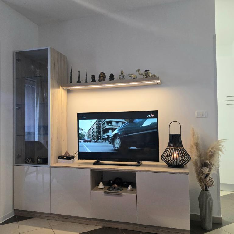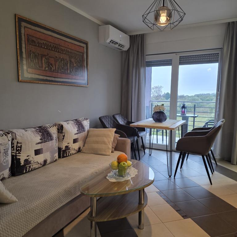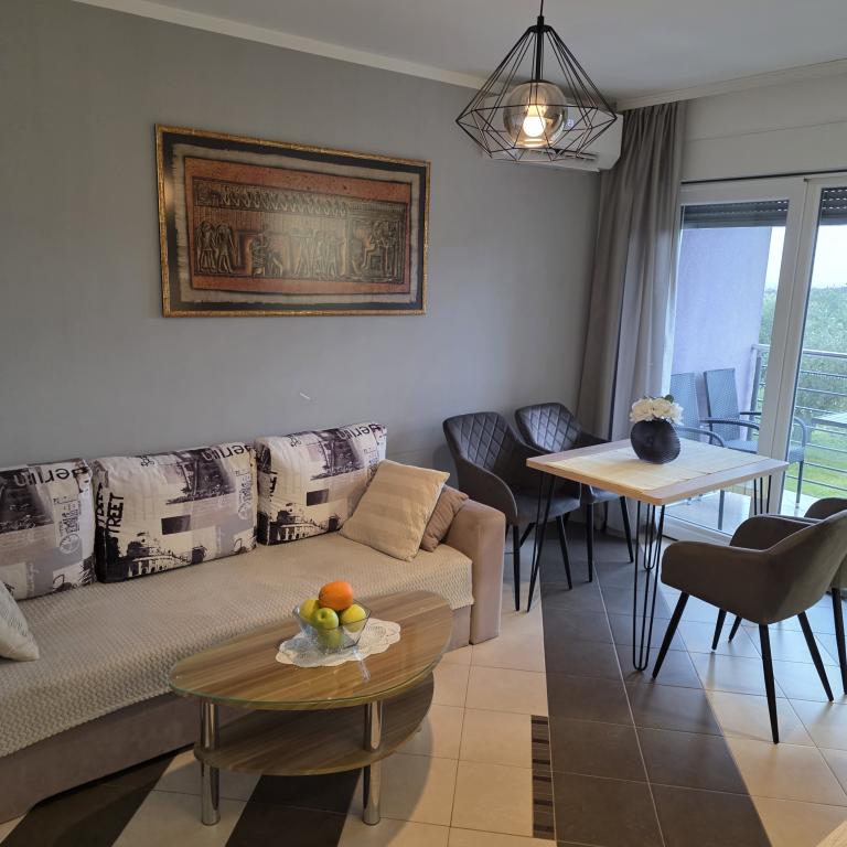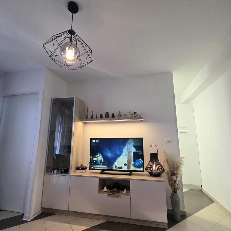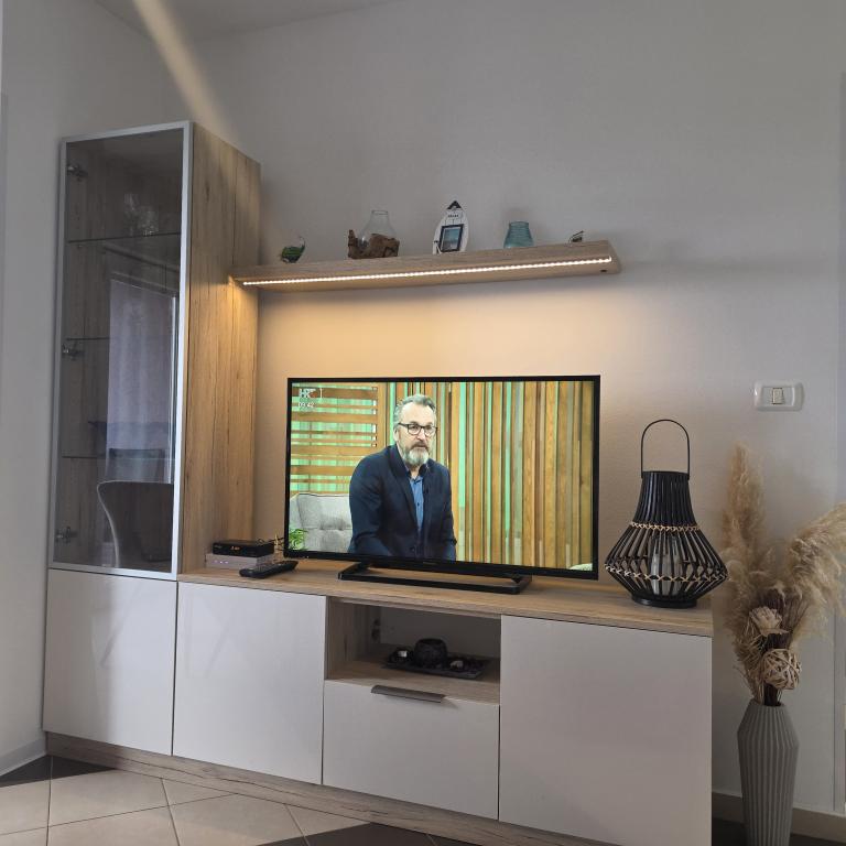 Apartamenty Mirella 4 znajdują się w nowo wybudowanej rezydencji Lavender z widokiem na morze i pięknym widokiem na zachód słońca. Do morza i pięknej piaszczystej plaży jest tylko 150m. Sklepy, piekarnia i restauracje w odległości 200m. Do centrum Umag 3 km. Wzdłuż morza znajduje się promenada aż do centrum Umag, a istnieje możliwość transportu pociągiem turystycznym. Apartamenty są klimatyzowane i w pełni wyposażone we wszystkie urządzenia. Łazienka z prysznicem z masażem, pralką, suszarką do włosów, żelazkiem. Kuchnia ze zmywarką, mikrofalówką, ekspresem do kawy, czajnikiem, dużą lodówką z zamrażarką i wszystkim innym, aby goście czuli się jak w domu. Dostępny jest bezpłatny dostęp do Internetu i parking strzeżony. Cena obejmuje korzystanie z basenu, leżaków, prysznica, dwumiejscowego, stołu i krzeseł w zadaszonej części tarasu przy basenie. Dziękujemy za wybór apartamentów Mirella, mam nadzieję, że w zamian spełnimy Państwa życzenia podczas pobytu w naszych apartamentach. Naszym celem jest Twoja satysfakcja i rekomendacja. Drodzy goście, witamy w Apartments Mirella!