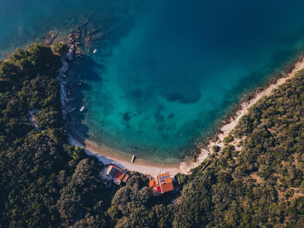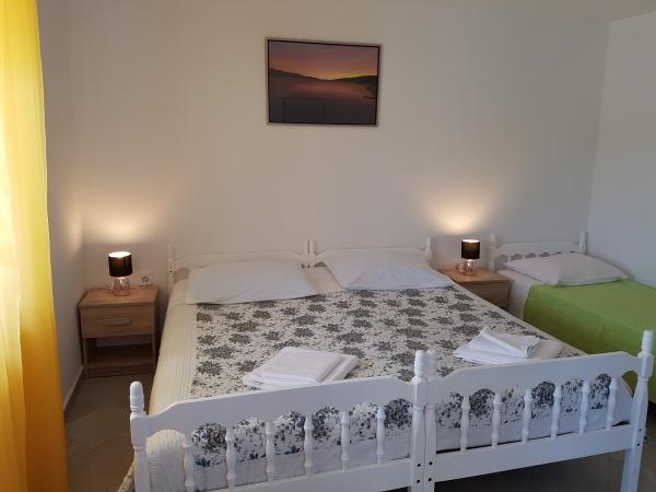 Apartamenty Banestra położone są nad morzem, 2 km od Ustriny. Apartamenty są odpowiednie dla każdego, kto kocha ciszę, spokój i obcowanie z naturą. Idealny do spędzenia relaksującego wypoczynku z dala od zgiełku miasta. Dom składa się z 2 apartamentów, jeden dla 5 osób, a drugi dla 6 osób. Na parterze znajduje się apartament dla 5 osób składający się z 2 pokoi z podwójnym łóżkiem, w tym jeden z łóżkiem dla jednej osoby, toalety, kuchni oraz tarasu z grillem. Apartament dla 6 osób znajduje się na pierwszym piętrze i składa się z 3 pokoi z podwójnym łóżkiem, kuchni, toalety oraz tarasu z grillem na parterze. Apartamenty nie mają żadnych nowoczesnych technologii (telewizja, satelita, klimatyzacja, internet, telefon). Mieszkania w pełni funkcjonują na energię słoneczną (220V), tzn. prąd i ciepła woda pozyskiwane są z kolektorów słonecznych na dachu. Do domu można dotrzeć tylko łodzią lub pieszo ścieżką 10 minut od parkingu. Towary są transportowane z parkingu do domu jednorazowo po przyjeździe i wypłynięciu łodzią. Apartamenty można rezerwować na 7 dni od soboty do soboty.