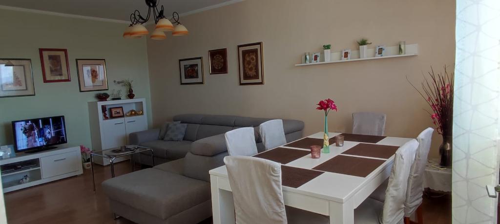 Zapraszamy do apartamentu „Florem”, który znajduje się niedaleko centrum ValMod, przy ulicy R. Boškovića 20, w budynku z windą. Nasz klimatyzowany apartament o powierzchni 60 m2 składa się z niedawno wyremontowanej kuchni wyposażonej we wszystkie niezbędne sprzęty i naczynia, spiżarni, przestronnego salonu, łazienki z wanną i pralką oraz sypialni z łóżkiem małżeńskim i łóżkiem piętrowym łóżko. Narożną sofę w salonie można również rozłożyć w łóżko. Przed budynkiem znajduje się bezpłatny parking oraz otoczony zielenią plac zabaw dla dzieci. W bezpośrednim sąsiedztwie kilka sklepów, bank, stacja benzynowa, kawiarnia, kościół... Można dojść pieszo do centrum miasta lub na deptak nad Dravą, gdzie w miesiącach letnich można korzystać z basenów. Po wyjściu zrelaksuj się z telewizorem, bezpłatnym WiFi i książkami, zabawkami i grami planszowymi lub z widokiem na zachód słońca. Z balkonu roztacza się widok na dachy starego centrum miasta, ale także zieleń Lasu Drawskiego, Ivanščicy i Rawnej Góry. Życzymy miłego pobytu.