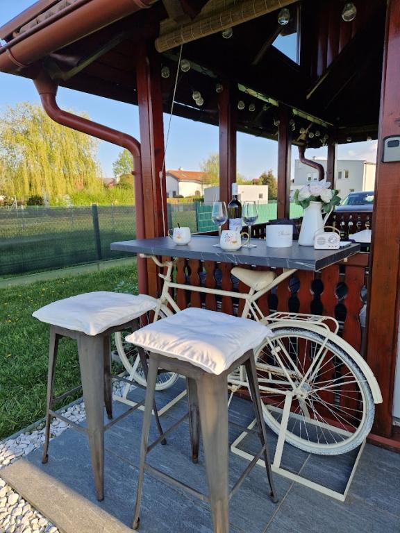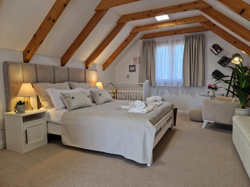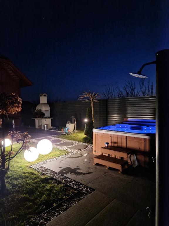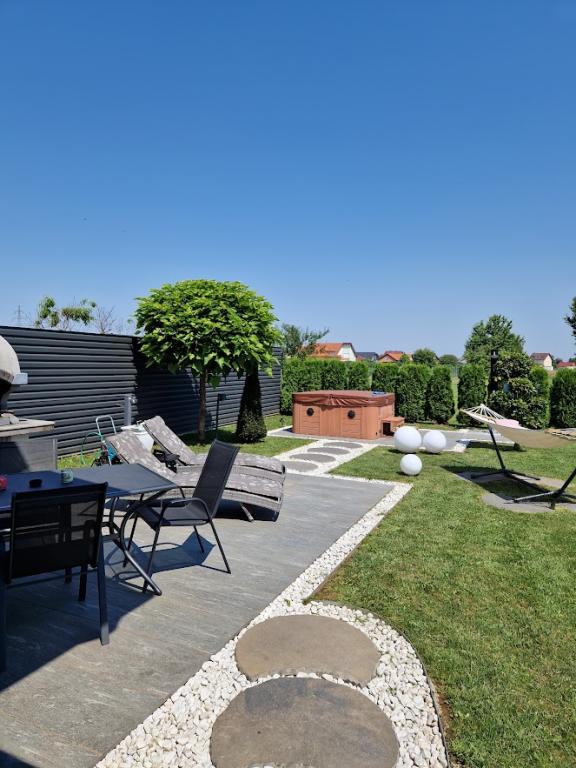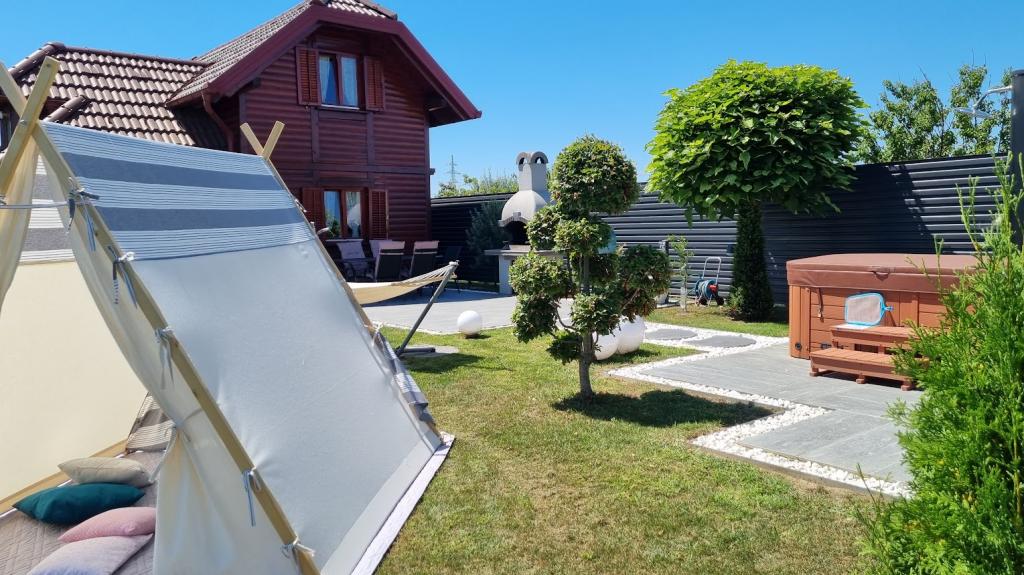 Drewniany dom wakacyjny o powierzchni około 60 m2 położony jest 4 km od centrum miasta Varaždin. Obiekt położony jest na końcu spokojnej ulicy, w otoczeniu zieleni. Dom składa się z przestronnego i pięknie urządzonego salonu, kuchni, łazienki i tarasu na parterze oraz sypialni i tarasu na pierwszym piętrze. Goście mają również dostęp do ogrodu z tarasem zewnętrznym, miejsca do grillowania, spotkań towarzyskich, jacuzzi i rozrywki na świeżym powietrzu. Bezpłatne Wi-Fi, bezpłatny parking na podwórku, grill. Wejście do obiektu odbywa się w sposób spersonalizowany (dyskretny) za pomocą sejfu z kluczami i jest możliwe o każdej porze w ciągu 24 godzin. Goście otrzymują kod do sejfu, gdy dom jest gotowy na przyjęcie gości, rano w dniu ich przyjazdu.