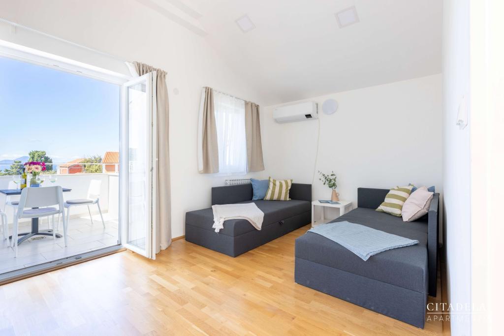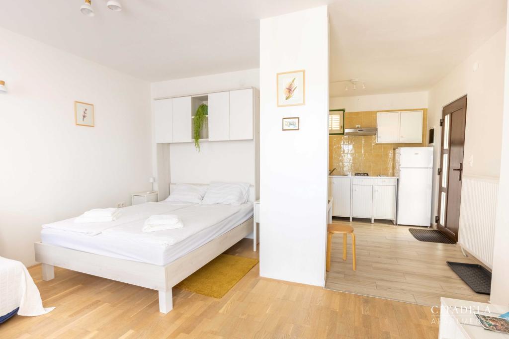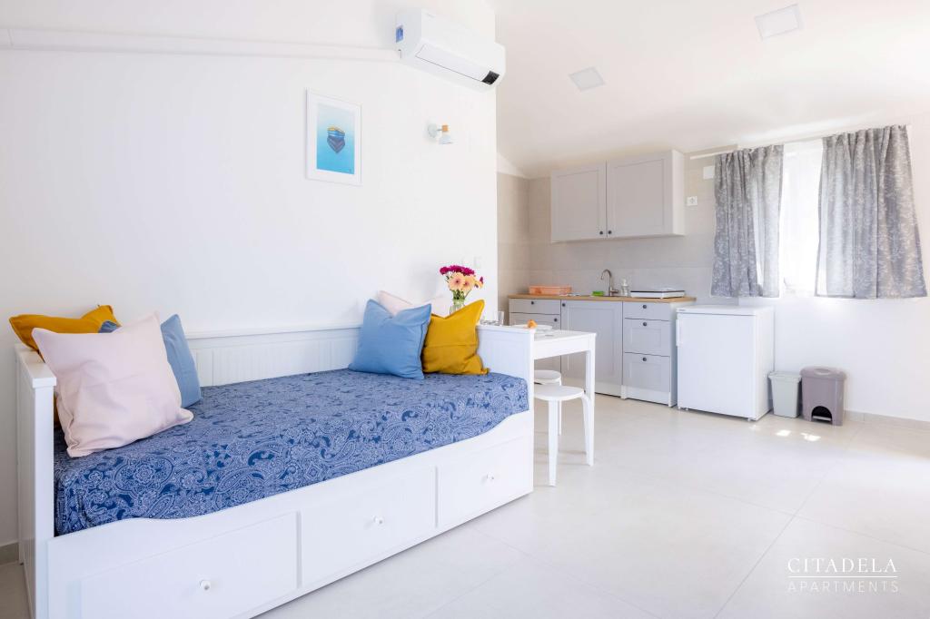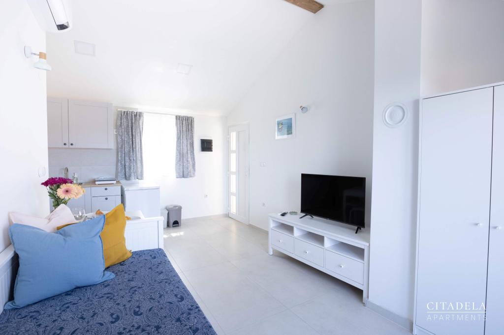 Apartamenty CITADELA VELI LOŠINJ to nowy obiekt. Otwarcie nastąpiło 1 czerwca 2024 roku. !!!!!! Od sezonu 2025 oferta została rozszerzona o usługę ŚNIADAŃ. !!!!!!!! Znajduje się w bezpośrednim sąsiedztwie kościoła Św. Kościół św. Anny w Velim Lošinju, uważany za najstarszy kościół na wyspie Lošinj. Wokół kościoła w XIII wieku osiedliło się pierwszych 12 chorwackich rodzin, które zamieszkiwały wyspę Lošinj. Jeden z takich domów znajduje się na terenie CYTADELI VELI LOŠINJ. Ze względu na piękno krajobrazu, bujną roślinność i wyjątkowo sprzyjające warunki klimatyczne, w 1892 roku austro-węgierskie Ministerstwo Zdrowia ogłosiło Veli Lošinj uzdrowiskiem klimatycznym. Oprócz dobrodziejstw klimatu, na wyspie Lošinj można uprawiać wiele sportów i uprawiać sporty wodne. W pobliżu znajdują się fantastyczne naturalne plaże, do których można dojść pieszo w dziesięć minut. (Javorna, Kriška, Rovenska) Restauracje w Zatoce Rovenskiej, Muzeum Apoksiomenosa w Mali Lošinj. Park wodny Ćikat. Tematyczny punkt widzenia Providence......