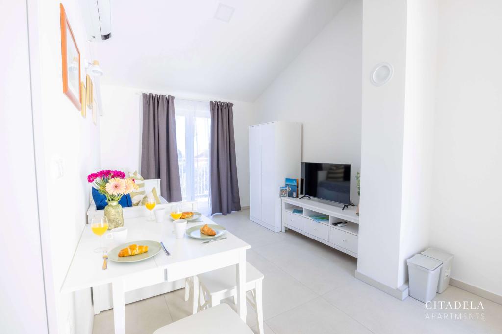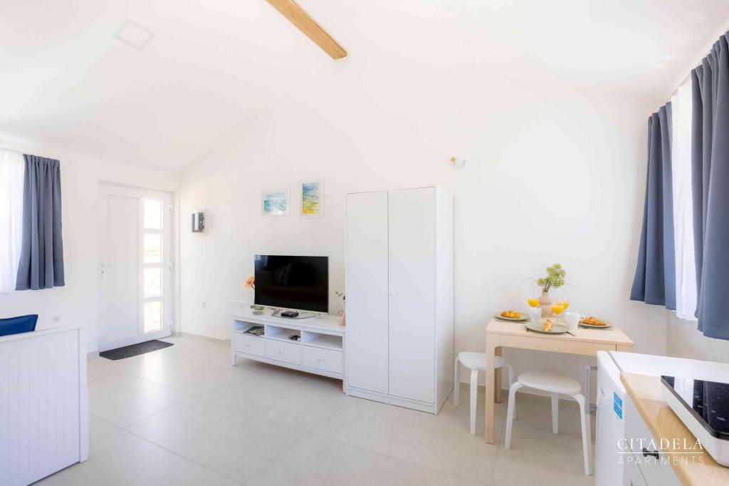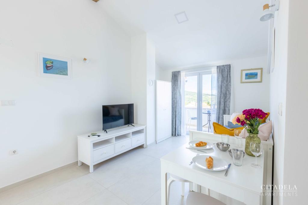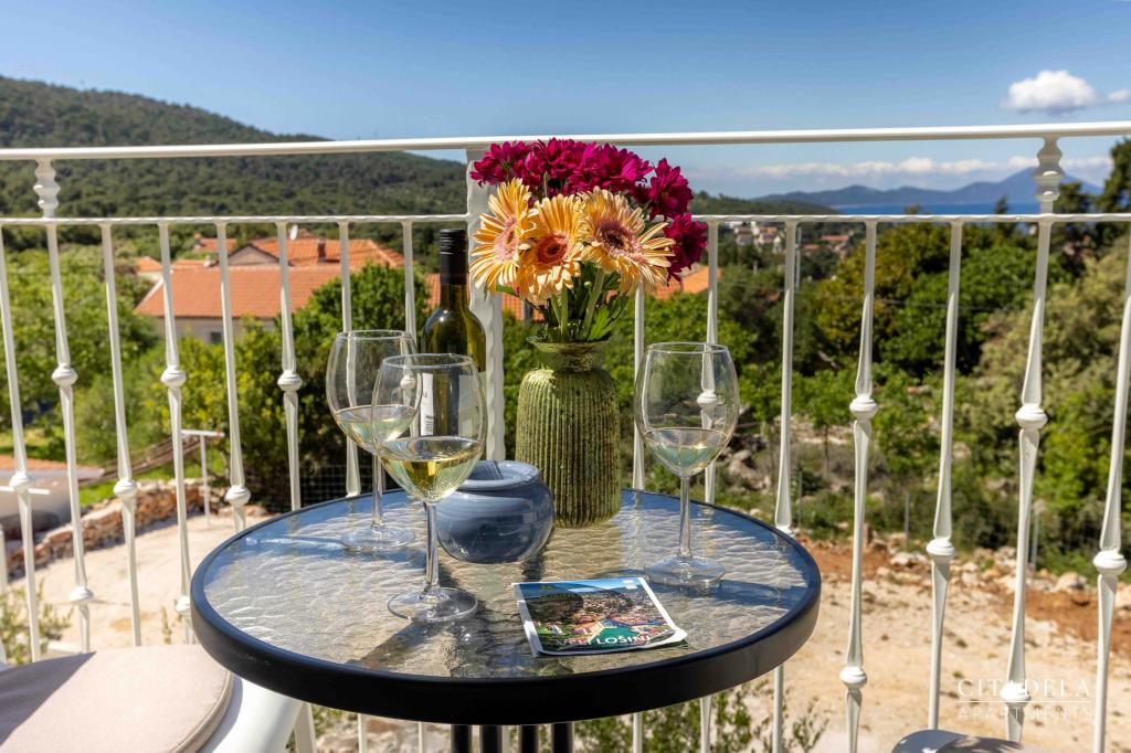Citadela Veli Lošinj składa się z dwóch apartamentów typu studio (2+0) i sześciu apartamentów (2+1). Każdy apartament posiada własne wejście, własny taras, bezpłatny parking na terenie obiektu, Wi-Fi, telewizję satelitarną i wyposażony aneks kuchenny. Po przyjeździe obowiązkowe jest ciepłe powitanie i lekki poczęstunek. Jako gospodarze oprowadzimy Państwa po wszystkich obiektach i atrakcjach na wyspie Lošinj i zadbamy o to, aby Państwa wakacje na wyspie Lošinj były wysokiej jakości i beztroskie. !!!!!!!!!!!!!!!!!!!!! OD SEZONU 2025 ROZSZERZYLIŚMY OFERTĘ O USŁUGĘ PRZYGOTOWYWANIA ŚNIADAŃ !!!!!!!!!!!!!!!!!!!!!!!!!!!!!!!!!!!!!!!!!!!!!!!!! Śniadania serwowane są a'la carte. Każdy gość wybiera śniadanie na następny dzień. Śniadanie jest płatne na miejscu. Gość wybiera rodzaj i cenę śniadania.