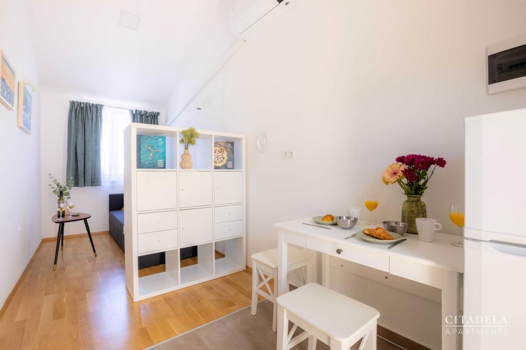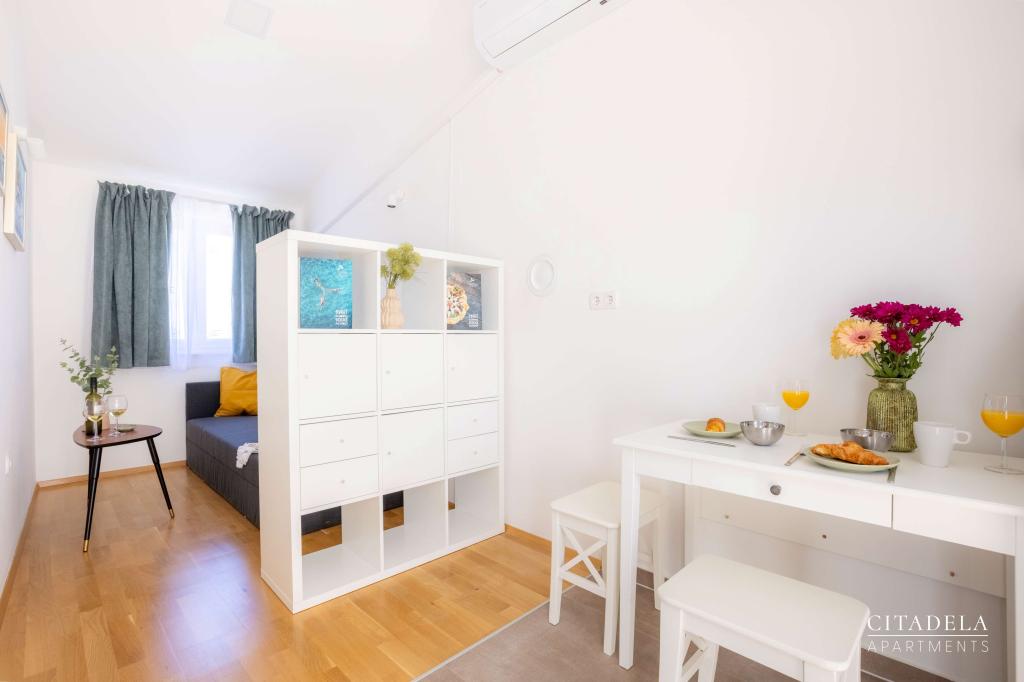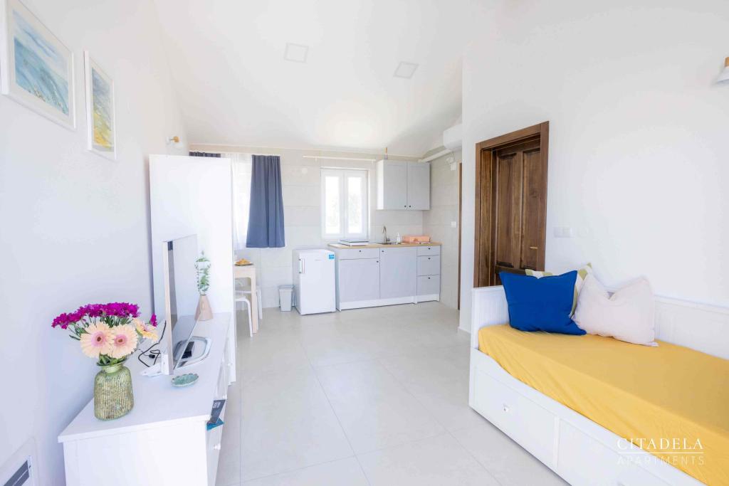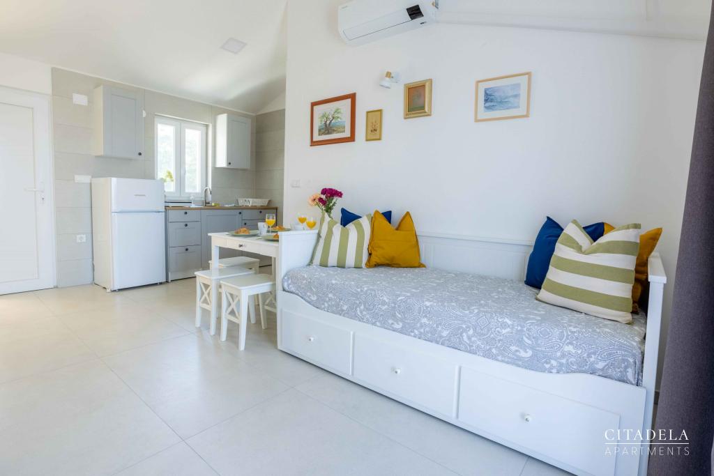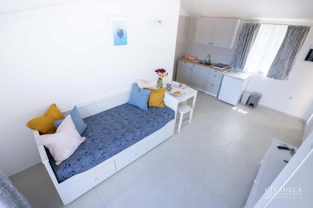 Citadela Veli Lošinj składa się z dwóch apartamentów typu studio (2+0) i sześciu apartamentów (2+1). Każdy apartament posiada własne wejście, własny taras, bezpłatny parking na terenie obiektu, Wi-Fi, telewizję satelitarną i wyposażony aneks kuchenny. Po przyjeździe obowiązkowe jest ciepłe powitanie i lekki poczęstunek. Jako gospodarze oprowadzimy Państwa po wszystkich obiektach i atrakcjach na wyspie Lošinj i zadbamy o to, aby Państwa wakacje na wyspie Lošinj były wysokiej jakości i beztroskie. !!!!!!!!!!!!!!!!!!!!! OD SEZONU 2025 ROZSZERZYLIŚMY OFERTĘ O USŁUGĘ PRZYGOTOWYWANIA ŚNIADAŃ !!!!!!!!!!!!!!!!!!!!!!!!!!!!!!!!!!!!!!!!!!!!!!!!! Śniadania serwowane są a'la carte. Każdy gość wybiera śniadanie na następny dzień. Śniadanie jest płatne na miejscu. Gość wybiera rodzaj i cenę śniadania.