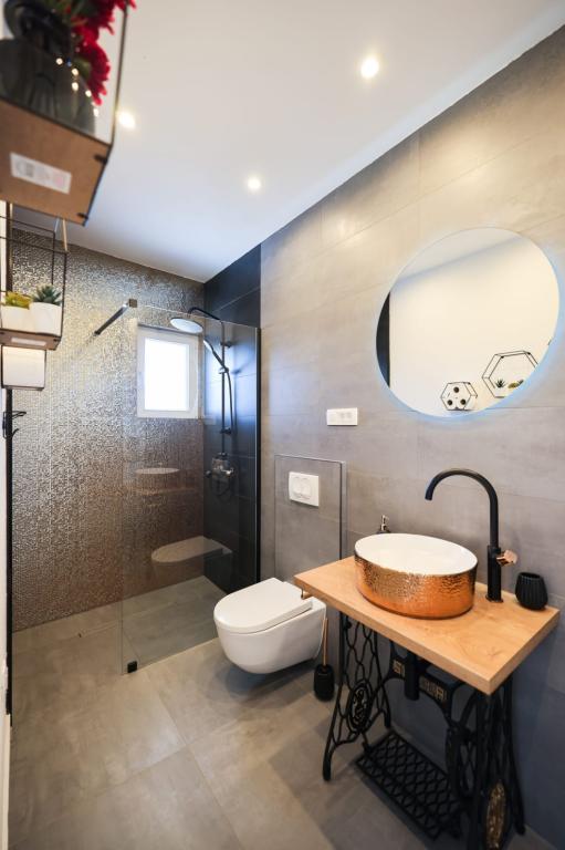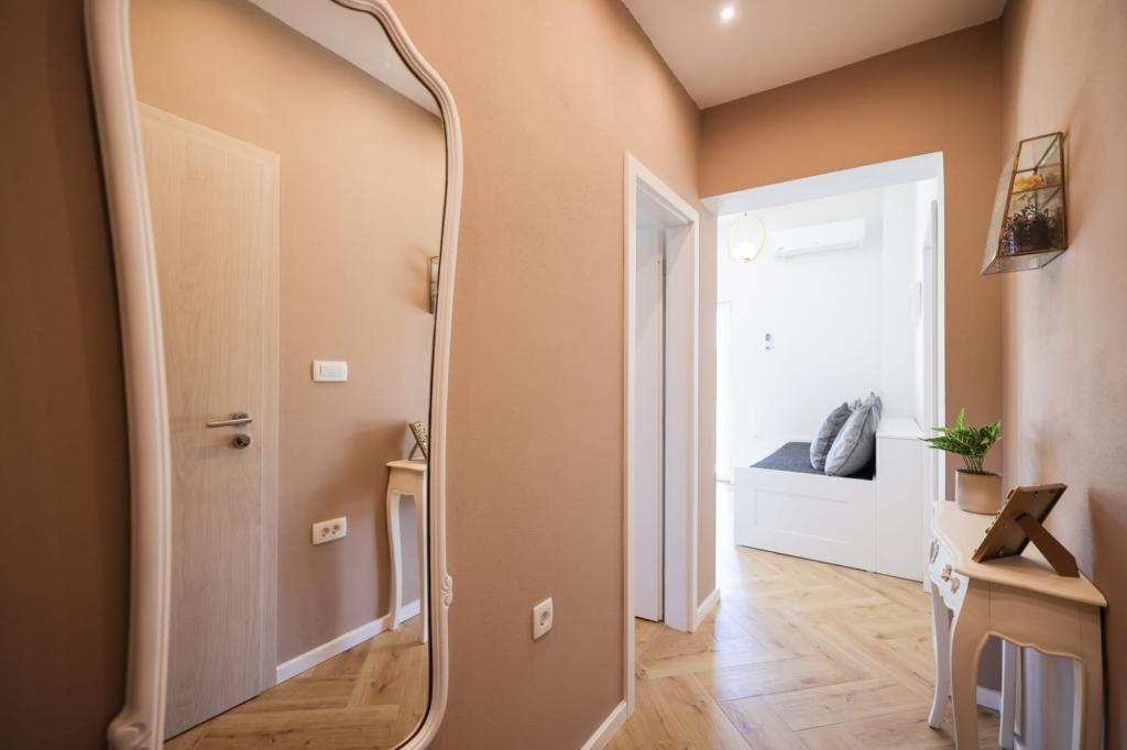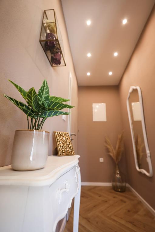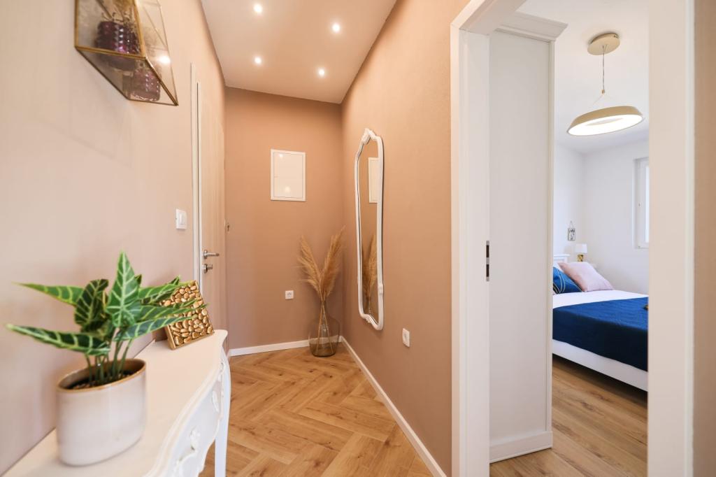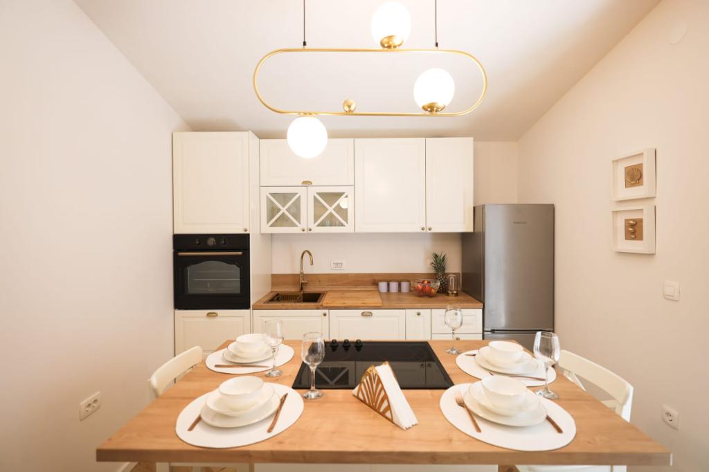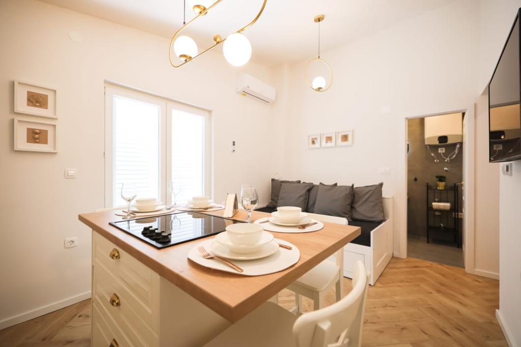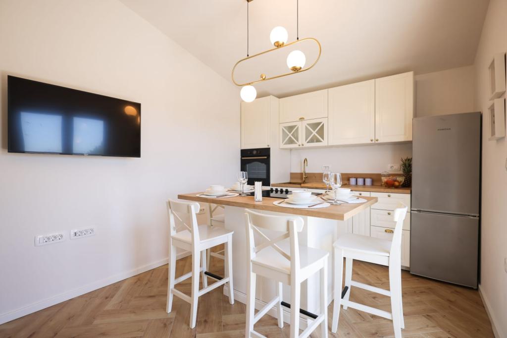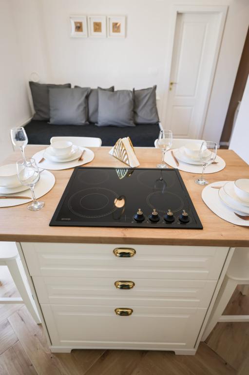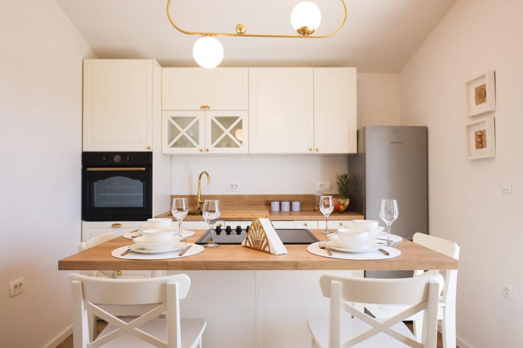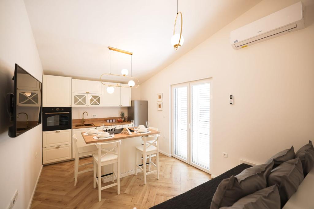Ten klimatyzowany apartament z prywatnym wejściem obejmuje 1 salon, 1 oddzielną sypialnię i 1 łazienkę z kabiną prysznicową i suszarką do włosów. W dobrze wyposażonej kuchni Goście znajdą płytę kuchenną, lodówkę, zmywarkę i przybory kuchenne. W apartamencie znajduje się również grill. Ten apartament dysponuje balkonem z widokiem na ogród i wyposażony jest w pralkę oraz telewizor z płaskim ekranem. W jednostce znajdują się 2 łóżka.