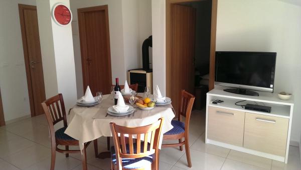 Spędziliśmy w apartamencie 11 nocy, apartament ma świetną lokalizację, nowy, zadbany, kuchnia z podstawowymi potrzebami. Byliśmy bardzo szczęśliwi, że nasz pies był również mile widziany, zarówno w mieszkaniu, jak iw samym miejscu i na wyspie. Bez przeszkód, wszędzie dobrze przyjęty.