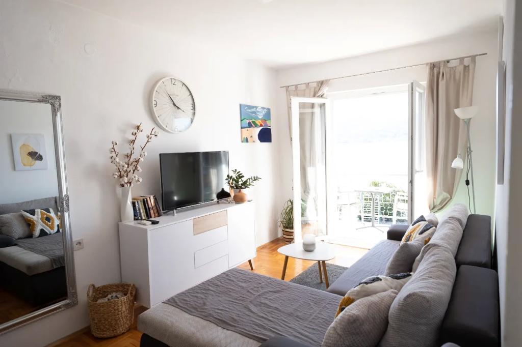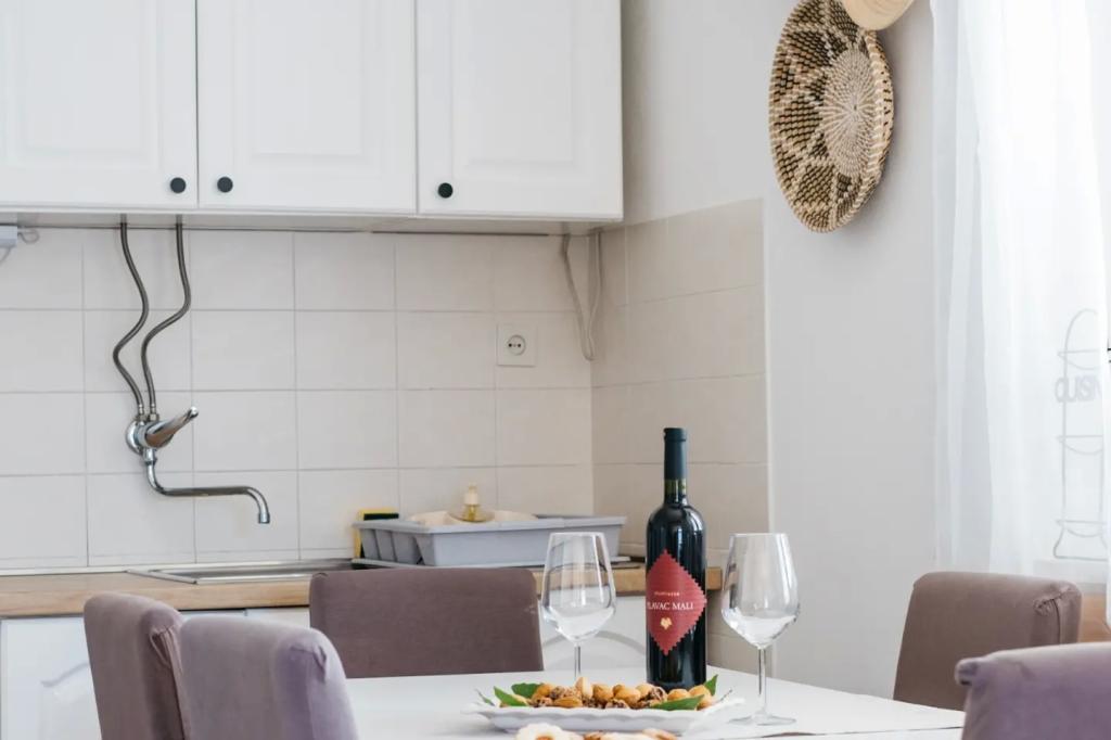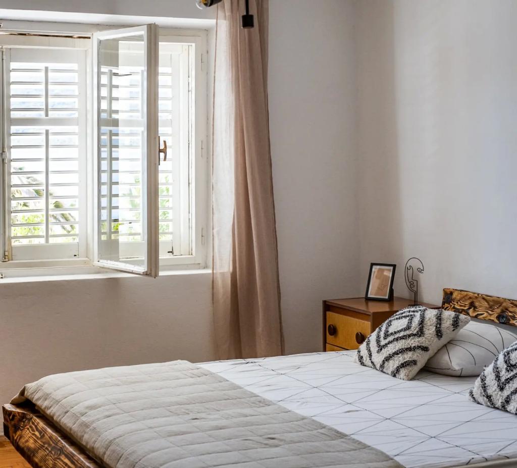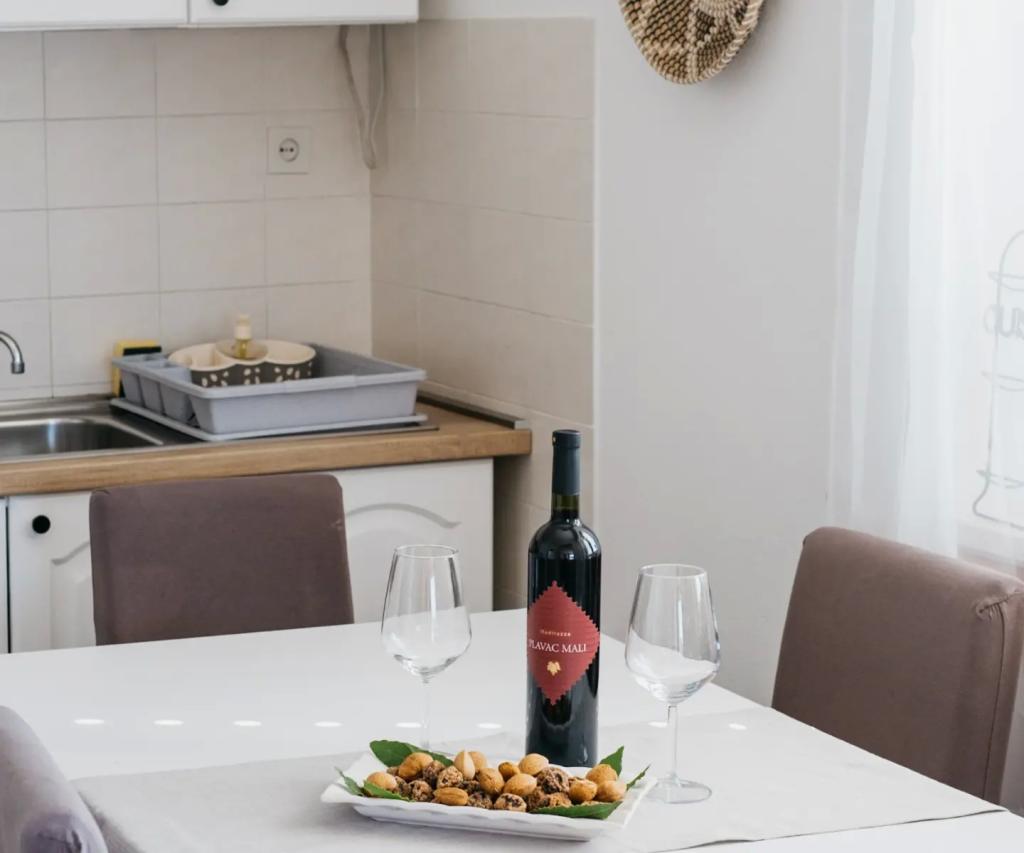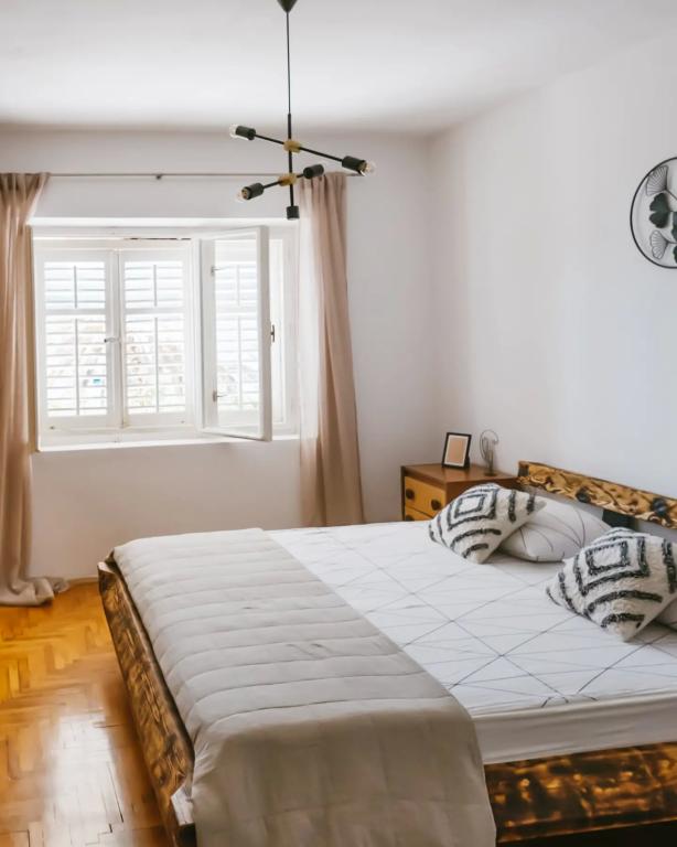 Mieszkanie znajduje się na piętrze domu, który znajduje się blisko morza. Odległość od centrum miasta, zaledwie kilka minut spacerem, gdzie znajduje się sklep i ATM. W apartamencie znajduje się kuchnia, cztery sypialnie i dwie łazienki. Idealny dla dużej rodziny lub grupy przyjaciół. W przedniej części domu znajduje się taras z dużym drewnianym stole, grill i huśtawka. Jest też balkon z widokiem na morze na wyjściu dwa pokoje. Natychmiast w przedniej części domu znajdują się dwa (kamyk) plaża i miejsca do cumowania łodzi. Cena zawiera podatek, korzystanie z internetu oraz parking. Mamy nadzieję, że gospodarze!