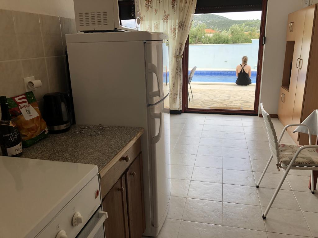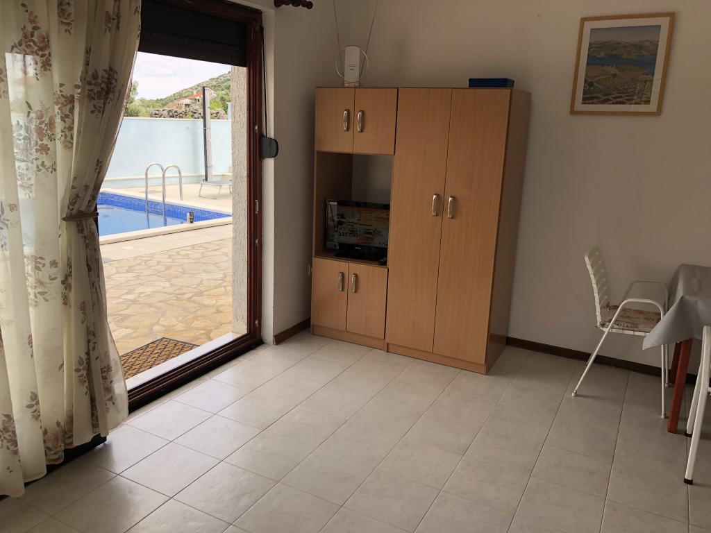 Przepiekny apartament ,bardzo zadbany przez gospodarzy i wyposazony we wszystko co potrzebne.W tym obiekcie miesci sie basen ktory jest systematycznie czyszczony przez gospodarzy.Idealne miejsce aby odpoczac i naladowac baterie.Na tarasie mozna usiasc i nacieszyc sie przepieknym widokiem na morze.Bardzo spokojna okolica ,idealna na wypoczynek i zapomnienie o zyciu codziennym .Jestem pod wielkim wrazenim bedac tutaj ,za rok tutaj wracam i polecam wszystkim szukajacym czystego apartamentu z basenem i odpoczynku w spokojnej okolicy .Do dyspozycji goscijest takze grill gdzie mozna pogrilowac.Gospodarze tego apartamentu sa bardzo goscinni,z dobrym sercem,mili i dbajacy bardzo o czystosc tego obiektu .Umilaja czas gosciom zabierajac prywatna lodzia na wycieczki.Zczystym sumieniem polecam ten apartament i wiem ze kazdy bedzie zadowolony tak hak ja po wlasnie mijajacym urlopie.