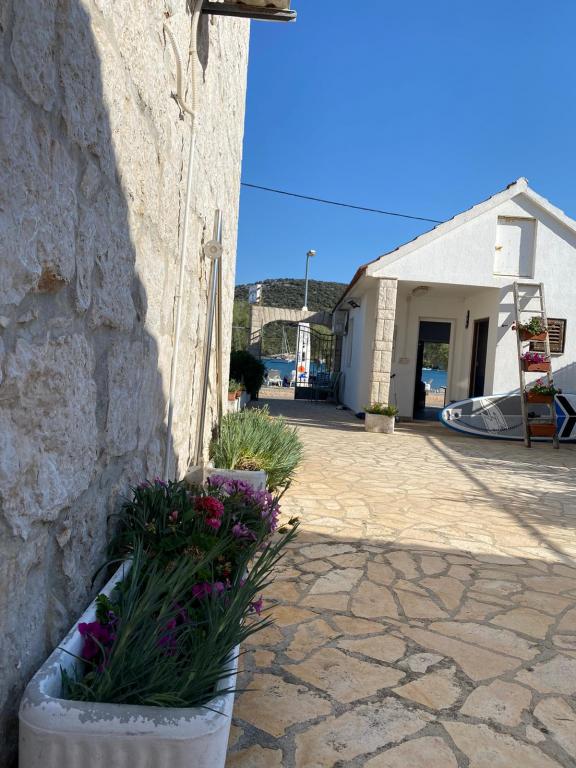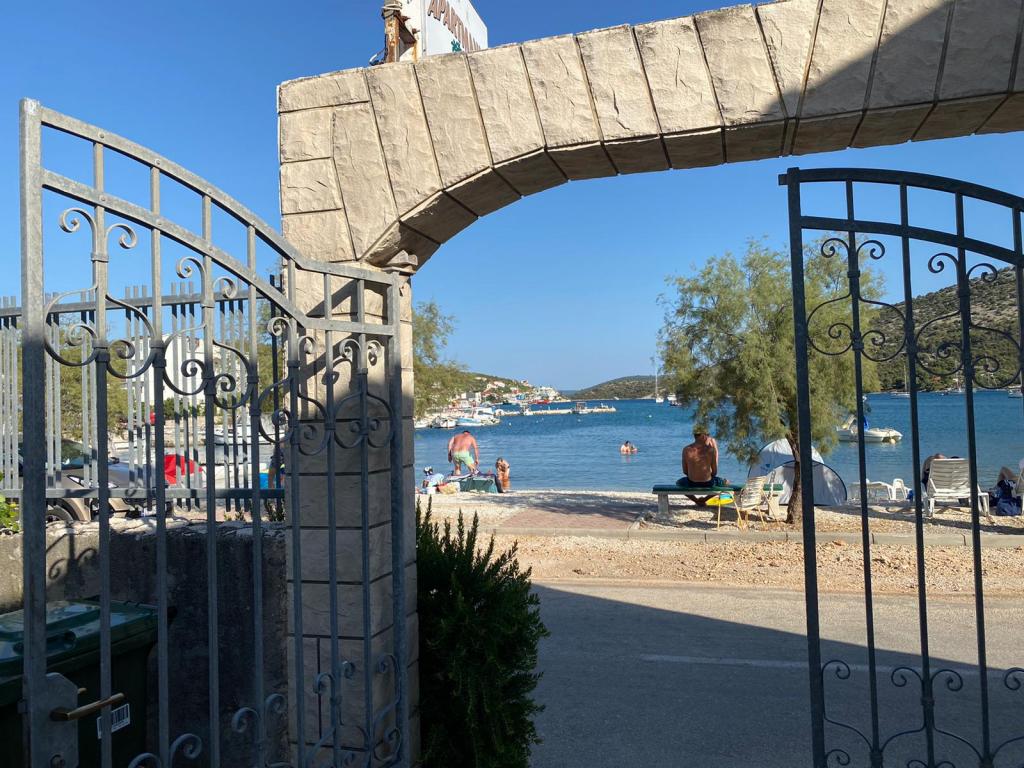 Three Palms Apartamenty położone są w samym centrum zatoki i Vinišće na plaży dosłownie kilka kroków kilkanaście od morza i kamienistej plaży, która łagodnie przechodzi w głąb krystalicznie błękitne morze, więc wprowadzić bardzo łatwy dla dzieci, osób starszych i niepełnosprawnych. Wyposażone są w komplecie z wszystko, co potrzebne na dłuższy i bardziej zrelaksowany wypoczynek, aby poczuć się jak w domu. Bardzo duży dziedziniec wejściowy daje możliwości życia w plenerze wewnątrz budynku i zabawy, jako dorośli, i dzieci. Parkowanie samochodu jest również w przedniej części mieszkania. Apartamenty 2 i 5 są przystosowane dla osób niepełnosprawnych zatrzymać, ponieważ są na ziemi, podczas gdy inni na podłodze. Apartament nr 1 charakteryzuje się tarasach 12 metrów kwadratowych z pięknej przyrody. Wszyscy goście mogą korzystać z grilla.
