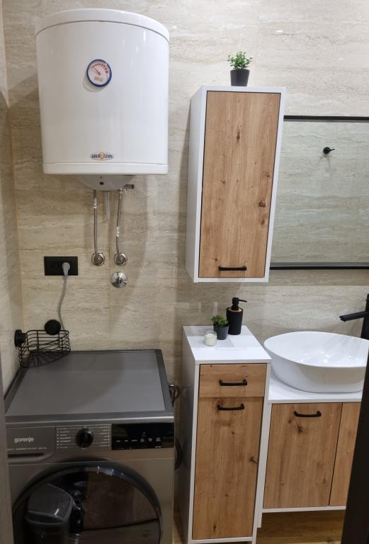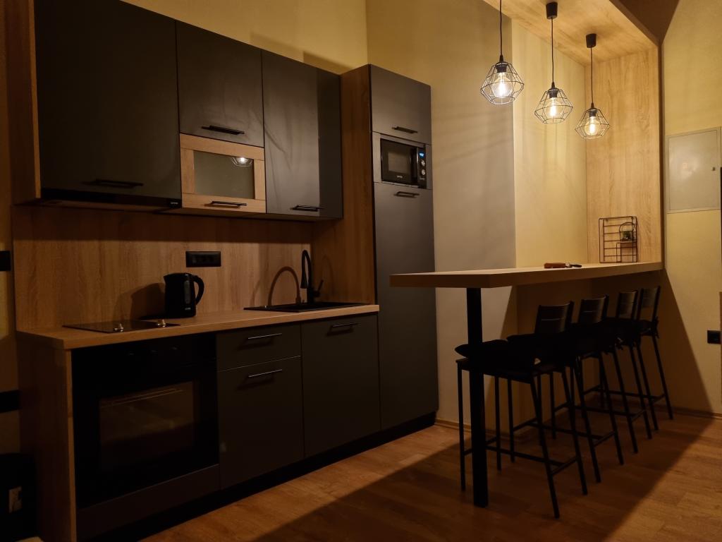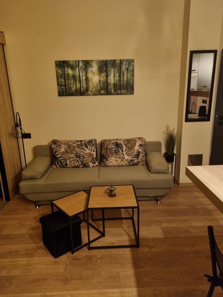Doskonała lokalizacja w centrum miasta! Całkowicie odnowiony apartament typu studio (33m2) zapewniający komfortowe zakwaterowanie dla dwóch osób plus dodatkowa rozkładana sofa, z której można korzystać dla dwóch osób po jej rozłożeniu, przeznaczony dla dzieci (dzieci do 12 lat bezpłatnie), całkowicie nowa wyposażona kuchnia z wszystkie urządzenia, nowo wyposażona łazienka z prysznicem, pralko-suszarką, całe pomieszczenie klimatyzowane i wyposażone w ogrzewanie podłogowe! Wynajmujemy na minimum 2 noce!