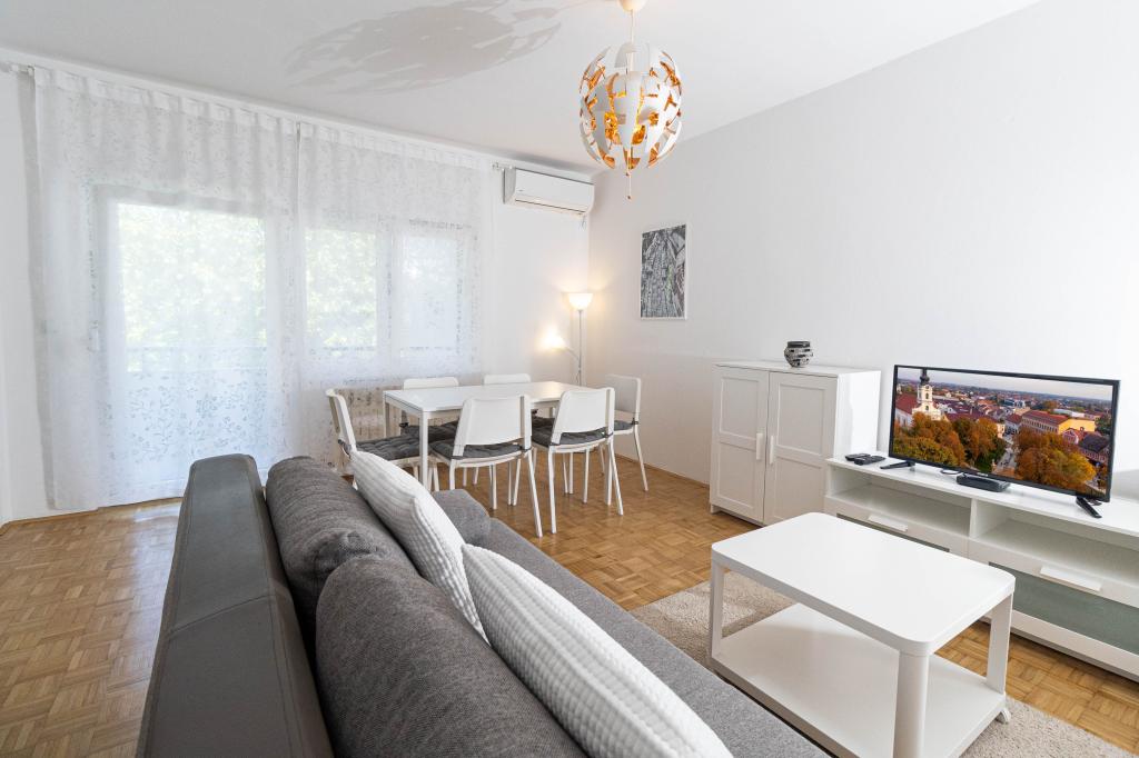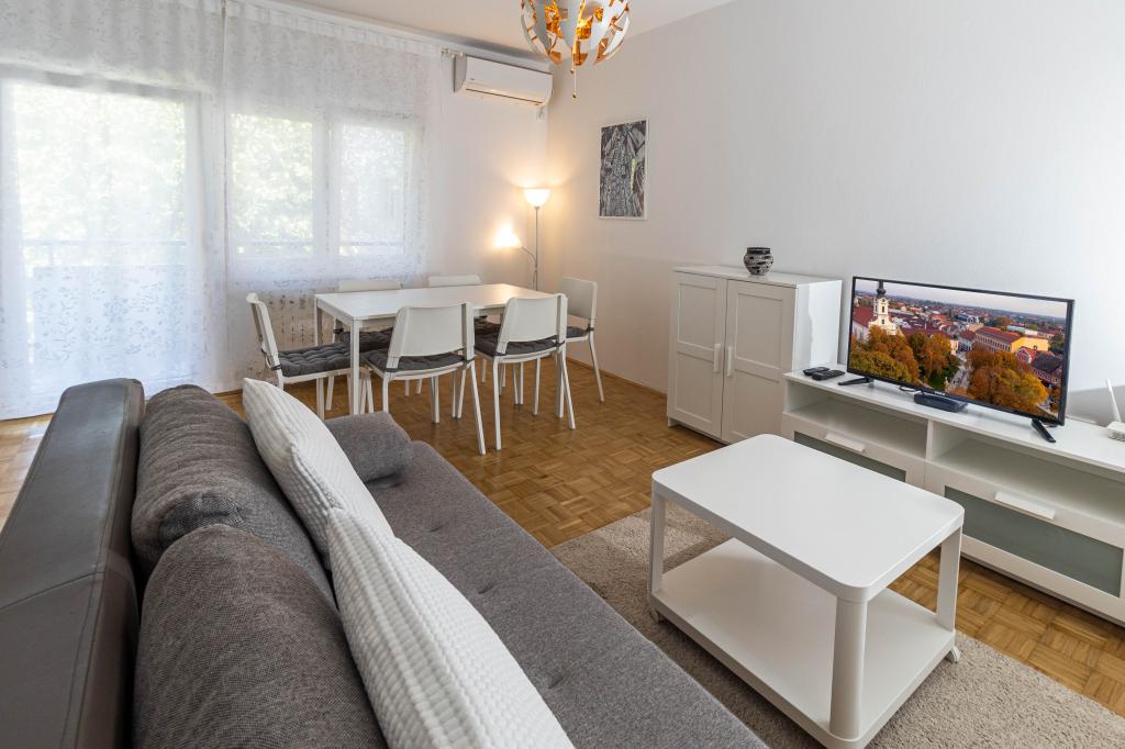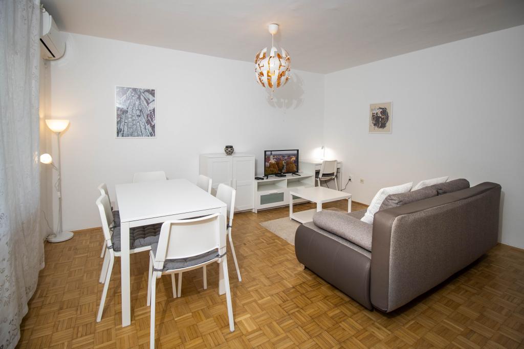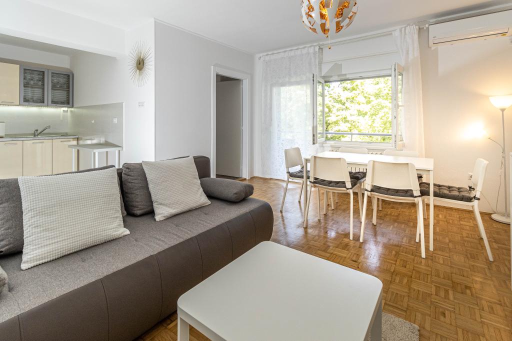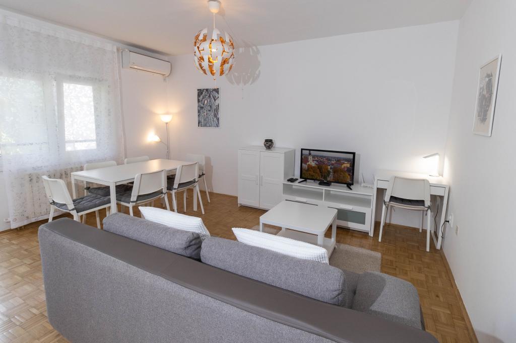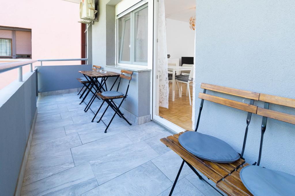 Doskonała lokalizacja w centrum miasta! Całkowicie odnowiony apartament (58m2) do komfortowego zakwaterowania dla czterech do sześciu osób. Duży salon (rozkładana sofa z możliwością rozłożenia na dodatkowe łóżko dla dwóch osób), balkon, dwie sypialnie (każda z łóżkiem dla dwóch osób), kuchnia, łazienka z kabiną prysznicową oraz przedpokój. W pełni wyposażona kuchnia, pralko-suszarka, klimatyzowana przestrzeń, wi-fi (internet optyczny), 120 programów TV, piękny balkon...