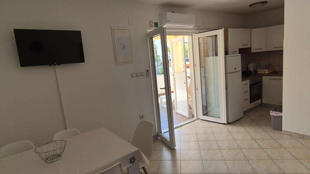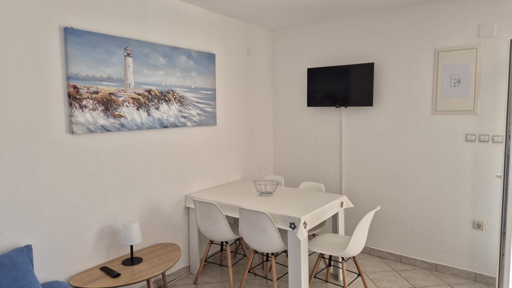 Apartament na prawdziwe wakacje – blisko plaży, z dala od zmartwień! Rozgość się w przestronnym apartamencie z dwiema sypialniami, salonem, kuchnią, jadalnią, łazienką, tarasem i własnym miejscem parkingowym. Wszystko jest gotowe na Twój przyjazd – pościel, naczynia, kieliszki do wina (i oczywiście sok). Zabierz ze sobą tylko ręczniki i artykuły higieny osobistej – reszta czeka na Ciebie! Plaża Žitna uvala, restauracje i promenada – 200 metrów; piekarnia, sklepy, sklep z pamiątkami – 250 metrów; taras – idealny na poranną kawę i wieczorne „nicnierobienie”; miejsce parkingowe – bo nawet samochód potrzebuje przerwy. Tutaj jesteś blisko wszystkiego, a jednocześnie wystarczająco daleko, by naprawdę odpocząć. Zarezerwuj z wyprzedzeniem – apartament nie będzie długo czekał na wolny!