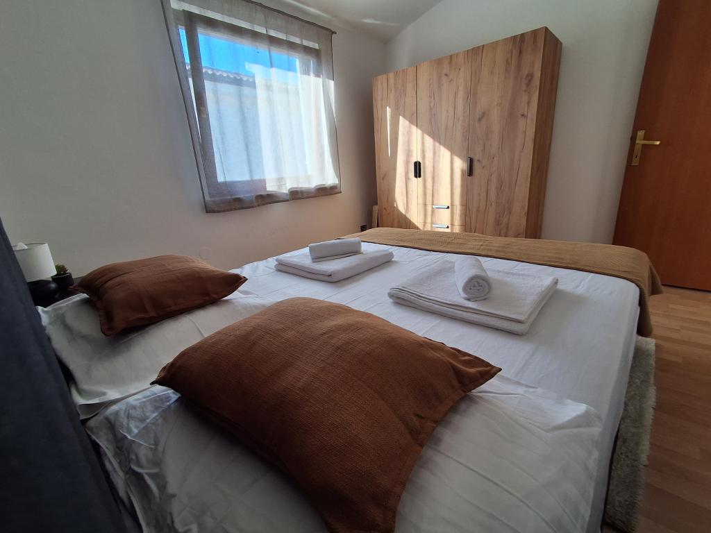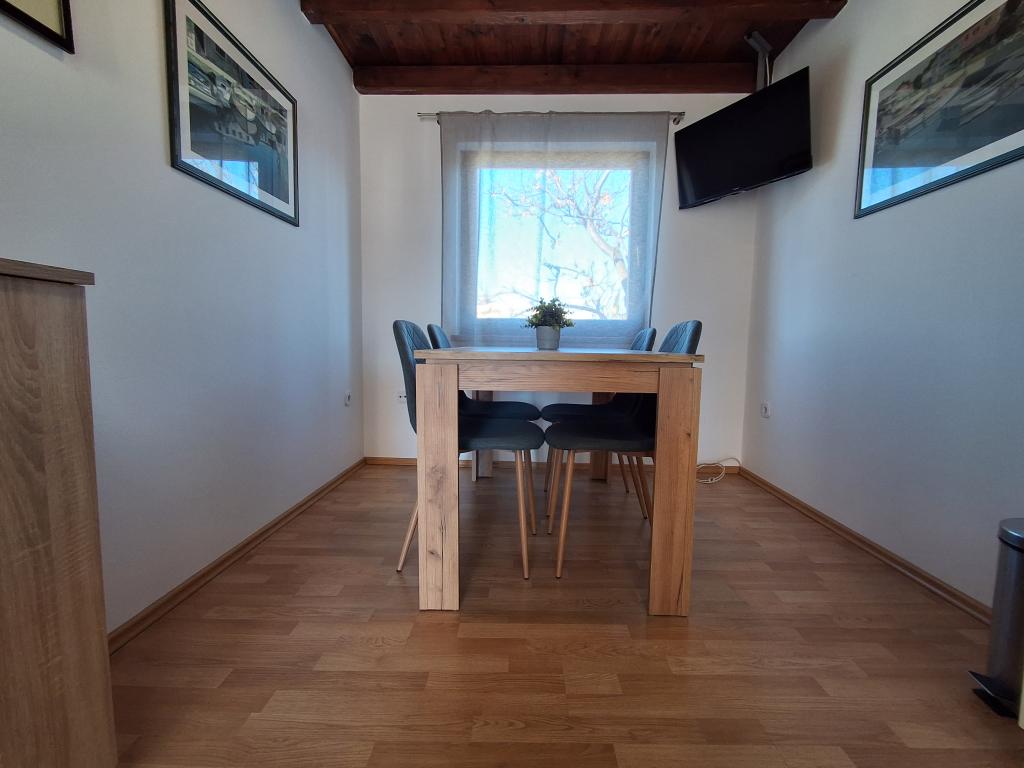 Ładnie i nowocześnie urządzony apartament dla czterech osób na wyspie Vir jest idealny na rodzinne wakacje. Znajduje się kilka minut od plaży, która jest odpowiednia dla dzieci, centrum, w którym znajduje się promenada wzdłuż wybrzeża, poczty, kościoła, dworca autobusowego który znajduje się w bezpośrednim sąsiedztwie oraz sklepu. Mieszkanie ma powierzchnię 50 m2 i posiada osobne wejście. W cenie miejsce parkingowe, klimatyzacja w całym mieszkaniu, grill, letni prysznic znajdujący się na podwórku. Składa się z dwóch sypialni, łazienki z prysznicem, kuchni z jadalnią oraz tarasu. Znajduje się w spokojnej części wyspy Vir, ale wszystko jest w zasięgu ręki, idealne na idealne wakacje.