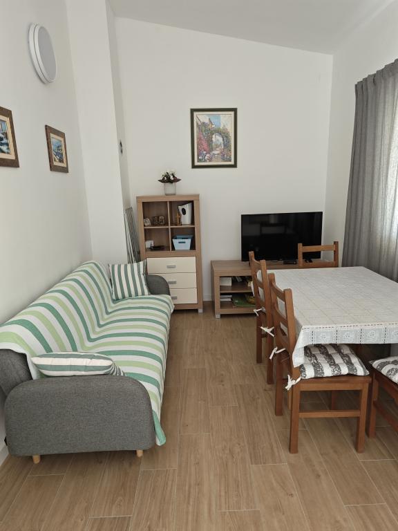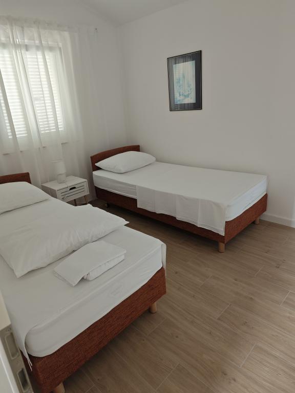 Wynajmujemy mieszkanie w domu, pierwsze piętro, osobne wejście, parking w podwórzu. Mieszkanie składa się z dwóch pokoi, - Jedna z podwójnym łóżkiem i - Druga z dwoma pojedynczymi łóżkami, - Pokój dzienny z rozkładaną sofą, TV, klimatyzacja - W pełni wyposażona kuchnia, - Łazienka z prysznicem, - Duży taras, miejsce parkingowe i na grilla Odnowione, klimatyzowane, w odległości 100 metrów od morza, do 5 osób.