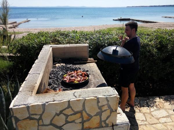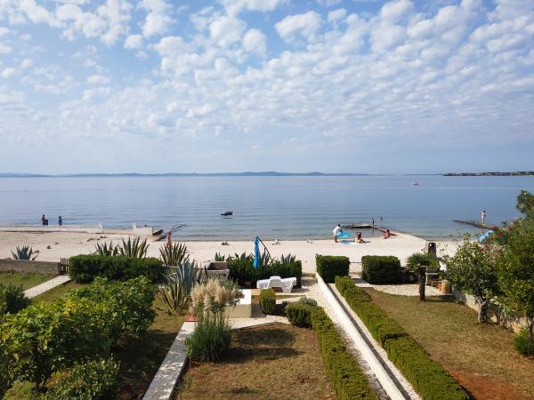 Wypoczywaliśmy w apartamencie w 2019 roku z dwójką małych dzieci. Mieszkanie znajduje się bezpośrednio na plaży. Jest kilka takich lokalizacji. Wspaniały widok z tarasu. Nie ma drogi między apartamentem a plażą. Bardzo odpowiedni dla dzieci. Praktycznie zawsze masz je przed oczami (nawet z tarasu), nawet jeśli nie zawsze jesteś przy nich na plaży. Po wyjściu z ogrodu jesteś na plaży. Po kilku krokach w morzu. Więc poduszki i skarpetki mieliśmy non stop na plaży. Lodówka jest na wyciągnięcie ręki… kilka kroków do mieszkania… I bez pakowania i wysyłki na plażę… a potem sprzątanie i ładowanie ich z powrotem do mieszkania !!!! Wieczorem właśnie przeniosłem całą paszę przez płot do ogrodu mieszkalnego. Jeśli jednak przypadkowo zapomnieliśmy, przyjazny właściciel zrobił to za nas. W ogrodzie obok prysznica na plaży, kominek do pieczenia .. z parasolem…. Po codziennych świeżych rybach, warzywach, owocach poszedłem do miejscowych rybaków. Oczywiście właściciel mówi o nich. Mieszkanie jest nowo umeblowane. To jest studio + 1 mieszkanie. Na tarasie mieszkania świetna markiza z silnikiem i pilotem. Na każdym kroku można zobaczyć (także syna pracownika turystyki), że znają się jako turystyka. Właściciele są bardzo przyjaźni, pomocni i dyskretni. Wszystko jest schludne, schludne, czyste ... Zadbano o każdą drobiazg ... Do centrum miasta prowadzi promenada. W mieście wiele się dzieje i koncert prawie każdej nocy. W pobliżu jest kilka sklepów, piekarnie. Jeździłem na rowerze, który oczywiście pożyczył ci właściciel. W skrócie dla nas, świetnie, pięć. Jak się mówi, takich miejsc jest niewiele. Oczywiście wrócimy przy pierwszej okazji, jeśli tylko w celu zachowania zgodności z terminem.