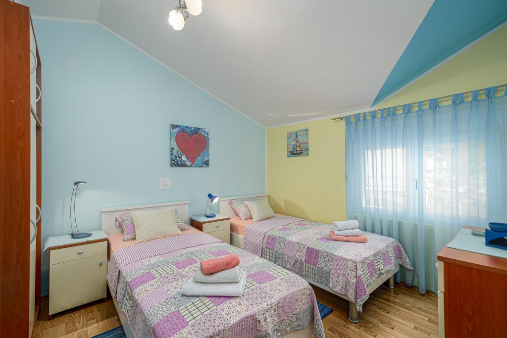 Apartament Lela znajduje się na pierwszym piętrze. Mieszkanie ma dwie sypialnie, dwie łazienki, duży salon z kuchnią i jadalnią oraz duży taras. Plaża znajduje się 100 m od apartamentu, sklep również 100 metrów. Na plaży znajduje się restauracja typu fast food i kawiarnia. Ulica jest cicha, ruch tylko dla mieszkańców ulicy. Mieszkanie ma własne miejsce parkingowe na podwórku, grill i własny duży taras.Plaża jest betonowa z kamyczkami, a 200m dalej znajduje się zatoka z piaszczystą plażą. Sklep i piekarnia 100m od apartamentu Apartament posiada wodę miejską, klimatyzację oraz bezpłatny dostęp do internetu. Zorganizowane wycieczki przez biuro turystyczne Vir do wodospadów Krka, Kornati, Jezior Plitwickich i innych ciekawych miejsc. Wypożyczalnia rowerów, motorówek i łódek Szkoła nurkowania. Chcemy, abyś czuł się komfortowo w swoim mieszkaniu w swoim domu, a pobyt w Vir pozostanie w miłych wspomnieniach :) Czekamy na Twoje przybycie