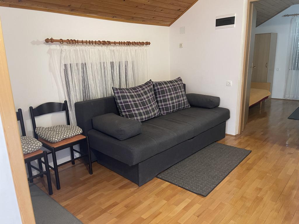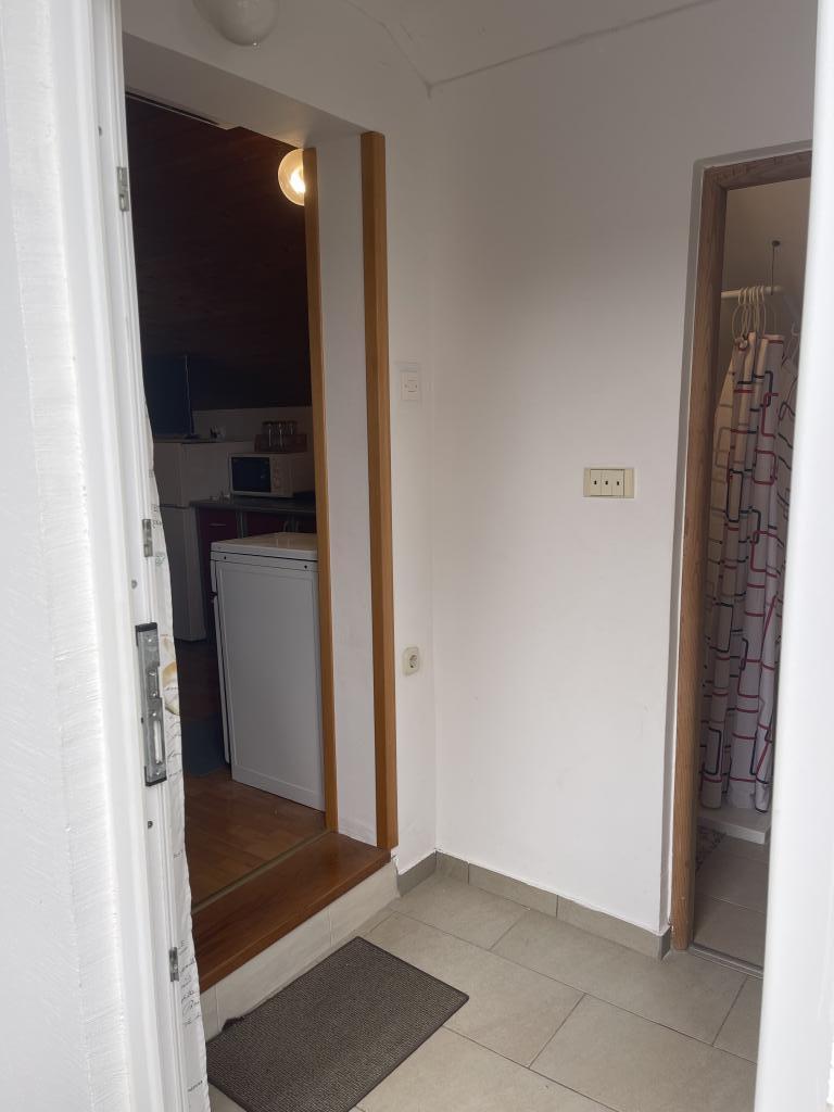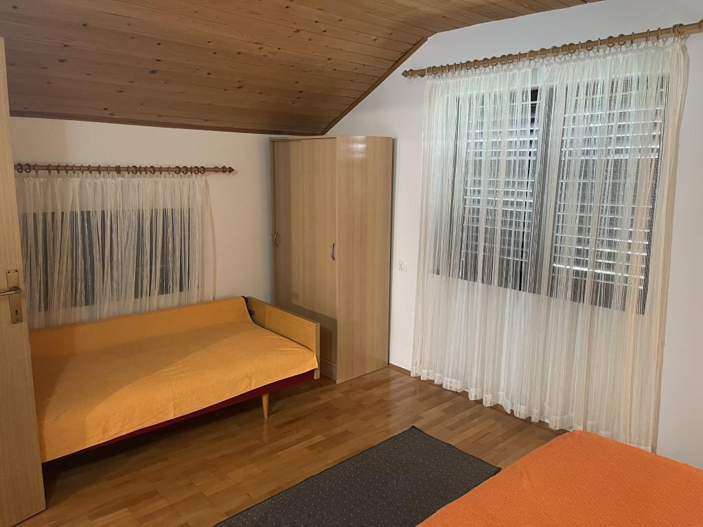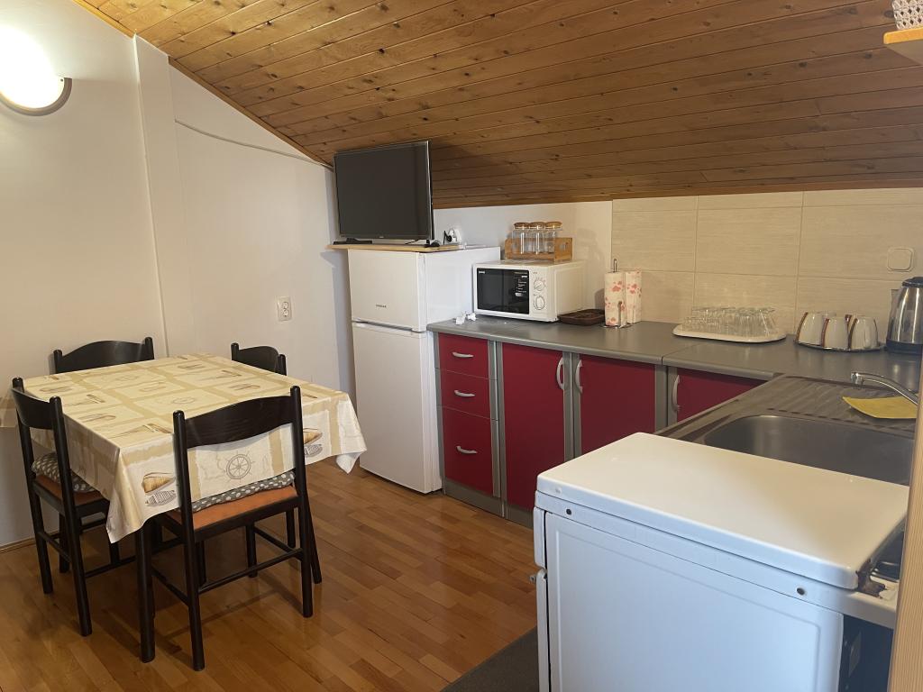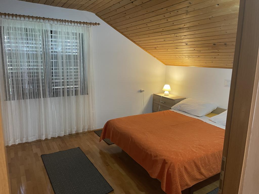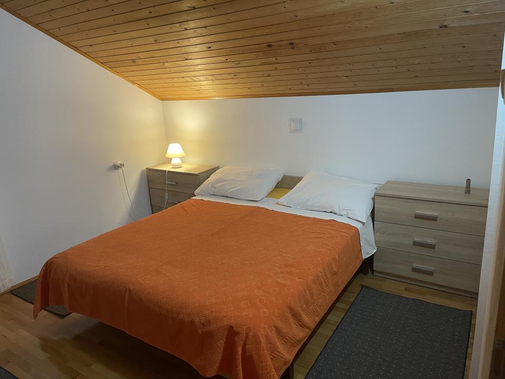 Apartament na pierwszym piętrze (parter), z osobnym wejściem w domu wakacyjnym na wyspie Vir, około 100-150 m od plaży, 70 m od najbliższego sklepu i restauracji. Mieszkanie ma oddzielną sypialnię z łóżkiem małżeńskim, pokój dzienny z kuchnią, w której można umieścić dostawkę dla dwóch osób, łazienkę oraz taras o powierzchni około 15 m2. Przed budynkiem znajduje się miejsce parkingowe.
