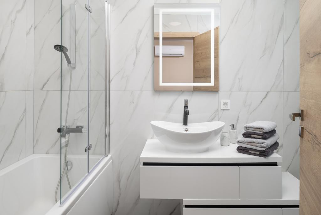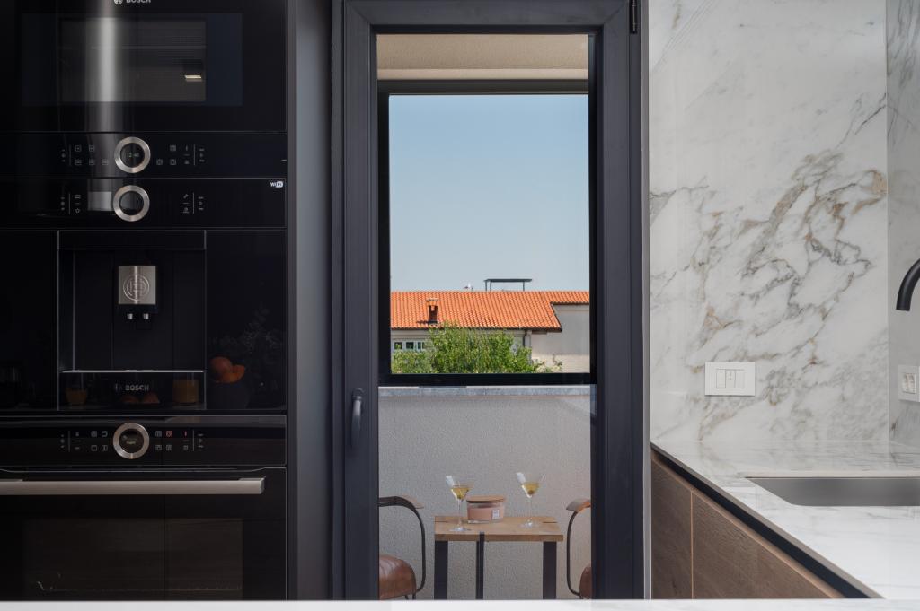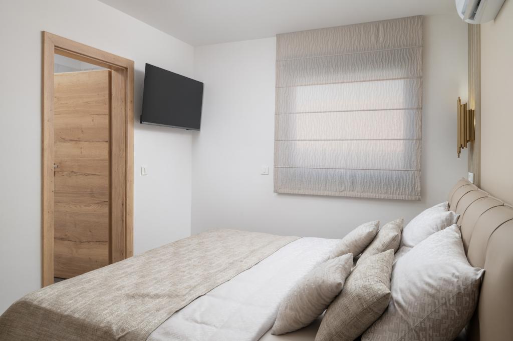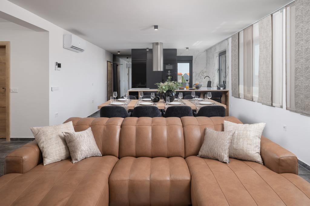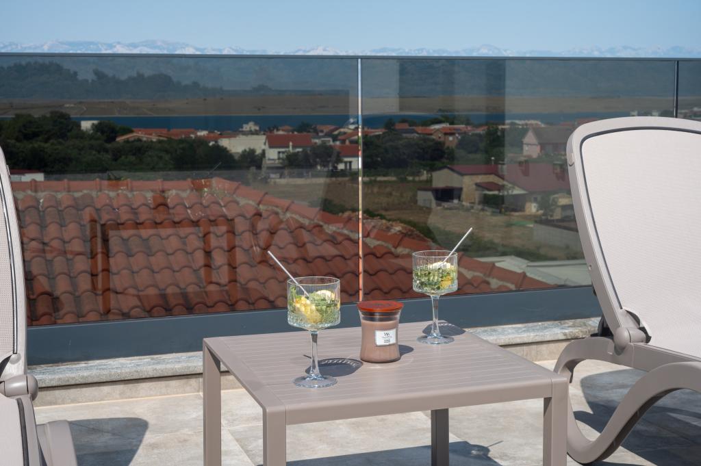 Designersko urządzony i całkowicie nowocześnie wyposażony pięciogwiazdkowy penthouse, położony na drugim piętrze, w samym sercu wyspy Vir. Ten 100-metrowy penthouse idealnie pomieści 4-5 osób. Składa się z salonu z w pełni wyposażoną kuchnią i jadalnią, osobnej toalety, garderoby, dwóch klimatyzowanych sypialni z łóżkiem małżeńskim i telewizją satelitarną oraz dwóch łazienek (jedna z prysznicem, druga z wanną). W salonie znajduje się rozkładana sofa dla jednej osoby. Penthouse posiada zadaszony balkon o powierzchni 3 m², wyposażony w grill elektryczny, stół i krzesła, z którego roztacza się częściowy widok na morze. Penthouse posiada taras na dachu (90 m²) z widokiem na morze i leżakami.