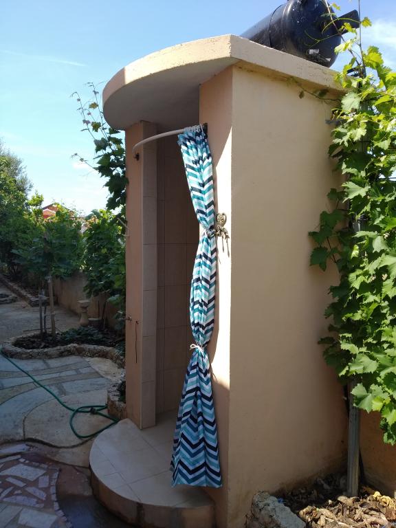 Opłata jest wliczone w cenę.Do dyspozycji gości duży ogrodzony dziedziniec. Za domem mamy prysznic na świeżym powietrzu z ciepłą i zimną wodą. Każdy może brać prysznic, kiedy chce. Obok domu, w odpowiedniej odległości od apartamentu, znajduje się grill. Jest on również dostępny dla wszystkich gości. Jest też wystarczająco dużo miejsca do zabawy dla dzieci. A co najważniejsze, parkujesz samochód na ogrodzonym podwórku.