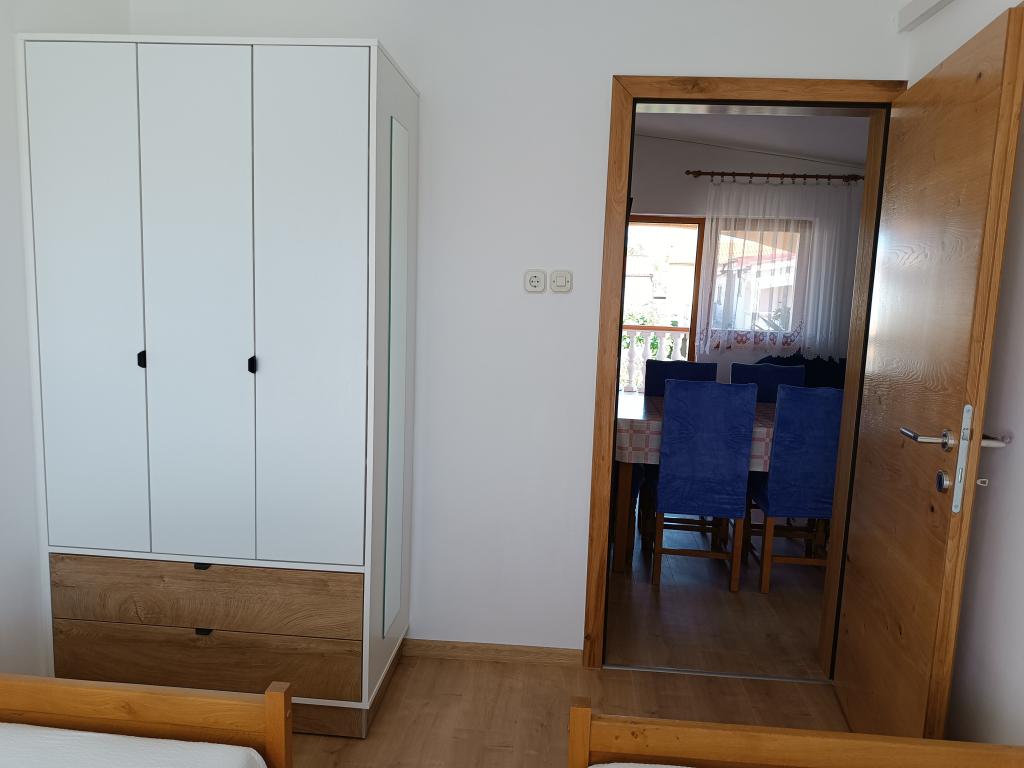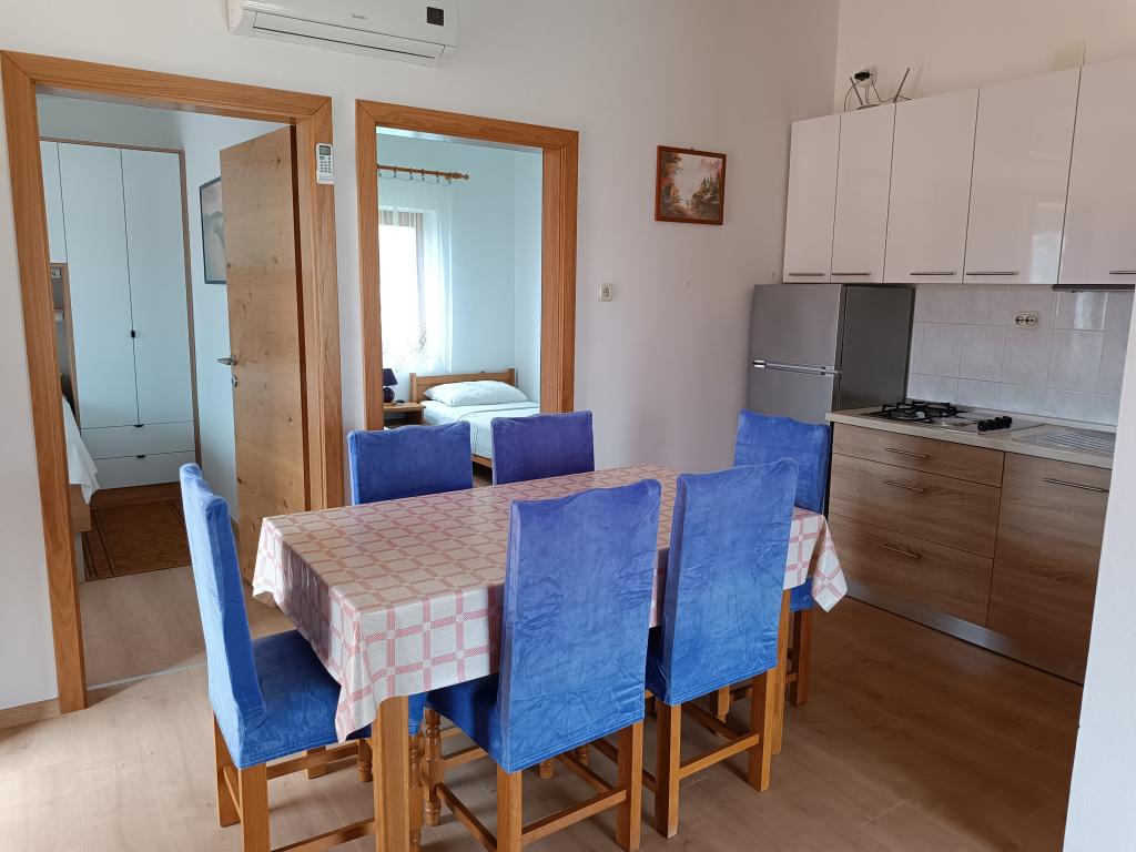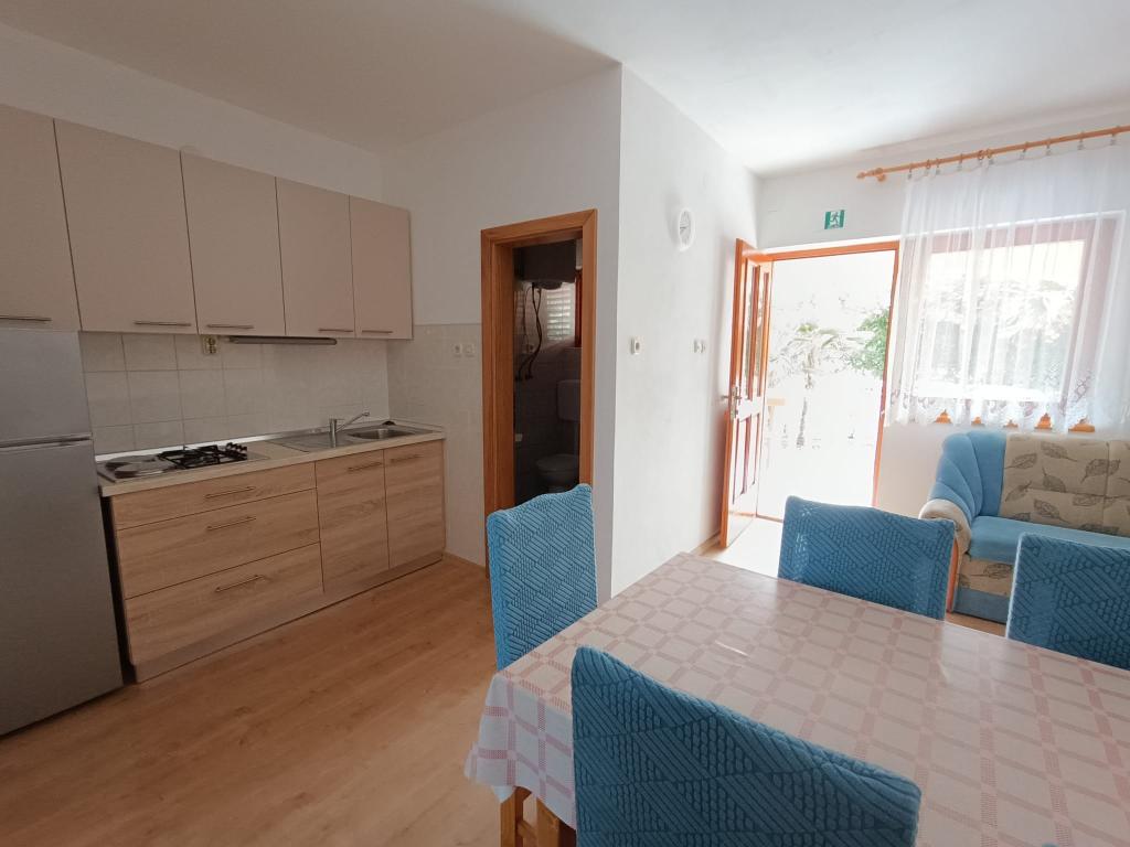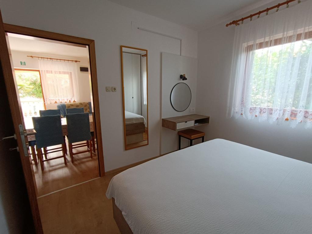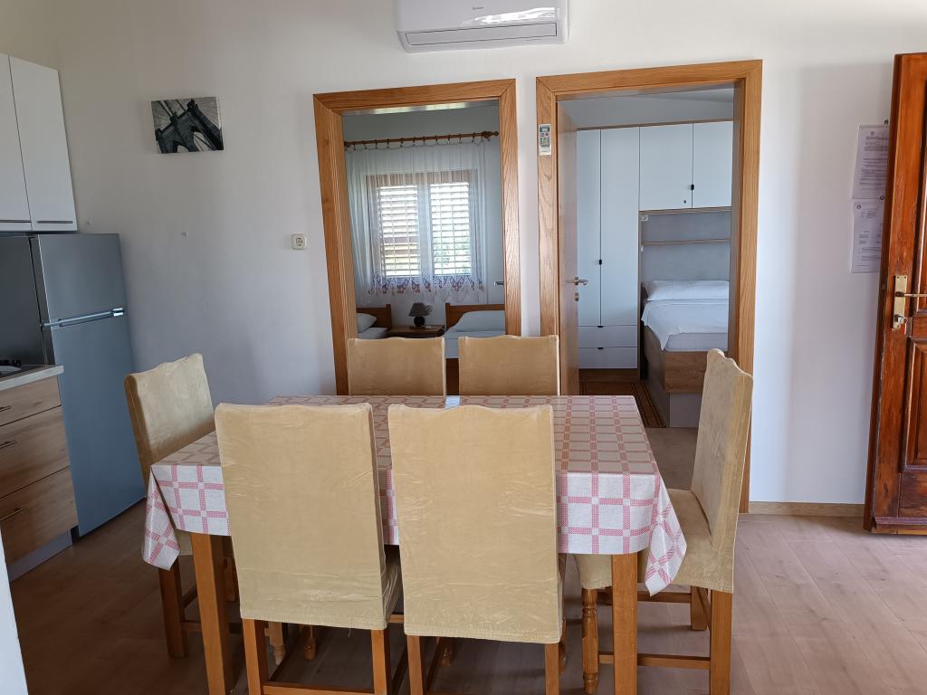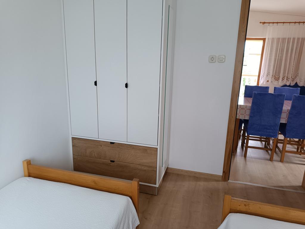 Wynajmujemy trzy identyczne, większe, klimatyzowane apartamenty dla 4 osób i jeden mniejszy apartament dla dwóch osób. Jeden większy znajduje się na parterze po lewej stronie, a dwa na pierwszym piętrze. Mniejszy znajduje się na parterze po prawej stronie. Większe apartamenty mają dwie sypialnie i pokój dzienny, podczas gdy mniejsze apartamenty mają jedną sypialnię i pokój dzienny. Każde mieszkanie ma osobne wejście i taras o powierzchni 12 metrów kwadratowych. W apartamentach otrzymujesz całą pościel i naczynia do gotowania oraz serwowania posiłków i napojów. Goście proszeni są o przywiezienie własnych środków do mycia i wycierania naczyń, a także ręczników do łazienki i artykułów do higieny osobistej. Najbliższa plaża (Žitna uvala) oddalona jest o 100 m. Na zewnątrz plaża jest żwirowa, a w wodzie piasek. Jest odpowiedni dla dzieci. Wzdłuż plaży biegnie długa promenada i ścieżka rowerowa. Na plaży znajduje się kilka restauracji i lodziarnia. W promieniu 150-250 metrów znajduje się sklep owocowy, piekarnia, kilka sklepów spożywczych oraz sklepy ze sprzętem plażowym. Nasza ulica nie jest zatłoczona. Korzystają z niego wyłącznie najemcy i goście. Jest utwardzona i posiada oświetlenie publiczne.