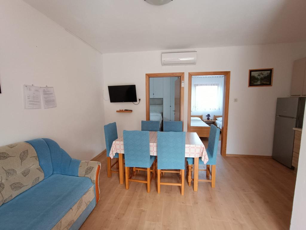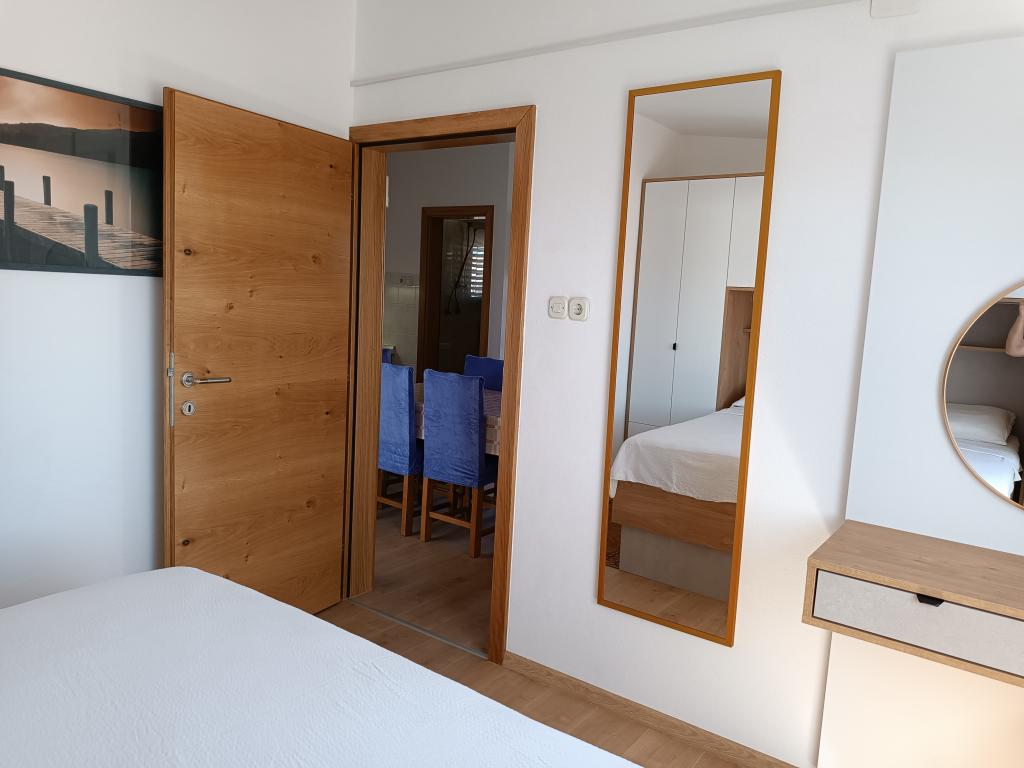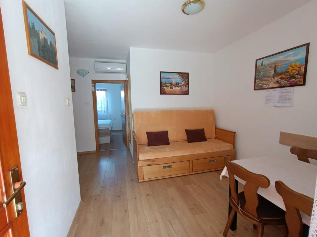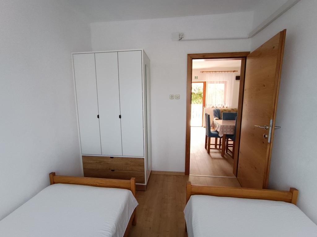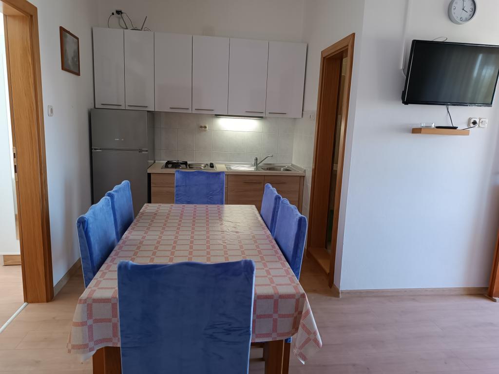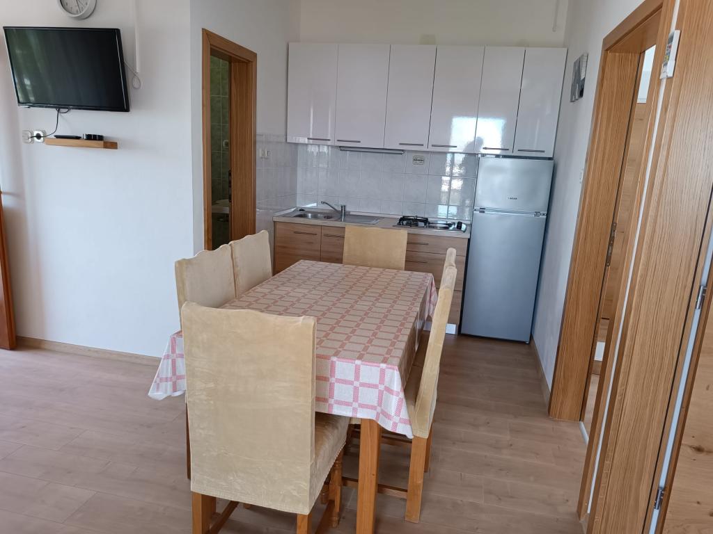 Wynajmujemy trzy identyczne, większe, klimatyzowane apartamenty dla 4 osób i jeden mniejszy apartament dla dwóch osób. Jeden większy znajduje się na parterze po lewej stronie, a dwa na pierwszym piętrze. Mniejszy znajduje się na parterze po prawej stronie. Większe apartamenty mają dwie sypialnie i pokój dzienny, podczas gdy mniejsze apartamenty mają jedną sypialnię i pokój dzienny. Każde mieszkanie ma osobne wejście i taras o powierzchni 12 metrów kwadratowych. W apartamentach otrzymujesz całą pościel i naczynia do gotowania oraz serwowania posiłków i napojów. Goście proszeni są o przywiezienie własnych środków do mycia i wycierania naczyń, a także ręczników do łazienki i artykułów do higieny osobistej. Najbliższa plaża (Žitna uvala) oddalona jest o 100 m. Na zewnątrz plaża jest żwirowa, a w wodzie piasek. Jest odpowiedni dla dzieci. Wzdłuż plaży biegnie długa promenada i ścieżka rowerowa. Na plaży znajduje się kilka restauracji i lodziarnia. W promieniu 150-250 metrów znajduje się sklep owocowy, piekarnia, kilka sklepów spożywczych oraz sklepy ze sprzętem plażowym. Nasza ulica nie jest zatłoczona. Korzystają z niego wyłącznie najemcy i goście. Jest utwardzona i posiada oświetlenie publiczne.