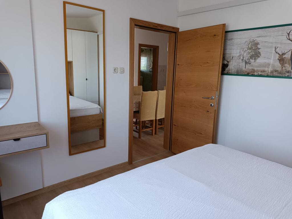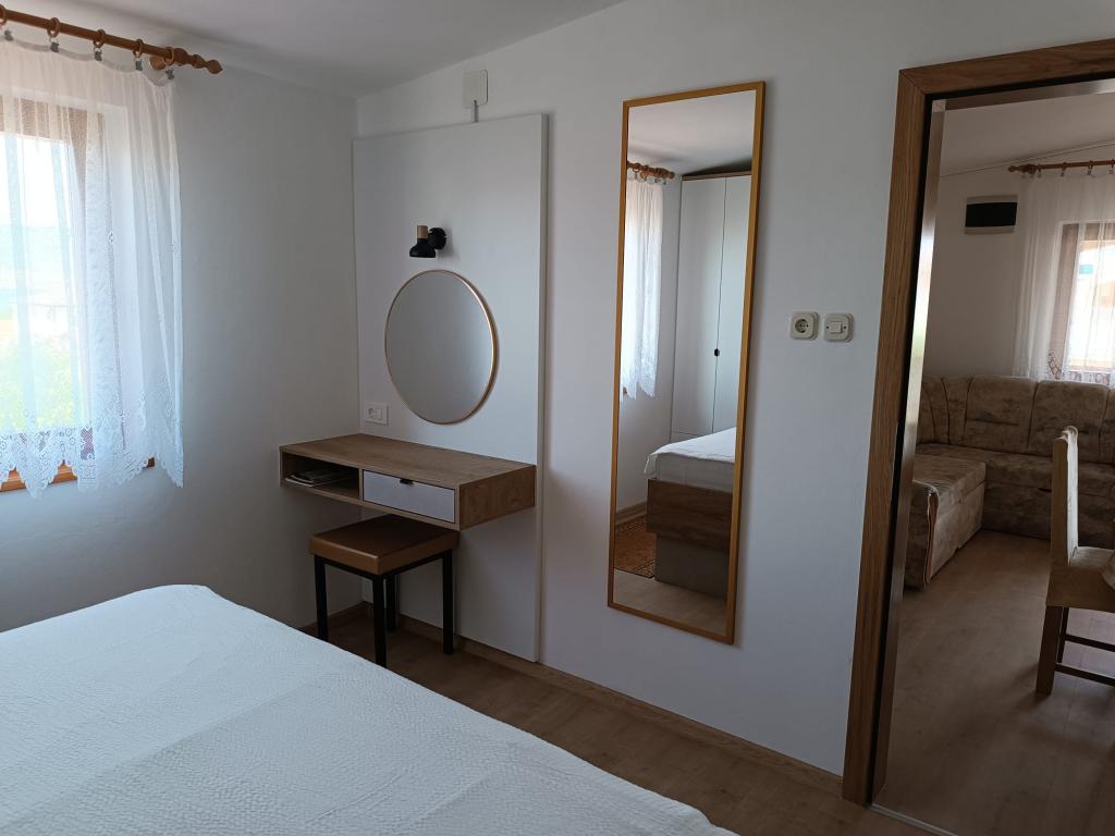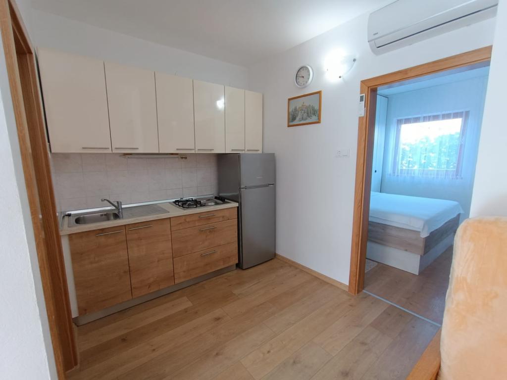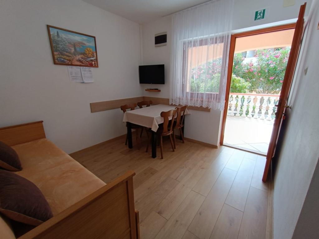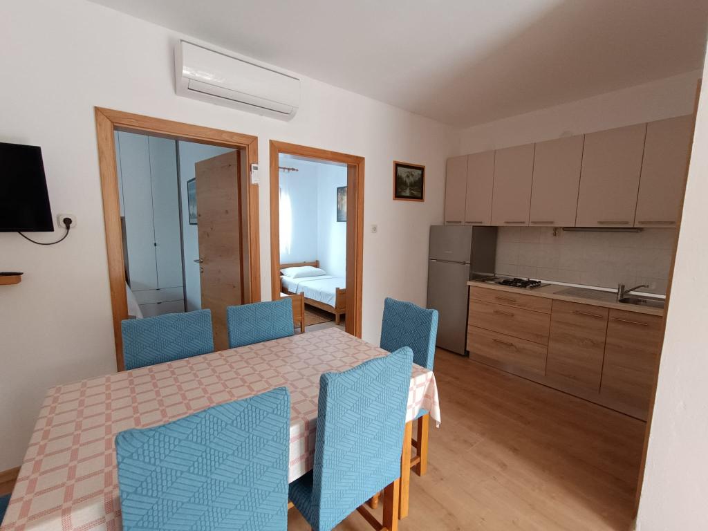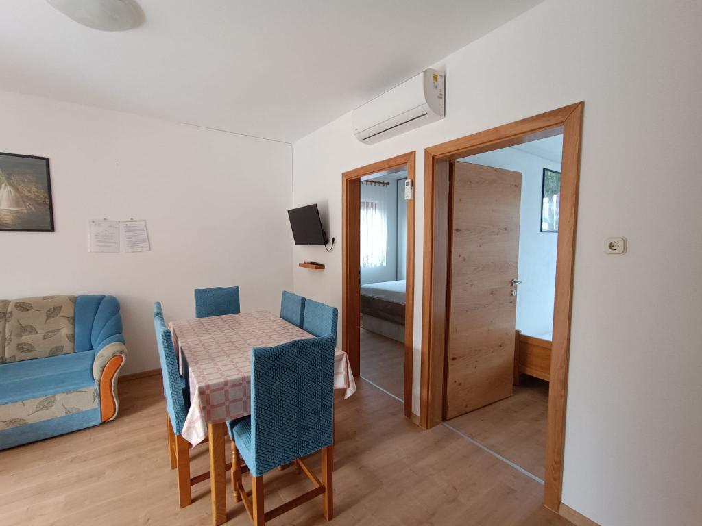 Wynajmujemy trzy identyczne, większe, klimatyzowane apartamenty dla 4 osób i jeden mniejszy apartament dla dwóch osób. Jeden większy znajduje się na parterze po lewej stronie, a dwa na pierwszym piętrze. Mniejszy znajduje się na parterze po prawej stronie. Większe apartamenty mają dwie sypialnie i pokój dzienny, podczas gdy mniejsze apartamenty mają jedną sypialnię i pokój dzienny. Każde mieszkanie ma osobne wejście i taras o powierzchni 12 metrów kwadratowych. W apartamentach otrzymujesz całą pościel i naczynia do gotowania oraz serwowania posiłków i napojów. Goście proszeni są o przywiezienie własnych środków do mycia i wycierania naczyń, a także ręczników do łazienki i artykułów do higieny osobistej. Najbliższa plaża (Žitna uvala) oddalona jest o 100 m. Na zewnątrz plaża jest żwirowa, a w wodzie piasek. Jest odpowiedni dla dzieci. Wzdłuż plaży biegnie długa promenada i ścieżka rowerowa. Na plaży znajduje się kilka restauracji i lodziarnia. W promieniu 150-250 metrów znajduje się sklep owocowy, piekarnia, kilka sklepów spożywczych oraz sklepy ze sprzętem plażowym. Nasza ulica nie jest zatłoczona. Korzystają z niego wyłącznie najemcy i goście. Jest utwardzona i posiada oświetlenie publiczne.