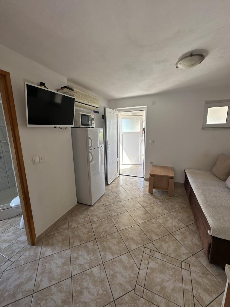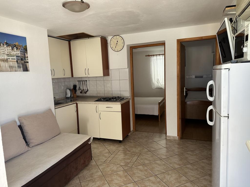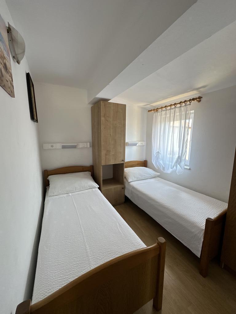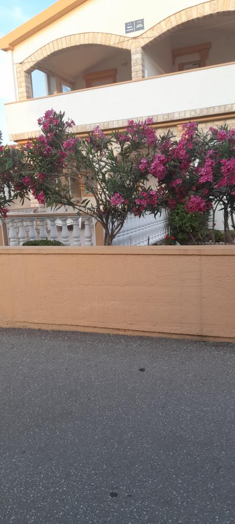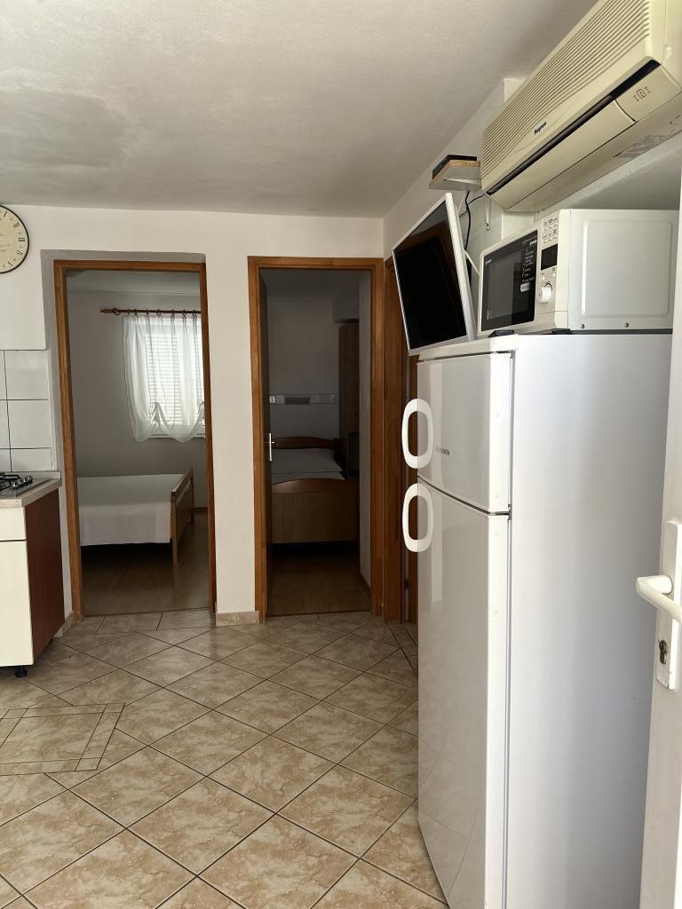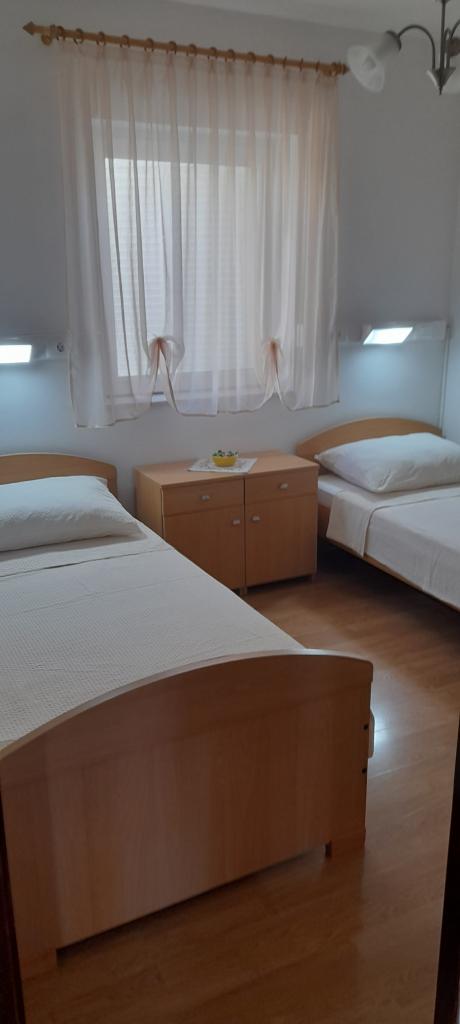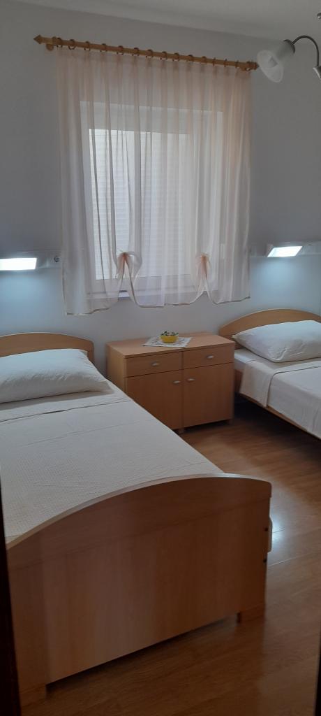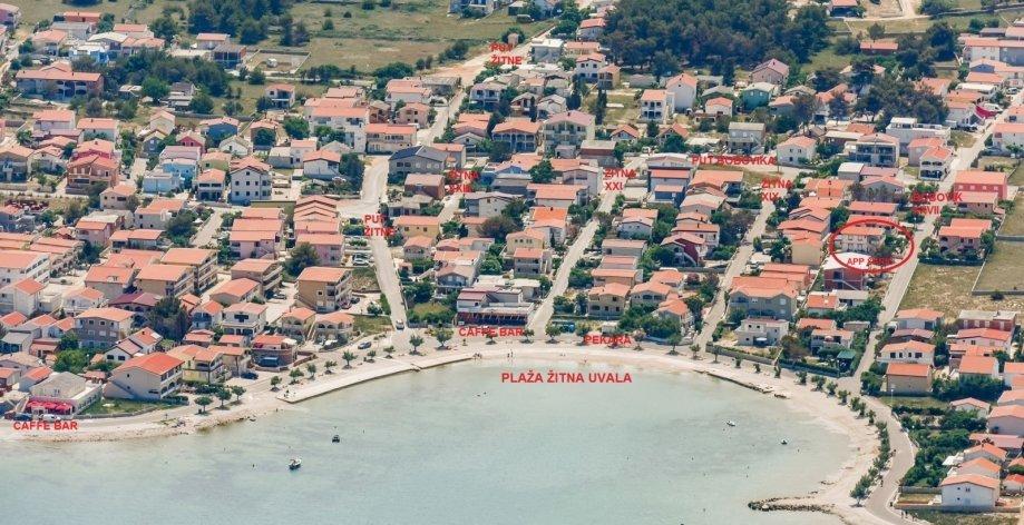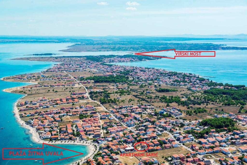 W domu są trzy mieszkania. Dwa z nich składają się z dwóch sypialni, salonu, kuchni, łazienki i dużego zadaszonego tarasu. W każdym z nich znajduje się jeden pokój z łóżkiem podwójnym i drugi pokój z dwoma pojedynczymi łóżkami. Trzeci apartament składa się z jednej sypialni z łóżkiem podwójnym, kuchni, łazienki i dużego, zadaszonego tarasu. We wszystkich pokojach znajduje się pościel. Kuchnie wyposażone są w naczynia do gotowania i serwowania posiłków, a także w kuchenkę mikrofalową i czajnik. W każdym apartamencie znajduje się klimatyzacja, która jest wliczona w cenę. Wszystkie apartamenty mają osobne wejście. Na terenie domu znajduje się parking, z którego mogą korzystać wszyscy goście. Można również skorzystać z grilla. Plaża Žitna uvala oddalona jest o 80 metrów. Plaża jest kamienista, a morze piaszczyste. Wzdłuż plaży rozciąga się promenada i ścieżka rowerowa, a także liczne kawiarnie, restauracje, cukiernie i piekarnie. W promieniu 100 m znajdują się liczne sklepy. Centrum Viru oddalone jest o 1800 m.