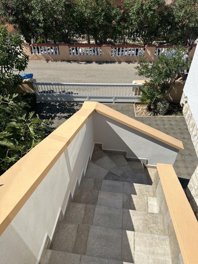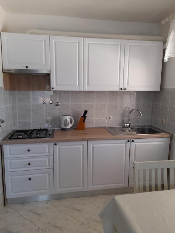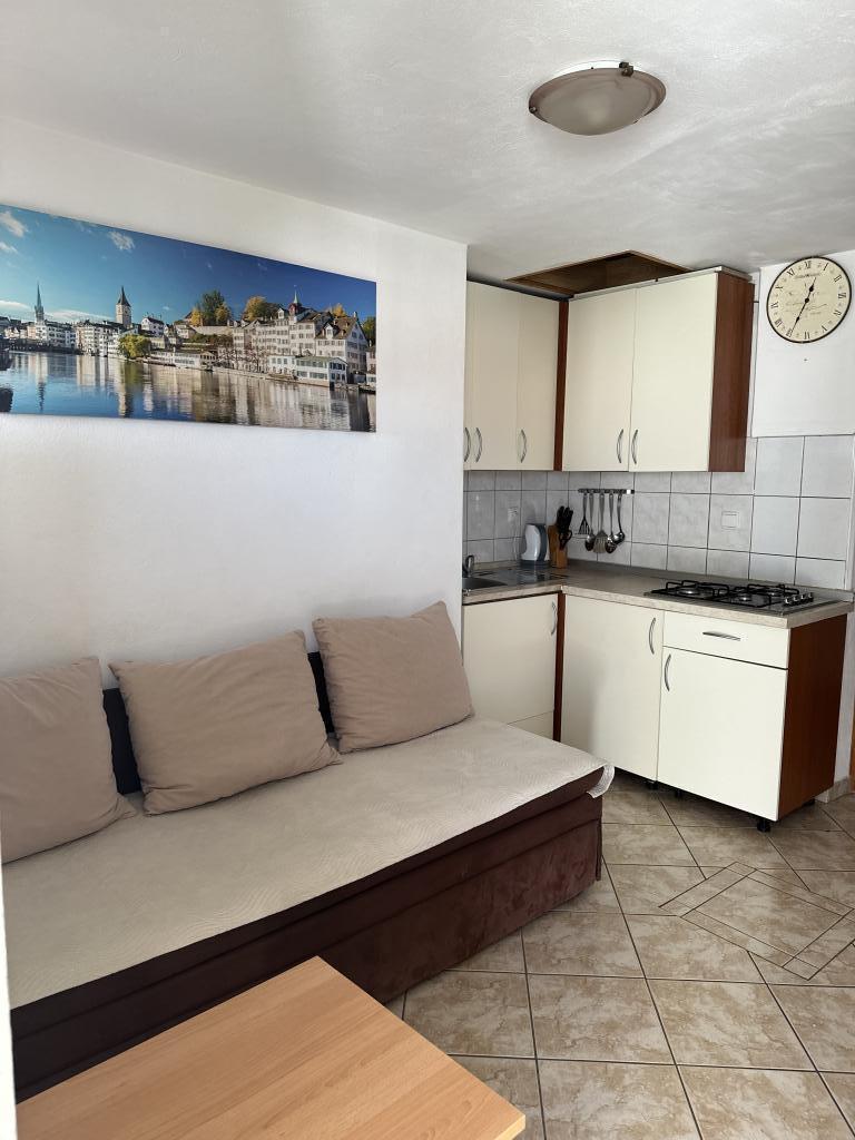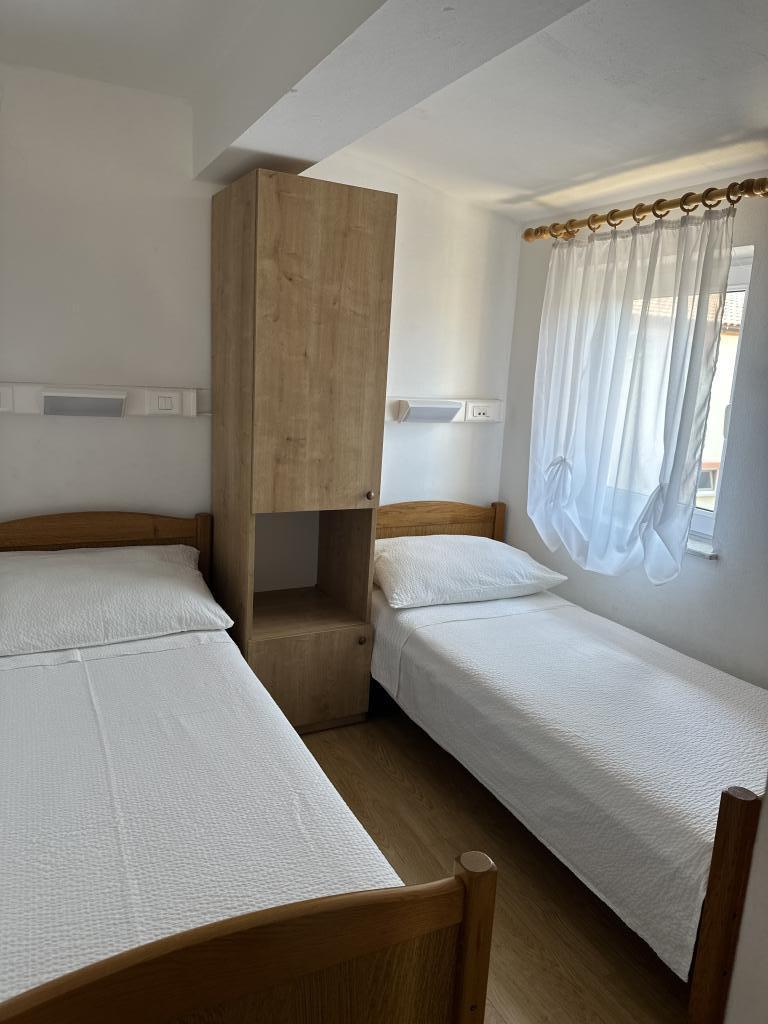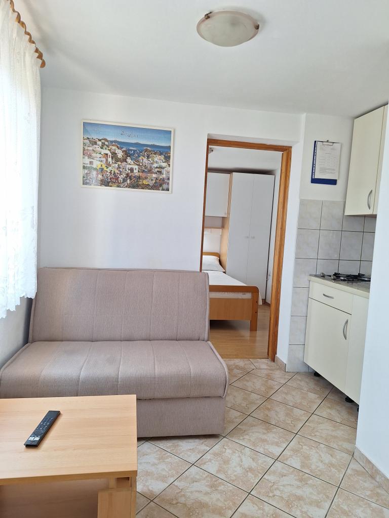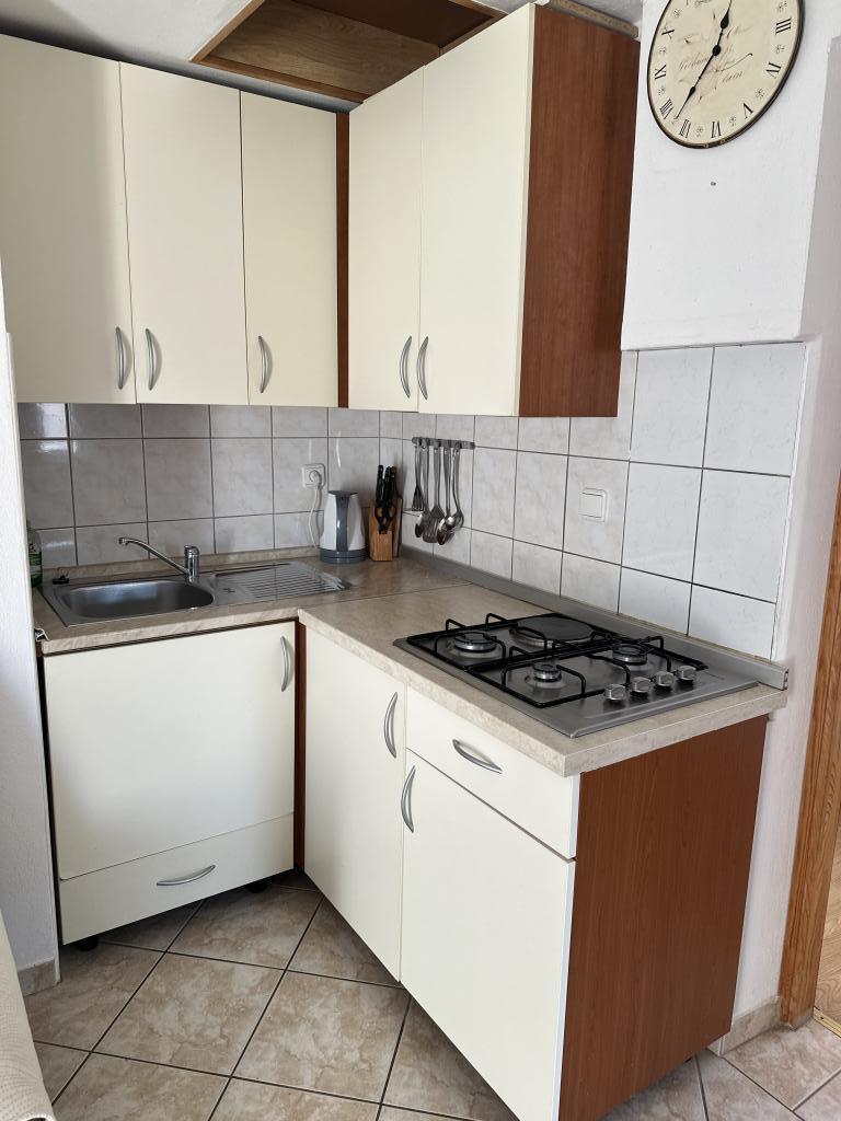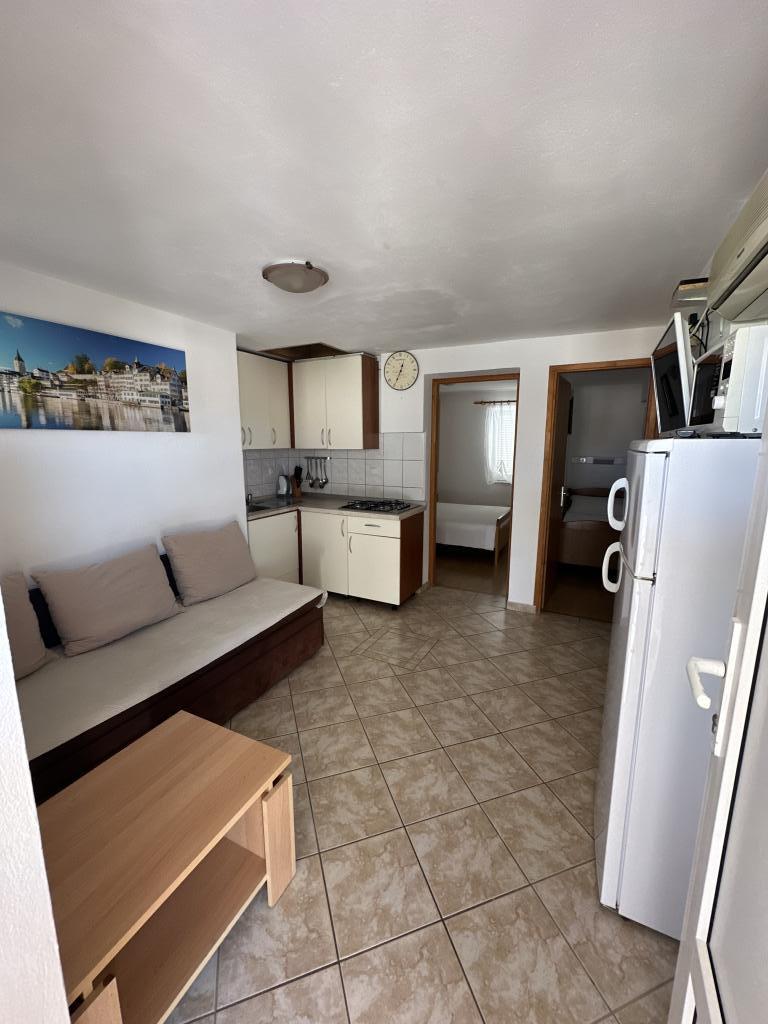 W domu są trzy mieszkania. Dwa z nich składają się z dwóch sypialni, salonu, kuchni, łazienki i dużego zadaszonego tarasu. W każdym z nich znajduje się jeden pokój z łóżkiem podwójnym i drugi pokój z dwoma pojedynczymi łóżkami. Trzeci apartament składa się z jednej sypialni z łóżkiem podwójnym, kuchni, łazienki i dużego, zadaszonego tarasu. We wszystkich pokojach znajduje się pościel. Kuchnie wyposażone są w naczynia do gotowania i serwowania posiłków, a także w kuchenkę mikrofalową i czajnik. W każdym apartamencie znajduje się klimatyzacja, która jest wliczona w cenę. Wszystkie apartamenty mają osobne wejście. Na terenie domu znajduje się parking, z którego mogą korzystać wszyscy goście. Można również skorzystać z grilla. Plaża Žitna uvala oddalona jest o 80 metrów. Plaża jest kamienista, a morze piaszczyste. Wzdłuż plaży rozciąga się promenada i ścieżka rowerowa, a także liczne kawiarnie, restauracje, cukiernie i piekarnie. W promieniu 100 m znajdują się liczne sklepy. Centrum Viru oddalone jest o 1800 m.