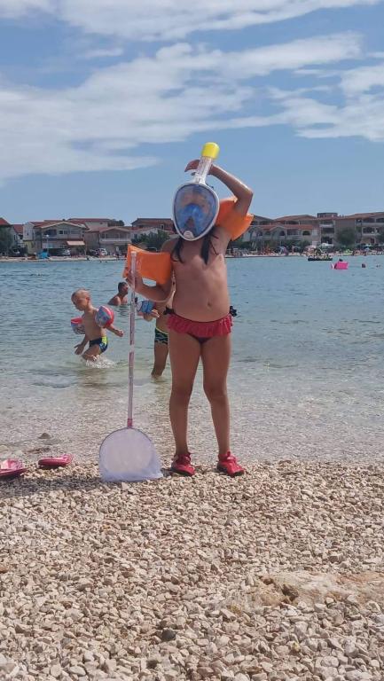 Opłata jest wliczone w cenę.Apartament Dalija położony jest w spokojnej okolicy, blisko pięknej żwirowej plaży i niezwykle czystego morza. Idąc promenadą, wzdłuż wybrzeża rozciągają się piaszczyste, płytkie zatoczki z plażami, z widokiem na wyspę Pag i Velebit. Apartament składa się z dwóch pokoi: 1. sypialni z łóżkiem o wymiarach 160x200 cm, 1. sypialni z 2 łóżkami o wymiarach 90x200 cm, każde. Salon z narożną sofą, stołem i krzesłami, telewizorem i klimatyzacją. Kuchnia. Łazienka. Wnętrze klimatyzowanego apartamentu składa się z czterech przestronnych, niedawno odnowionych, wygodnych i schludnych pokoi, idealnych na miły urlop. Moskitiery znajdują się we wszystkich oknach i drzwiach. Obiekt położony jest w cichej, bezruchu ulicy. Na powitanie czeka drink i kawa. Zapraszamy! Na plaży, za opłatą, można wypożyczyć rower wodny, a także zorganizować wycieczki na Kornaty i inne znane wyspy. Restauracje, sklepy i piekarnia znajdują się w pobliżu, około 100 metrów. Vir znajduje się 25 km od Zadaru, połączonego nowoczesną autostradą i mostem. W pobliżu znajdują się Privlaka, Nin, Zaton...Zadar