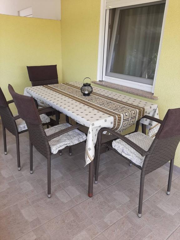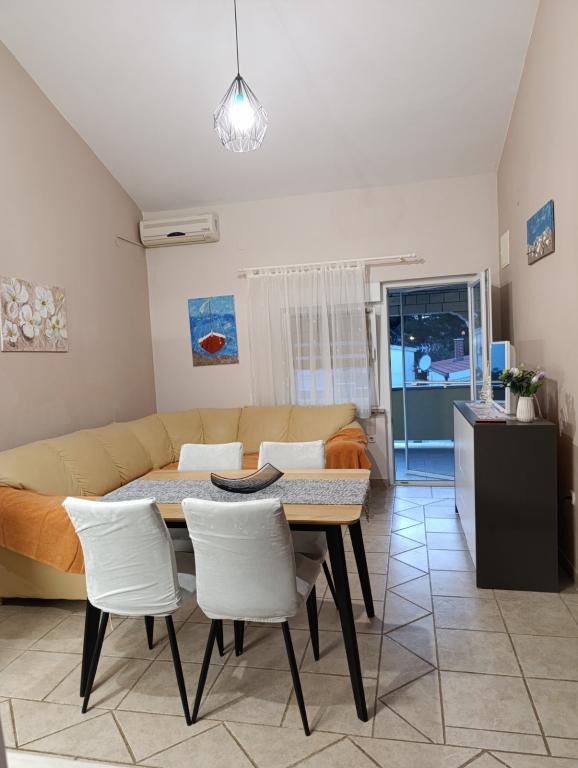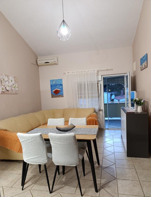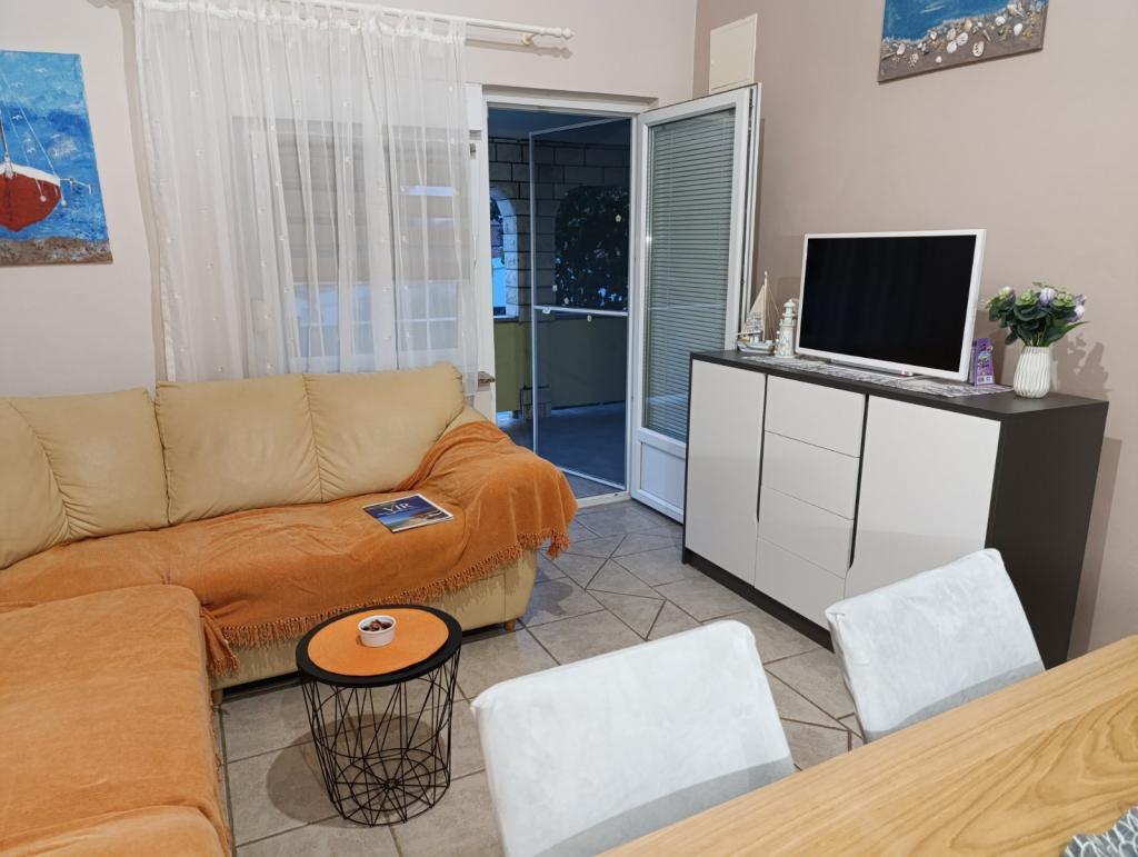 Wynajmuję nowo wyremontowany, dwupokojowy, klimatyzowany apartament, w pełni wyposażony dla rodziny do 4 osób. Apartament posiada dwie sypialnie, salon z łóżkiem, telewizor/satelitę, smart TV/Wi-Fi. Kuchnia jest w pełni wyposażona w naczynia. Łazienka z prysznicem. Prysznic zewnętrzny. Do apartamentu przynależy duży taras/balkon, gdzie można cieszyć się przyjemnym cieniem do późnego popołudnia. Bezpłatne miejsce parkingowe dla samochodu (na życzenie, w razie potrzeby pralnia). Grill – do dyspozycji gości. Apartament znajduje się 150 m od plaży/morza, 4 minuty spacerem ulicą. Plaża jest kamienista, w pobliżu jest piaszczysta dla dzieci, gdzie znajdują się kawiarnie, restauracje, lodziarnie… Sklep znajduje się 100 m dalej, restauracja 80 m dalej, większe centra handlowe 1000 m dalej. Centrum Viru oddalone jest o 1500 m. Apartament znajduje się w spokojnej okolicy, przy mało ruchliwej ulicy.