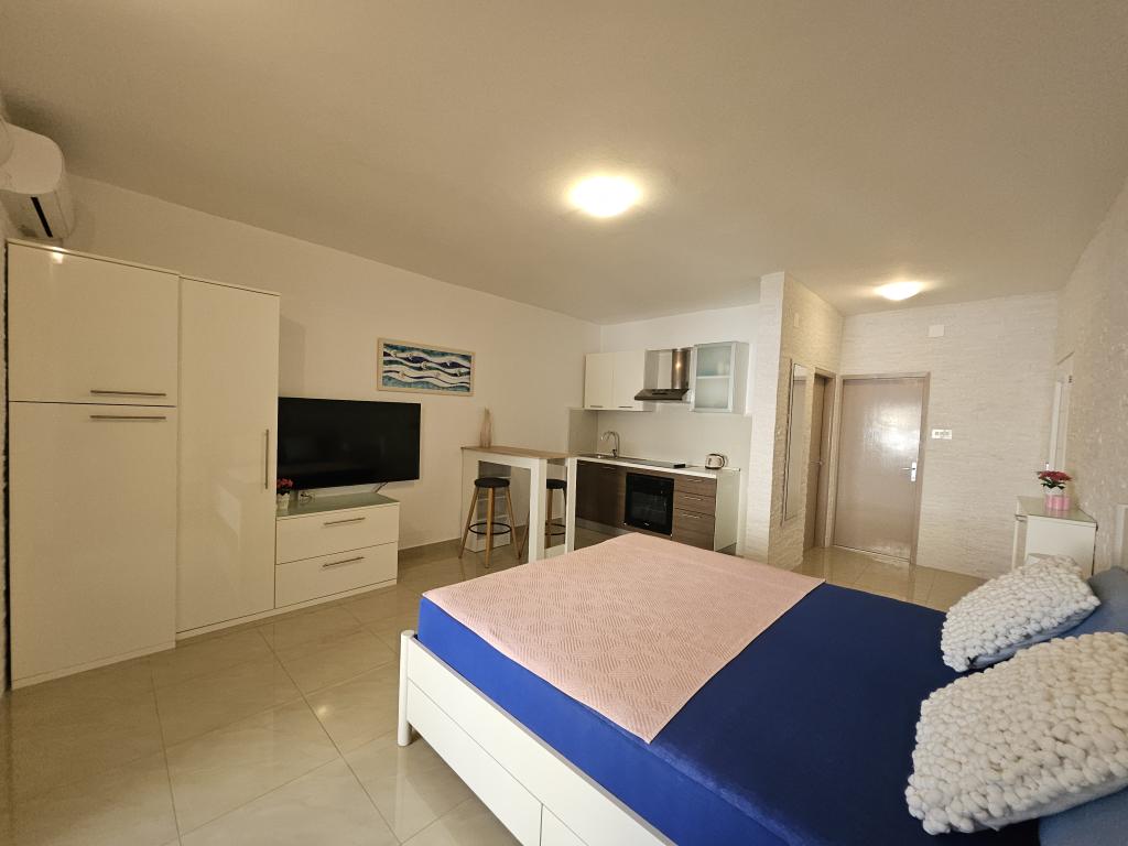Razem ze znajomymi spędziliśmy dwa tygodnie we wszystkich trzech apartamentach, które były czyste i gustownie urządzone. Podwórko bardzo ładnie zagospodarowane i duże. Do plaży bardzo blisko, ale czystość wody pozostawia wiele do życzenia. Kilka plaż dalej woda jest krystaliczna, więc polecam wybrać się ciut dalej i cieszyć się przejrzystością wody. Duży wybór restauracji i sklepów. Sami właściciele okazali się być bardzo sympatycznymi ludźmi, którzy zawsze służyli pomocą. Polecam apartamenty DeLuxe w 100% . Pozdrowienia dla Ivany i Daniela