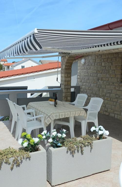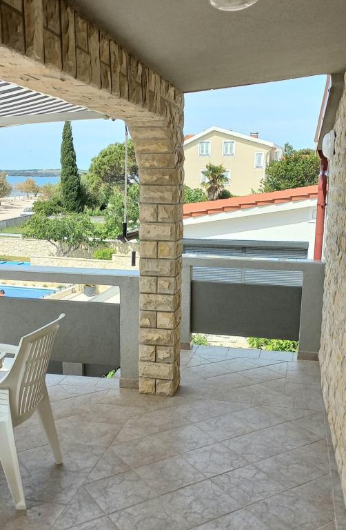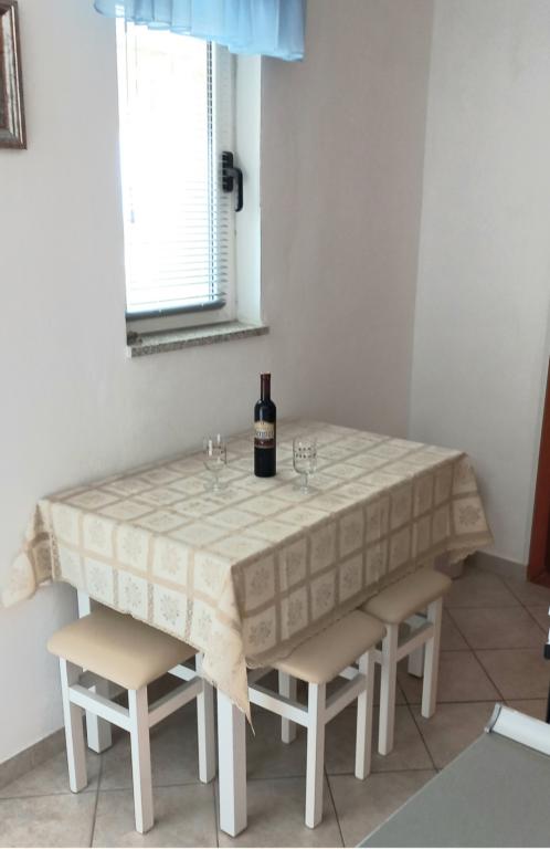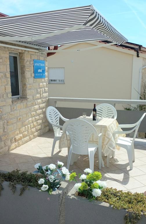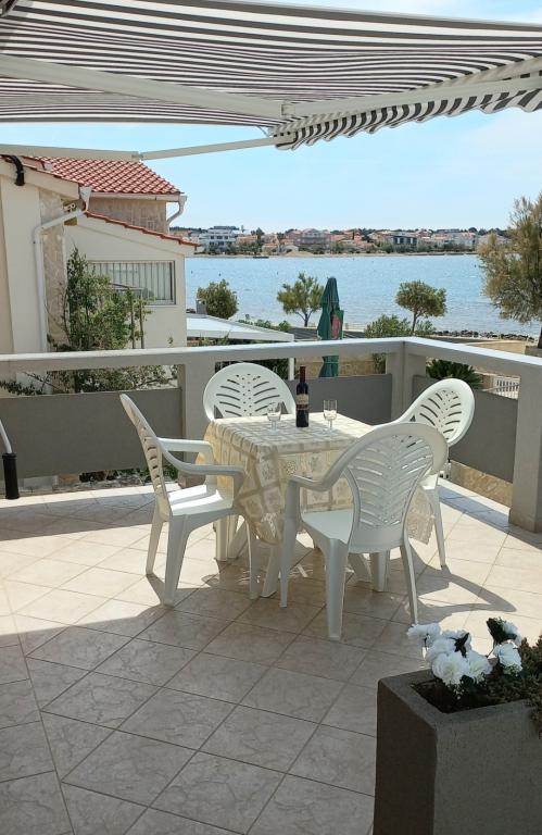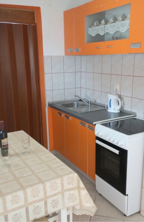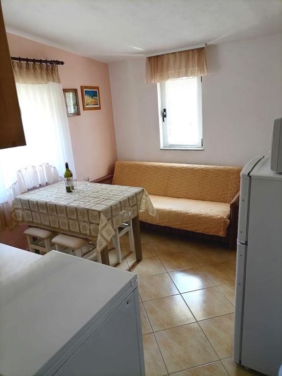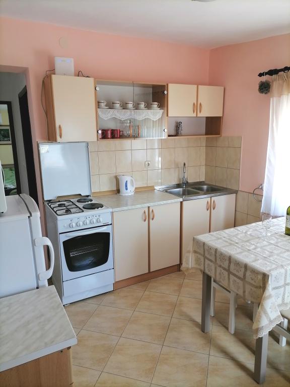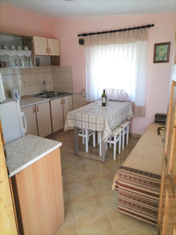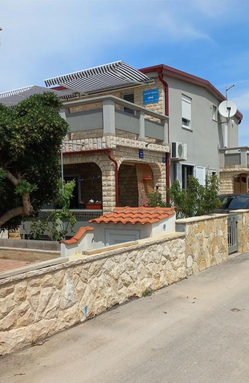 Apartamenty znajdują się na pierwszym piętrze domu. Z dużym tarasem i widokiem na morze. Położone są w spokojnej okolicy. Drugi rząd od morza, odległość od plaży i morza wynosi 20 m. Parking znajduje się na podwórku domu i jest przeznaczony wyłącznie dla mniejszych pojazdów. Większe pojazdy parkowane są na brzegu. Do dyspozycji gości jest grill, klimatyzacja, telewizor, telewizja satelitarna i Wi-Fi.
