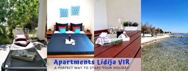 Apartamenty Lidija znajdują się w spokojnej okolicy w południowej części wyspy Vira. Przed apartamentem znajduje się duża przestronna łąka, która zapewnia prywatność podczas wakacji, a także szlak prowadzący wprost na plażę. Niższy apartament na parterze ma jedną sypialnię z wygodnym podwójnym łóżkiem i dwoma rozkładanymi łóżkami. Górna aplikacja na 1 piętrze ma dwie sypialnie i jest odnowiona od lata 2018. Oba apartamenty zawierają wszystko, co potrzebne do spokojnego i przyjemnego wypoczynku: duży taras z widokiem na morze, klimatyzacja, Wi-Fi, LCD / SMART TV, grill , pościel, ręczniki, miejsce parkingowe, prysznic na zewnątrz i pralka i piekarnik w dolnej aplikacji. Plaża dla dzieci znajduje się zaledwie 70 metrów lub dwie minuty spacerem. W odległości zaledwie kilku minut spacerem znajduje się sklep, piekarnia i kawiarnia na plaży. Centrum Vira Centre znajduje się 20 minut spacerem od hotelu, więc nie potrzebujesz samochodu podczas wakacji. Mieszkanie jest przyjazne dla zwierząt z uwaga, że psy muszą być schludne i uspołecznione