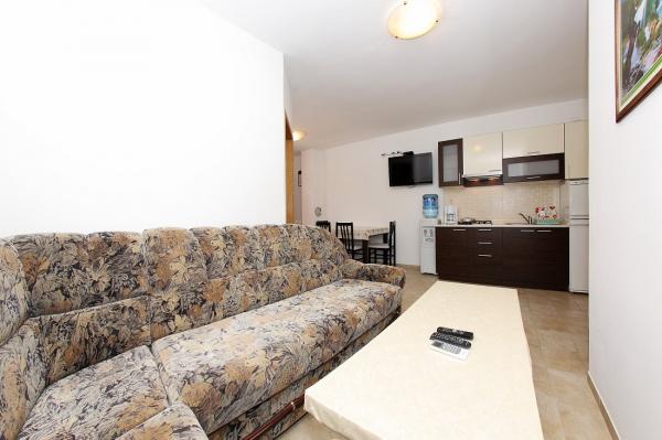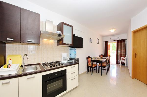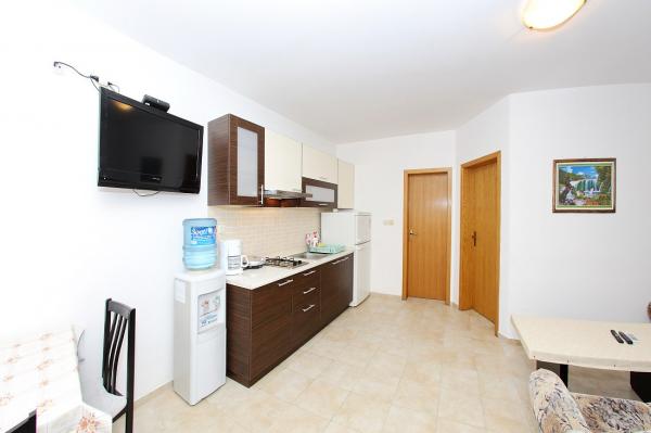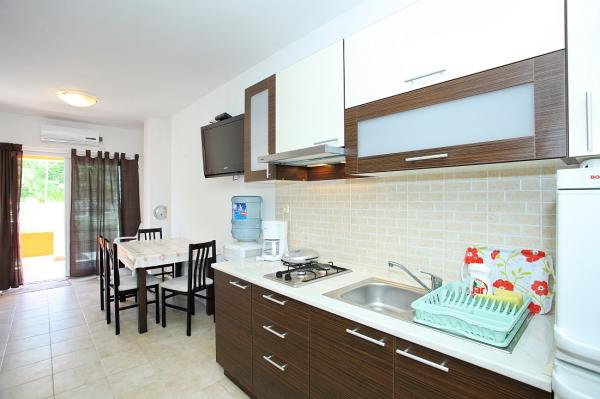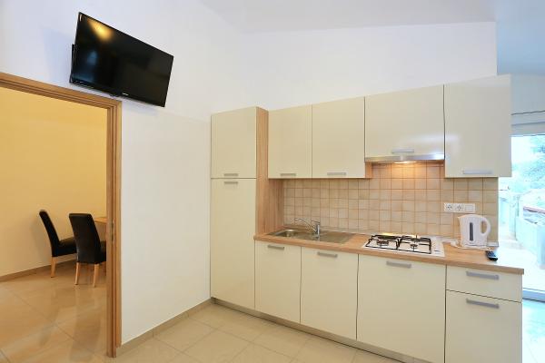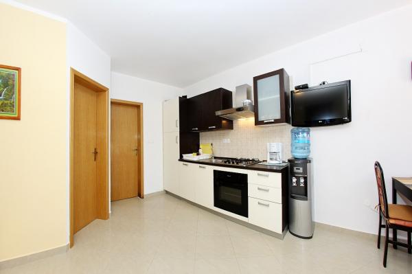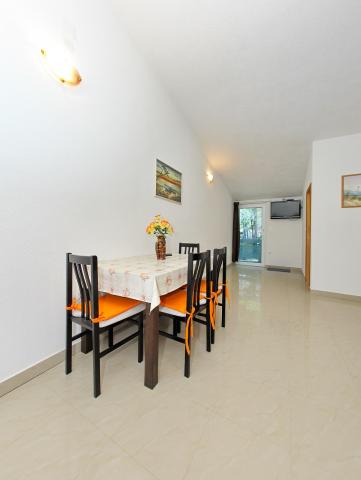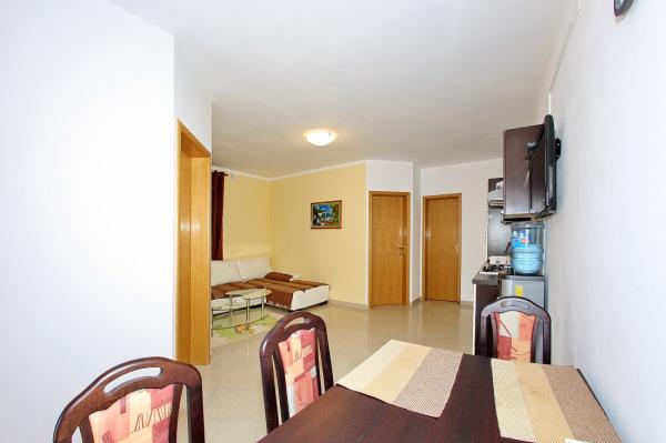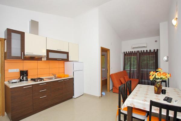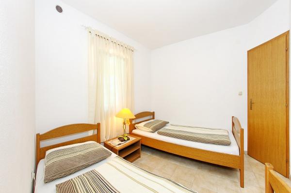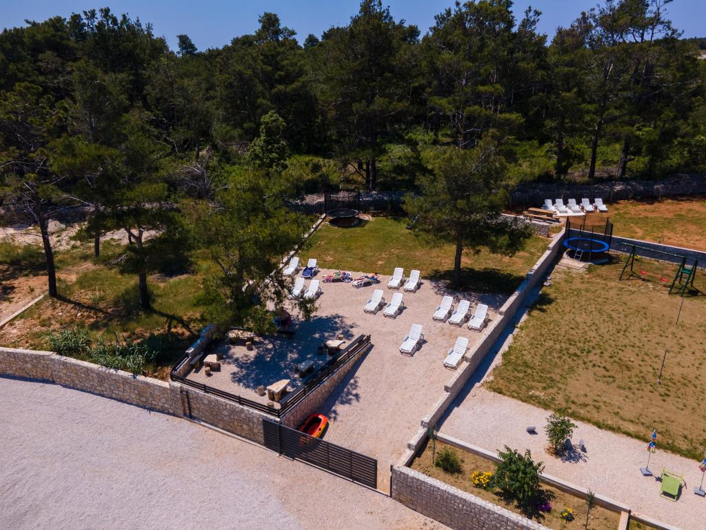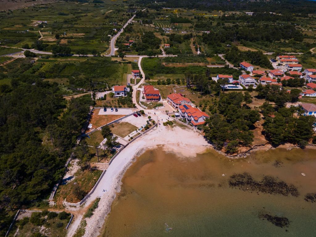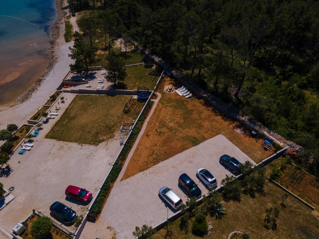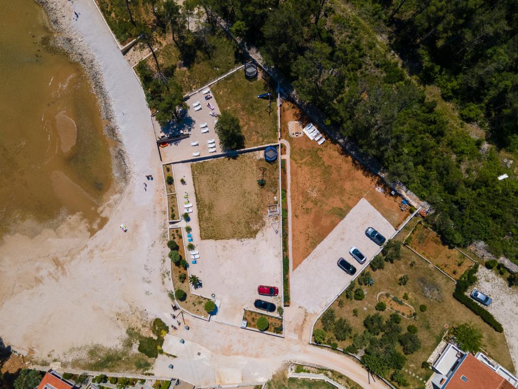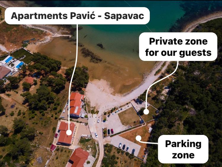 Apartamenty położone są w cichej zatoce Sapavac, tuż przy samej plaży, w otoczeniu lasu sosnowego. Idealny na rodzinne wakacje, bez hałasu. Apartamenty są nowe, nowocześnie urządzone, wyposażone we wszystkie niezbędne sprzęty i klimatyzowane. Każdy apartament posiada własny taras z widokiem na morze. Na podwórku znajduje się grill z grillem oraz miejsce do spotkań towarzyskich, które jest dostępne dla gości bez dodatkowych opłat. Plaża jest kamienista, a morze ma bardzo delikatny piasek, idealny dla małych dzieci.