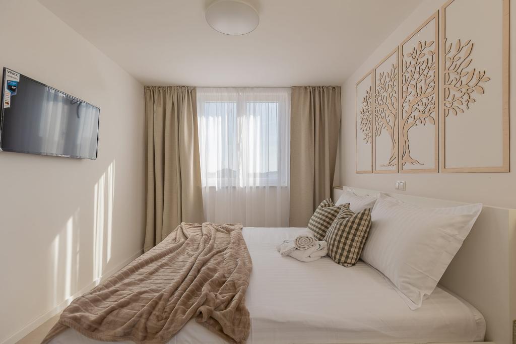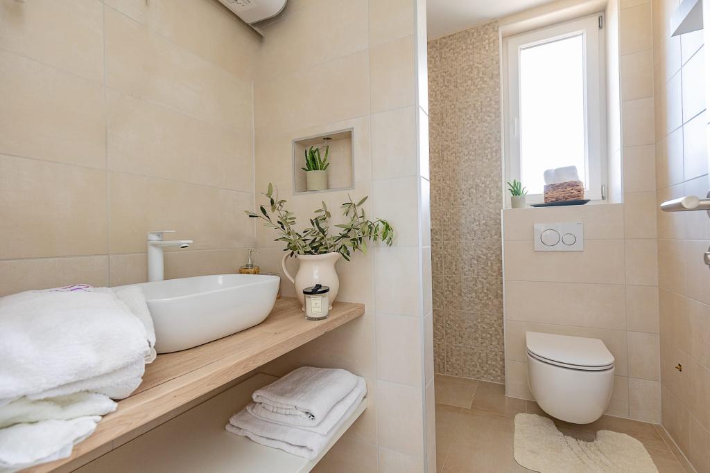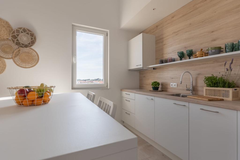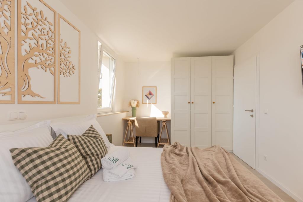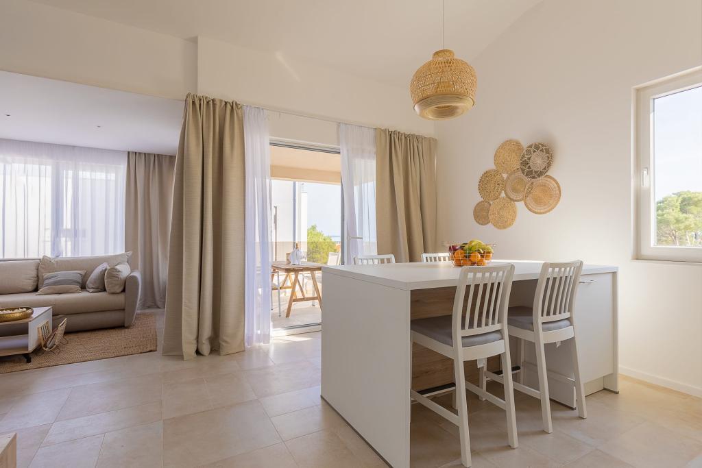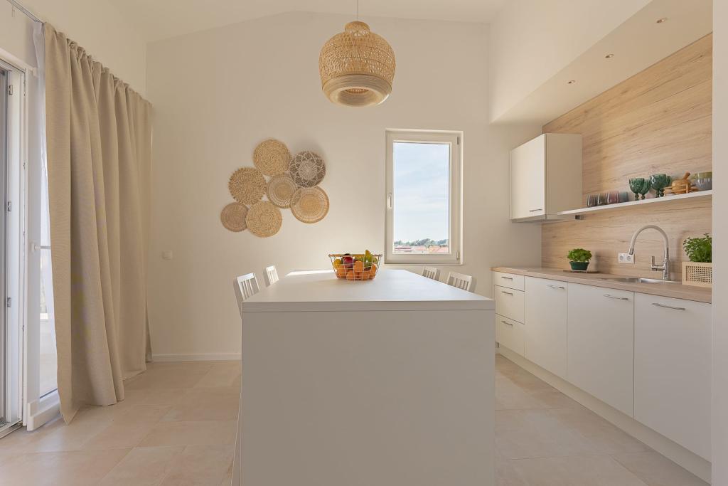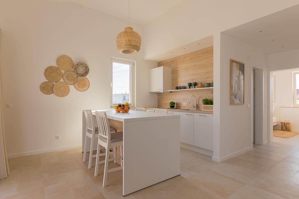 Nasze luksusowe apartamenty znajdują się w centralnej lokalizacji, blisko restauracji, sklepów i głównych atrakcji, co czyni je idealnym wyborem na beztroskie wakacje bez konieczności korzystania z samochodu. Plaża znajduje się w odległości krótkiego spaceru. Nieruchomość mieści się w nowym budynku z pięcioma oddzielnymi apartamentami, urządzonymi ze szczególnym naciskiem na styl, elegancję i jakość. Przestronne i luksusowo urządzone apartamenty zapewniają wysoki poziom komfortu, a każdy z nich posiada balkon lub taras, idealny do relaksu w ciągu dnia i wieczorem. Wnętrza zostały starannie zaprojektowane i wyposażone w naturalne materiały, które tworzą przyjemną, ciepłą i wyrafinowaną atmosferę. Goście mają do dyspozycji prywatny parking bezpośrednio przy wejściu do budynku, co dodatkowo zwiększa wygodę i komfort pobytu. Apartamenty te są idealne dla osób poszukujących połączenia doskonałej lokalizacji, nowoczesnego luksusu i poczucia domowego ciepła.