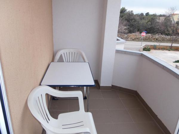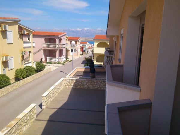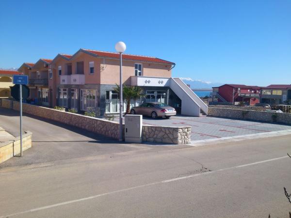 Nowoczesne apartamenty i studia. Piasek i żwir plaży (krystalicznie czysty) jest 2 minuty spacerem od hotelu. Centrum miasta oddalone jest o 10 minut. Duże parkingi. Znajdujemy się w północnej części wyspy. Wszystkie pokoje oraz apartamenty mają widok na morze, Pag i Velebit.