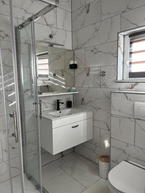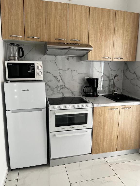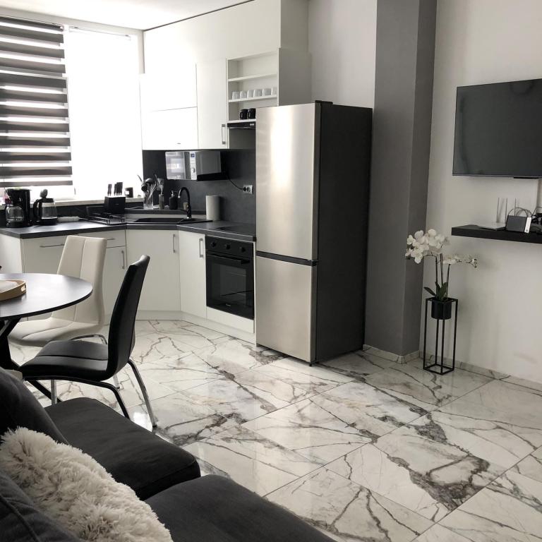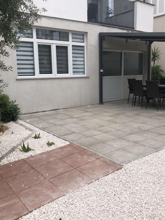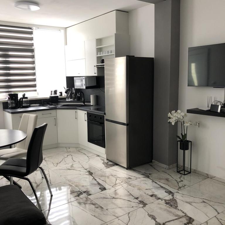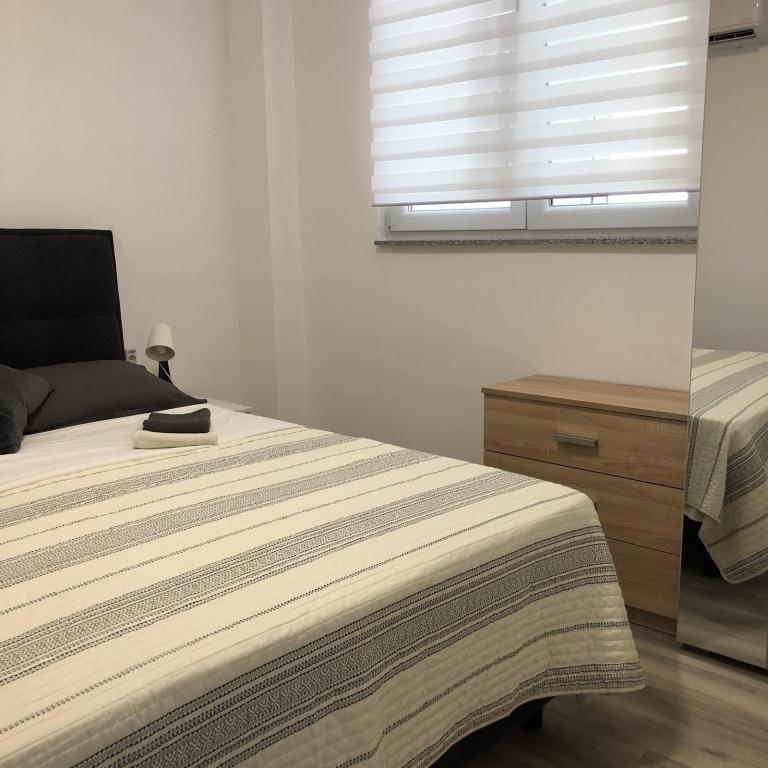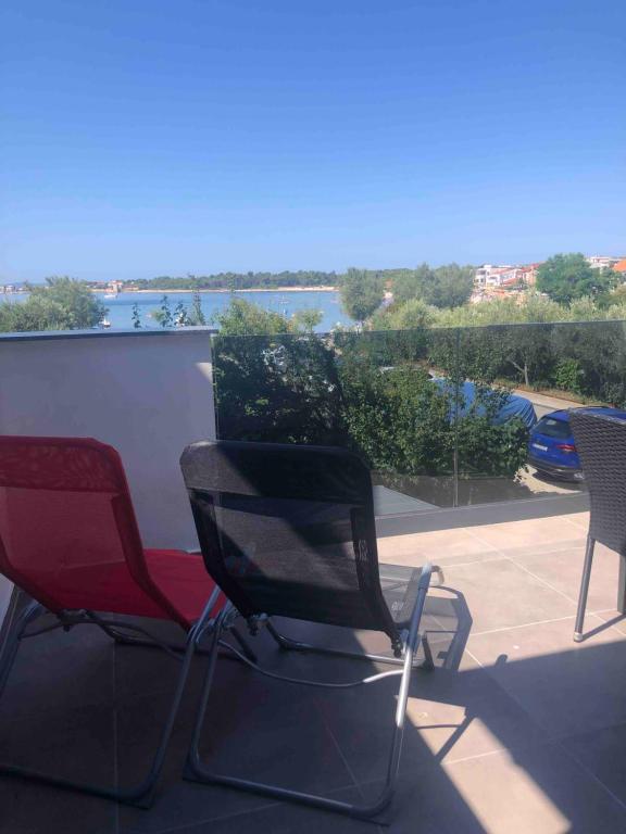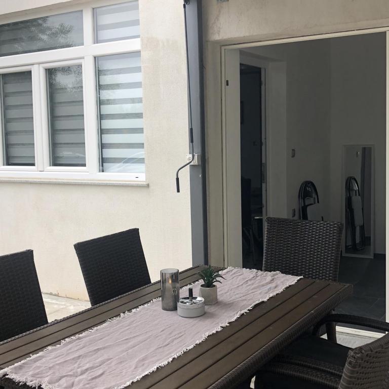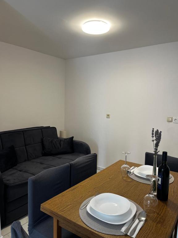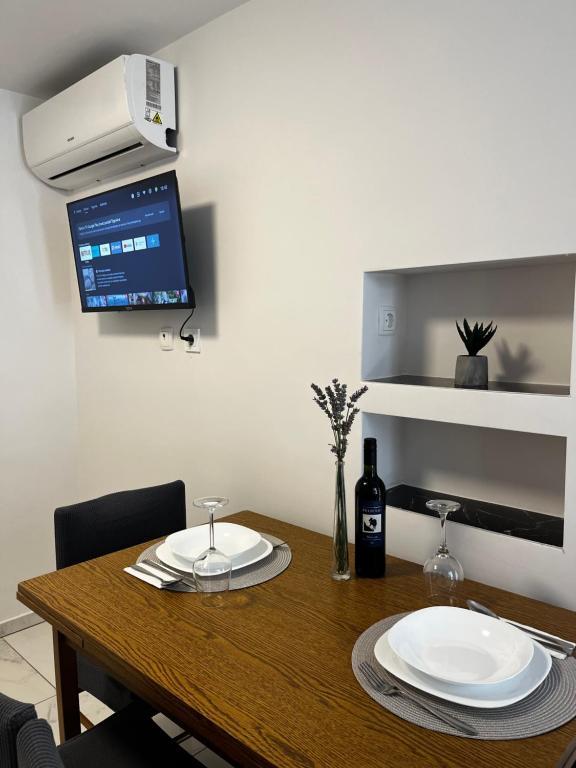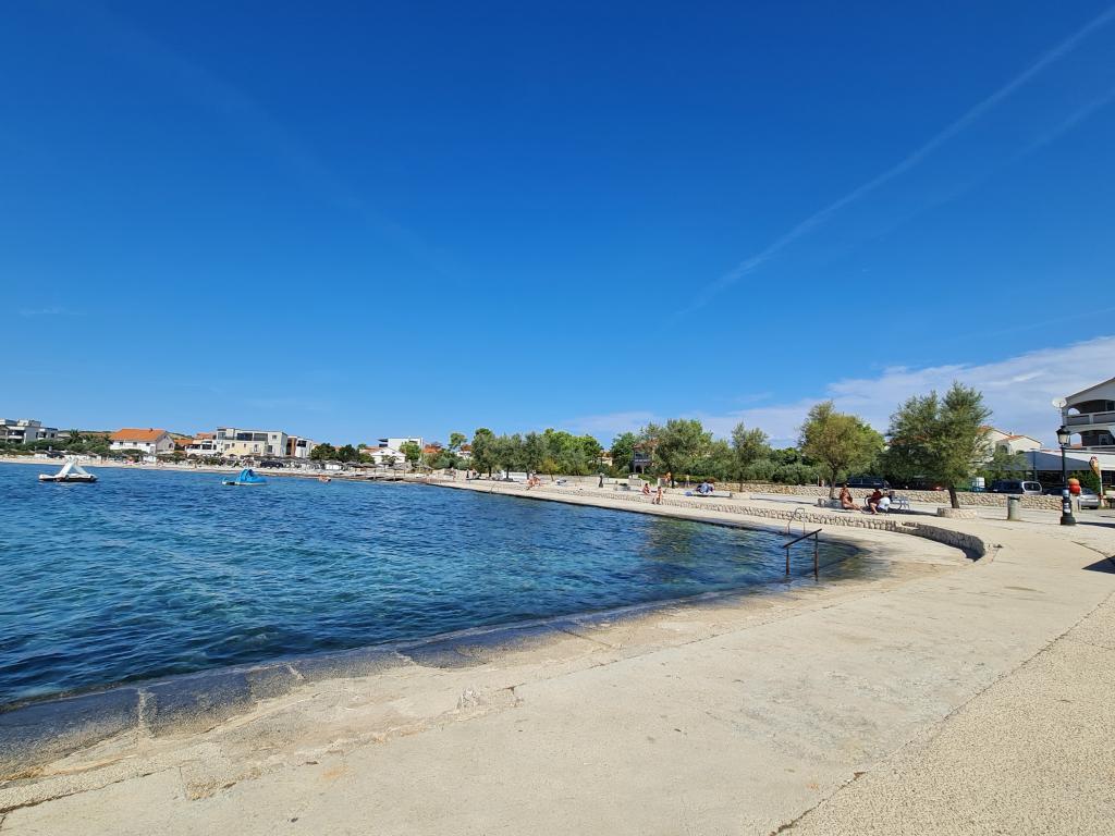Apartamenty Šmit położone są w pierwszym rzędzie od morza, zaledwie kilka kroków od miejskiej plaży Jadro, co czyni je idealnym wyborem dla gości, którzy chcą być jak najbliżej morza i plaży. Goście mają do dyspozycji bezpłatne miejsce parkingowe na ogrodzonym podwórku obiektu, co zapewnia dodatkowe bezpieczeństwo i spokój podczas pobytu. Każdy apartament posiada taras z widokiem na morze, komfortowy kącik wypoczynkowy i telewizor. Apartamenty są w pełni wyposażone, a kuchnie wyposażone są w lodówkę, kuchenkę mikrofalową i wszystkie niezbędne naczynia do przygotowywania posiłków. Każdy apartament posiada prywatną łazienkę z prysznicem, a wszystkie pomieszczenia są klimatyzowane, aby zapewnić komfortowy pobyt nawet w ciepłe letnie dni. W bezpośrednim sąsiedztwie obiektu, zaledwie 5 minut spacerem, znajdują się wszystkie najważniejsze udogodnienia wyspy Vir – restauracje, kawiarnie, sklepy, piekarnia i promenada wzdłuż morza – co sprawia, że Apartamenty Jadro to doskonały wybór dla par, rodzin i gości, którzy chcą spędzić wakacje bez konieczności posiadania samochodu.