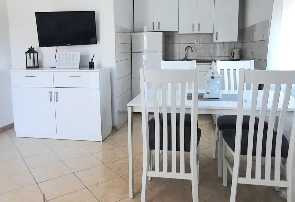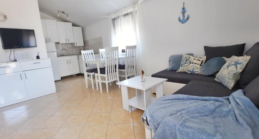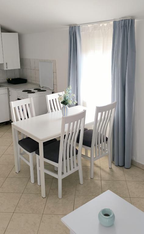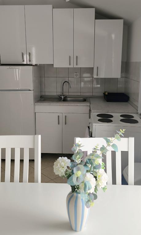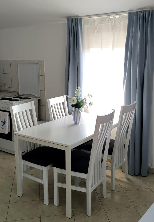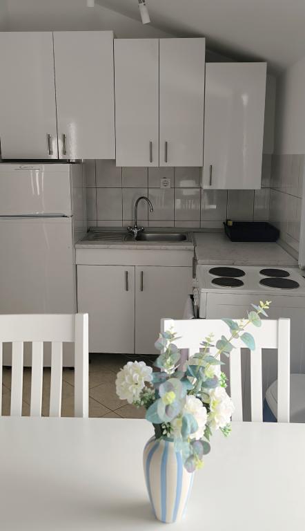 Witamy w naszym domu na pięknej wyspie Vir! Oferujemy dwa komfortowe apartamenty i jedno studio, idealne na spokojny i relaksujący wypoczynek. Nasz obiekt położony jest zaledwie 150 metrów od krystalicznie czystego morza, przy spokojnej, rodzinnej uliczce o niewielkim natężeniu ruchu, idealnej dla rodzin z dziećmi i wszystkich, którzy chcą uciec od miejskiego zgiełku. Dom jest otoczony kolorowymi, zadbanymi kwiatami, które zapewniają poczucie ciepła i domowej atmosfery. Na miejscu dostępny jest bezpłatny prywatny parking, dzięki czemu nie musisz martwić się o swój pojazd podczas pobytu. W pobliżu znajduje się supermarket i piekarnia, dzięki czemu podczas wakacji możesz łatwo i szybko zrobić zakupy. Centrum Viru oddalone jest o 3 km, a każdego wieczoru organizowane są tam zabawy dla dzieci i dorosłych – idealne miejsce dla tych, którzy chcą miło zakończyć dzień. Wyspa Vir znana jest z licznych pięknych plaż, ukrytych zatoczek i krystalicznie czystego morza – idealnego do zwiedzania i cieszenia się słonecznymi dniami. W pobliżu znajduje się wiele atrakcji turystycznych, które idealnie nadają się na jednodniowe wycieczki: Piękne zabytkowe miasto Nin oddalone jest o zaledwie 10 kilometrów Muzeum Narodowe w Zadarze oddalone jest o 25 km Słynna instalacja „Powitanie Słońca” w Zadarze oddalona jest o 26 km Lotnisko w Zadarze oddalone jest o 34 km Jeśli szukasz miejsca na prawdziwe wakacje, z dala od zgiełku, a jednocześnie blisko morza i ciekawych atrakcji - nasze apartamenty są dla Ciebie właściwym wyborem!