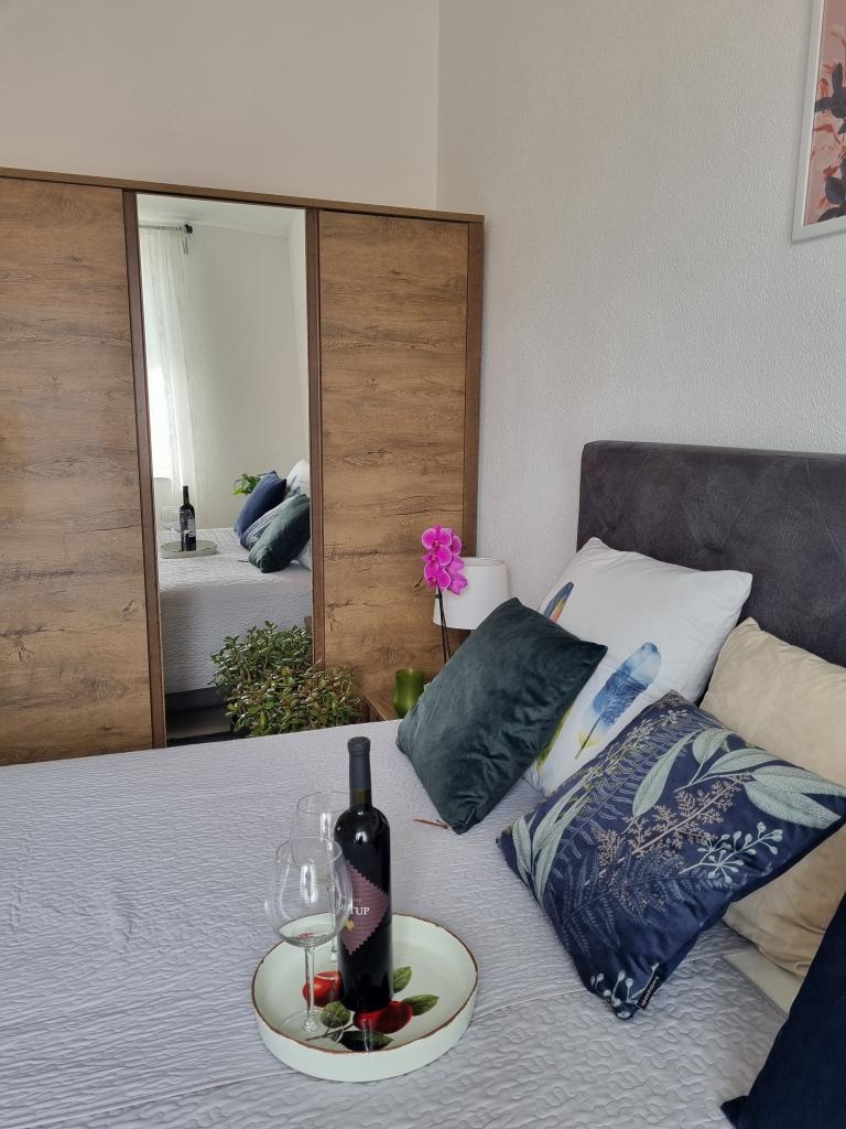 Zapraszamy do luksusowych apartamentów w Villa Emilia na Vir i pięknego zielonego ogrodu. Piękne przestronne tarasy po stronie południowej z widokiem na ogród i balkony po stronie północnej z widokiem na Velebit. W każdym apartamencie znajdują się dwie przestronne sypialnie, salon, w pełni wyposażona kuchnia ze zmywarką, piekarnikiem, kuchenką, mikrofalówką i lodówką. Łazienka wyposażona w pralkę. Żelazko i deska do prasowania. Villa Emilia na wyspie Vir znajduje się 300 metrów od morza i plaży LUKA na południu. Parking dla każdego apartamentu.