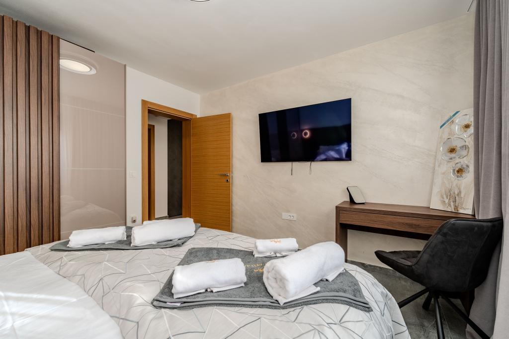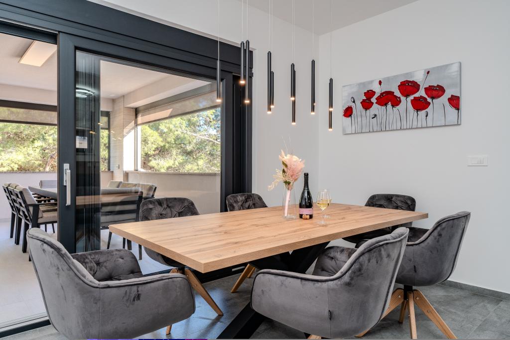 W pełni i nowocześnie wyposażony apartament w spokojnej części Vir, 80 m od morza i 800 m od centrum. Apartament znajduje się w słabo zaludnionej i spokojnej części wyspy, w otoczeniu lasu sosnowego