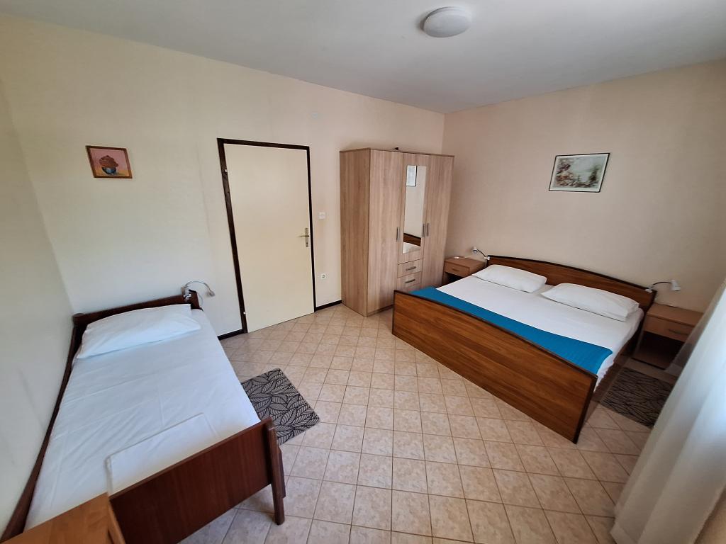 Dom położony jest w spokojnej dzielnicy Vodice i otoczony zielenią. Plaża oddalona jest o około 90 m, a do centrum Vodic zajmuje około 10 minut przyjemnego spaceru. Darmowe wifi. CENA ZAWIERA PODATEK MIESZKANIOWY I KLIMATYZACJĘ. ------------- Apartament 1 - 4 osobowy - 85m2, 2 sypialnie, pokój dzienny, kuchnia, łazienka oraz balkon z pięknym widokiem na archipelag. KLIMATYZACJA, CYFROWA TV SAT ------------ Apartament 2 - dla 3 osób - 40m2, jedna sypialnia, kuchnia, łazienka, taras. KLIMATYZACJA, CYFROWA TV SAT------------ Apartament 3 - dla 3 osób - 45m2 (drugie dziecko gratis), jedna sypialnia, kuchnia, łazienka, taras. KLIMATYZACJA, CYFROWA TV SAT-GRILL