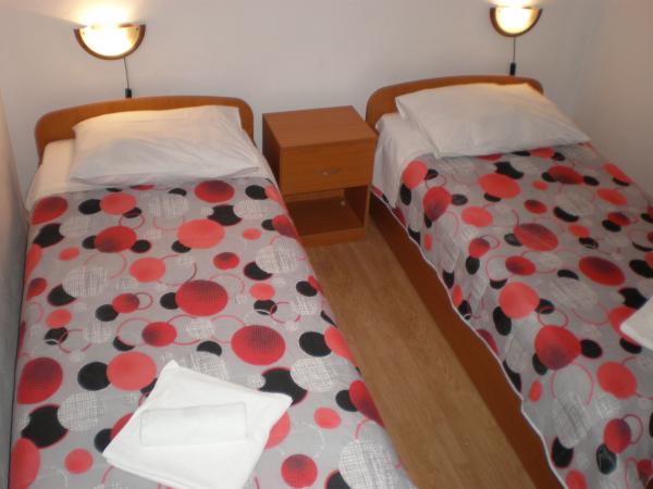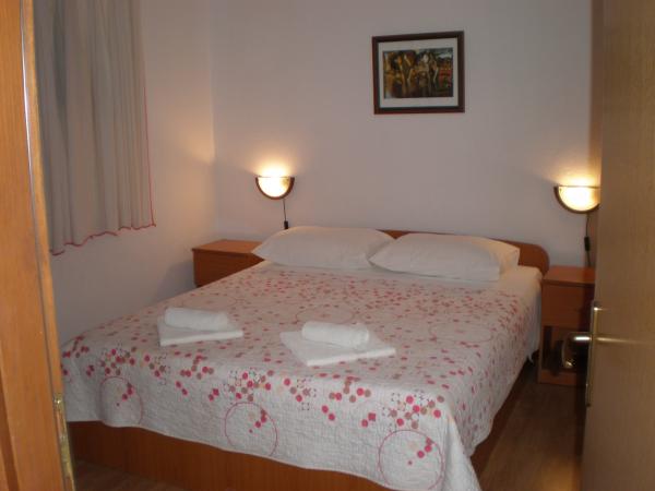 Bogdan apartamenty położone są w spokojnej części miasta, na obszarze 1100 m2. Obiekty znajdują się mniej niż 10 minut do centrum miasta i 15 minut spacerem do morza. Duży ogród otoczony trawników, kwiatów i zieleni zapewnia komfortową i spokojnego wypoczynku. Wszystkie trzy apartamenty znajdują się na parterze. Apartament A1 pojemność 2 1 osoba, apartament A2 4 1 osoba i A-3 pojemność 6 2 osoby. Wyposażenie: meble ogrodowe altana ogrodowa, huśtawki, parking dla samochodów więcej, apartament A1 ma własny garaż, który znajduje się obok mieszkania, grill. Istnieje również tenis stołowy, plac zabaw dla dzieci. Wszystkie apartamenty są klimatyzowane i wyposażone; Telewizor, wi-fi, pralki, lodówka z zamrażarką, małych urządzeń; ekspres do kawy, czajnik, toster. i wszystko inne, co jest niezbędne do atmosfery domesticity. Sympatyczni gospodarze są dostępne dla gości (lata doświadczenia) dla wszelkich dalszych informacji niezbędnych lub pomocy jakiegokolwiek rodzaju.