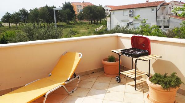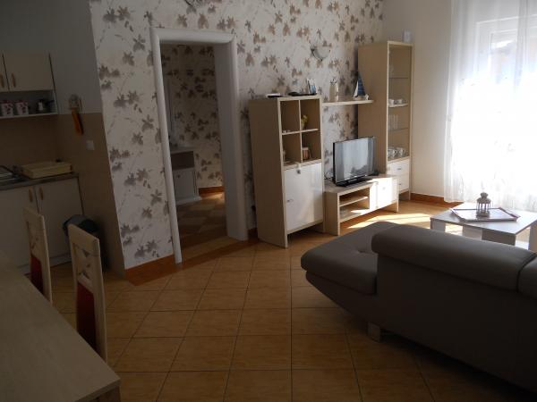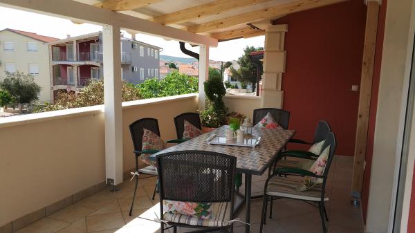 Apartamenty położone są w spokojnej okolicy Vodice, w otoczeniu różnych roślin, z ogrodzonym podwórkiem i parkingiem. Tarasy na pierwszym piętrze są częściowo zadaszone, a częściowo otwarte do opalania, na parterze są całkowicie zadaszone. Apartamenty na pierwszym piętrze mają własny grill, a mieszkanie na parterze ma grilla na podwórku. Do plaży 10 min piechotą, 15 min do centrum. Wszystkie apartamenty są nowocześnie wyposażone i składają się z przestronnego salonu, jadalni i kuchni, dwóch sypialni, łazienki i korytarza oraz dużego tarasu. Każdy apartament wyposażony jest w pralkę, żelazko, deskę do prasowania i suszarkę do włosów oraz bezpłatny bezprzewodowy dostęp do Internetu. Kuchnia jest w pełni wyposażona we wszystko.