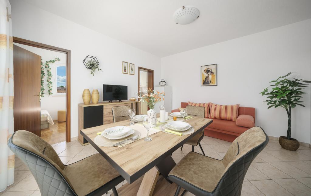 Moja żona i ja mają zwyczaj co roku zmienia położenie dopusta.Ko Byliśmy tu po raz pierwszy byliśmy naprawdę podoba. A kiedy spojrzał na następny rok gdzieś na wakacje, zawsze zrobić porównanie z apartmajem.Postal Jestem wymagający i niemal każdy mi co mieszkanie motilo.Ta podobało nam się to, bo wszystko spedenano w nulo.Lepo wyposażone, klimatyzowane, z balkonem i wszystko jest jak novo.Red i czystość na wysokim poziomie. Przed mieszkanie jest duży parking, który pozwala na przyjazd i odjazd bez ruchu vozil.Na dostępna jest również Fi. I tak się stało w tym roku, że byliśmy tu po raz piąty. Właściciele są przyjaźni i wiele razy jesteśmy razem pili brandy i kavo.Plaža położony jest w sosnowym lesie, jak i na słońcu tylko nas dwoje bardziej zielony senco.Dostop woda jest bardzo nadaje się dla dzieci jak głębokość powoli povečuje.Možno cycling npr.ko bo byliśmy w Makarskiej, nie było to możliwe. Krótko mówiąc, te apartamenty polecam go każdemu, i jesteśmy przekonani, że nikt nie będzie rozczarowany.
